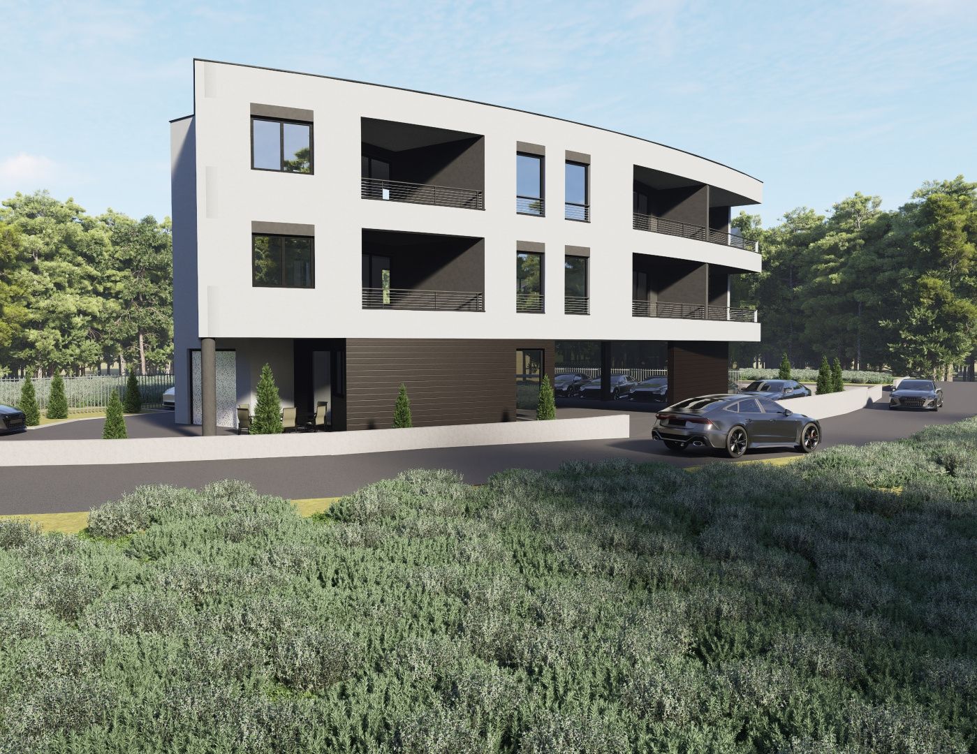 ISTRIEN, ŠTINJAN – Baugrundstück mit Baugenehmigung und Projekt für ein modernes Wohngebäude mit 7 Wohneinheiten, 500 m vom Meer entfernt Im ruhigen Küstenort Štinjan, nur wenige Fahrminuten vom Zentrum Pulas entfernt, befindet sich dieses attraktive Baugrundstück mit einer Gesamtfläche von 663 m². Dies ist eine außergewöhnliche Gelegenheit für Investoren und alle, die die Kombination aus naturnaher Umgebung, urbanem Komfort und unmittelbarer Meeresnähe zu schätzen wissen. GRUNDSTÜCKSBESCHREIBUNG: Für das Grundstück liegt eine Baugenehmigung für den Bau eines modernen Wohngebäudes mit 7 Wohneinheiten und zugehörigen Parkplätzen im Garten vor. Die Zufahrt zum Grundstück erfolgt über eine befestigte öffentliche Straße. Sämtliche städtische Infrastruktur – Wasser, Strom, Abwasser und Internet – ist in unmittelbarer Nähe verfügbar. PROJEKTBESCHREIBUNG: Das Gebäude umfasst insgesamt 7 Wohneinheiten, 10 Außenstellplätze und einen Garagenstellplatz. Im Erdgeschoss ist eine Wohnung (A1) mit 55 m² Nettowohnfläche geplant. Diese besteht aus einem offenen Wohnbereich mit Wohnzimmer, Esszimmer und Küche sowie Zugang zu einer überdachten Terrasse. Weiterhin gibt es einen Flur mit einem separaten Bereich für einen Kleiderschrank, ein Schlafzimmer und ein Badezimmer. Zusätzlich verfügt diese Wohnung über einen im Projekt vorgesehenen Garagenstellplatz. Es handelt sich um eine Bruttogarage mit einer Fläche von 13,75 m². Gemäß dem Koeffizienten erhöht sich die Nettowohnfläche dieser Wohnung um 6,87 m² auf insgesamt 61,87 m². 1. Obergeschoss – besteht aus drei Wohneinheiten: A2 (62,20 m²), A3 (42,30 m²) und A4 (65,70 m²). Wohnung A2 (62,20 m² Nettowohnfläche) ist eine Wohneinheit mit einem offenen Wohnbereich, bestehend aus Wohnzimmer, Esszimmer und Küche mit Zugang zur Loggia. Außerdem gibt es einen Flur mit einem separaten Bereich für einen Kleiderschrank, zwei geräumige Schlafzimmer und ein Badezimmer. Wohnung A3 (42,30 m²) ist eine Wohneinheit mit einem offenen Wohnbereich, bestehend aus Wohnzimmer, Esszimmer und Küche mit Zugang zu einer Loggia. Zusätzlich gibt es einen kleineren Flur mit Platz für einen Kleiderschrank, ein Schlafzimmer und ein Badezimmer. Der Vorteil dieser Wohnung liegt im großzügigen und hellen Wohnbereich. Wohnung A4 (65,70 m²) ist ebenfalls eine Wohneinheit mit einem großen, offenen Wohnbereich. Hier befinden sich Wohnzimmer, Esszimmer und Küche mit direktem Zugang zu einer Loggia. Außerdem gibt es einen Flur mit Platz für einen Kleiderschrank, zwei komfortable Schlafzimmer und ein Badezimmer. 2. Obergeschoss – bestehend aus drei Wohneinheiten: A5 (62,20 m²), A6 (42,30 m²) und A7 (65,70 m²). Das Konzept der Wohnungen auf dieser Etage entspricht dem der Wohnungen im 1. Obergeschoss des Gebäudes. Wohnung A5 ist eine 2-Zimmer-Wohnung mit Wohnzimmer, Wohnung A6 eine 1-Zimmer-Wohnung mit Wohnzimmer und Wohnung A7 eine 2-Zimmer-Wohnung mit Wohnzimmer. ZUSÄTZLICHE INFORMATIONEN: * Größere Wohnungen verfügen über zwei Parkplätze, kleinere über einen. * Die Fläche der Parkplätze ist nicht in der Wohnfläche der Wohnungen enthalten und wird beim Einzelverkauf hinzugerechnet. * Das Grundstück wird zusammen mit dem Projekt und der erteilten, gültigen Baugenehmigung verkauft. * Die Infrastruktur für Strom, Wasser, Abwasser und Internet befindet sich direkt neben dem Grundstück. * Die Anschlussgenehmigungen liegen vor. * Die Nebenkosten sind derzeit nicht bezahlt. * Das Grundstück befindet sich in Privatbesitz. * Das Grundstück ist eben und nahezu rechteckig. * Es liegt in ruhiger, verkehrsberuhigter Lage in der Nähe aller wichtigen Einrichtungen. LAGEBESCHREIBUNG: Štinjan zählt zu den begehrtesten Wohngebieten in der Nähe von Pula – ruhig, familienfreundlich und grün gelegen. Nur 500 Meter trennen dieses Grundstück von wunderschönen, gepflegten Stränden und Promenaden am kristallklaren Meer. Der Küstenstreifen bietet zahlreiche Annehmlichkeiten: Strandbars, Restaurants, Parks, Sportplätze und weitläufige Flächen zum Spazieren und Radfahren. Im Ort selbst gibt es Geschäfte, Restaurants, eine Schule und einen Kindergarten. Regelmäßige Busverbindungen verbinden Štinjan alle 30 Minuten mit dem Zentrum von Pula. Diese Lage bietet die perfekte Balance zwischen Ruhe, Natur und Funktionalität – das ideale Umfeld für ein modernes Wohnprojekt mit hohem Investitionspotenzial und sicherer Kapitalrendite. Für weitere Informationen, die benötigten Unterlagen oder zur Vereinbarung eines Besichtigungstermins stehen wir Ihnen jederzeit gerne zur Verfügung.