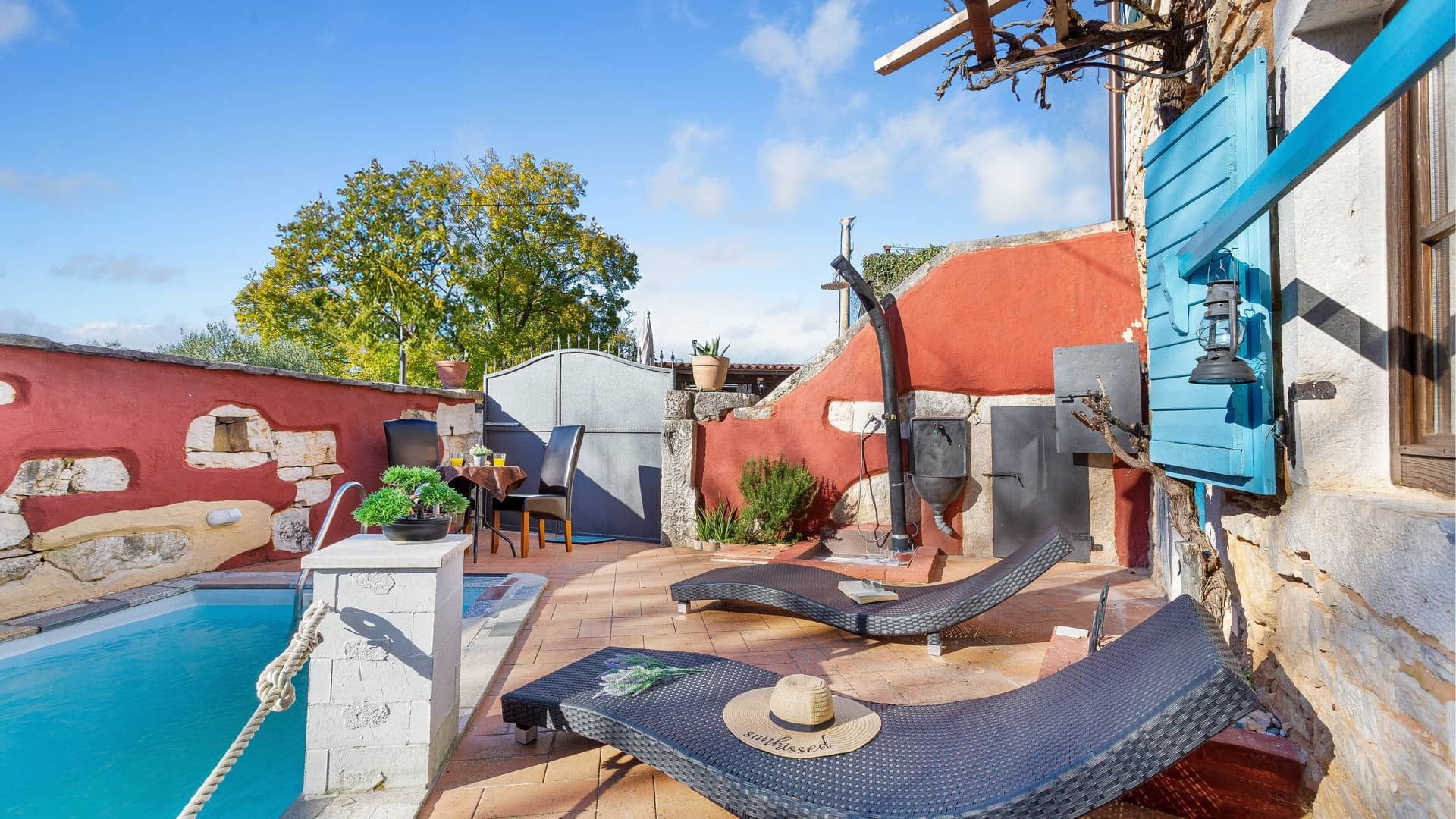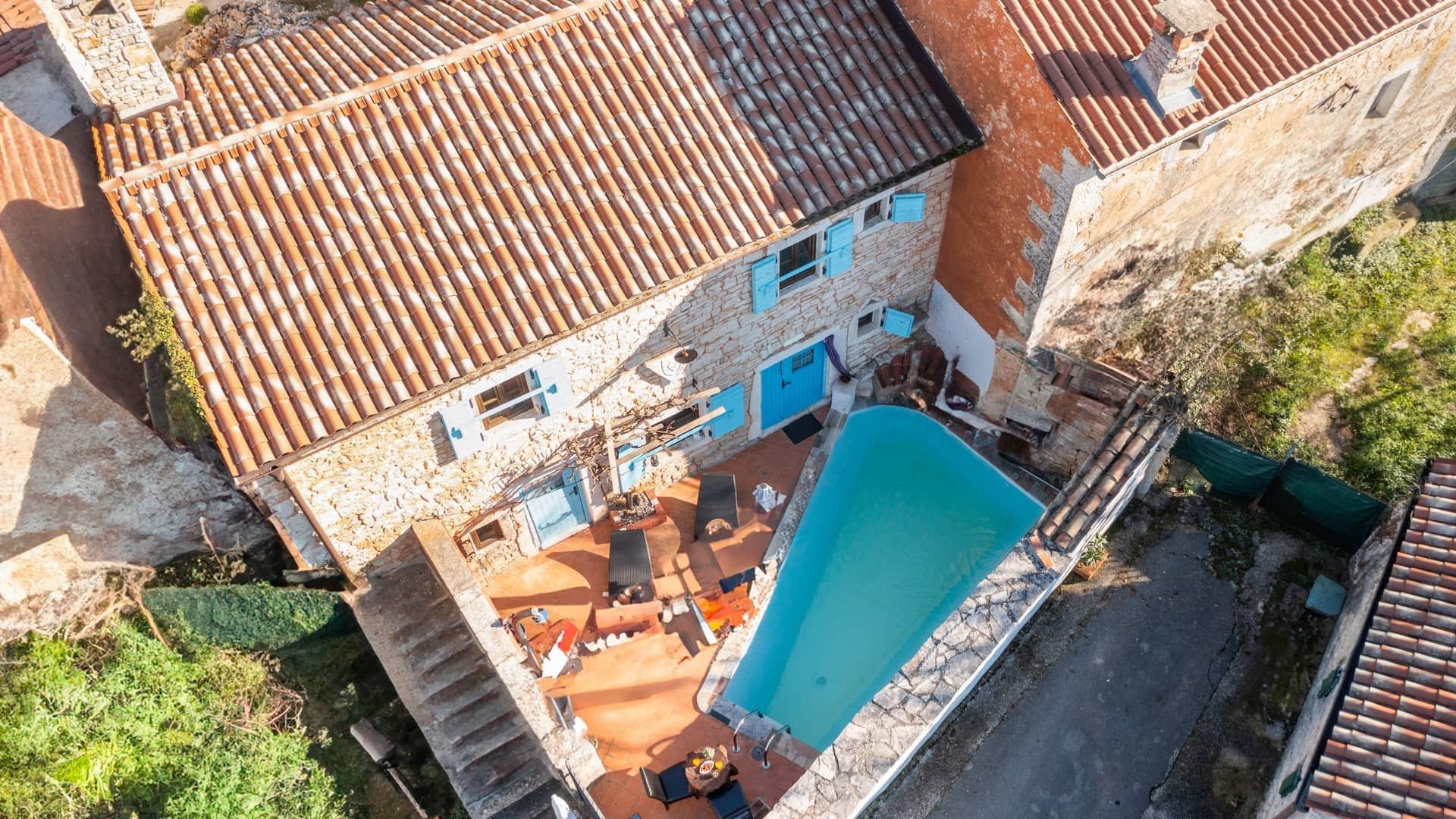 ISTRIEN, SVETVINČENAT – Mediterranes Steinhaus mit Pool Svetvincenat ist ein charmantes istrisches Städtchen mit reicher Geschichte und authentischem mediterranem Flair. Es ist bekannt für seinen imposanten Renaissanceplatz und das Schloss Morosini-Grimani und liegt inmitten unberührter Natur, Olivenhainen und Weinbergen. Der Ort ist ideal für ein ruhiges Leben oder einen erholsamen Urlaub und gleichzeitig nur wenige Kilometer vom Meer und größeren istrischen Städten entfernt. Zum Verkauf steht ein wunderschönes mediterranes Haus in der Nähe von Svetvincenat, in ruhiger Lage, ideal zum Entspannen und Genießen der Natur. Das Haus bietet eine Wohnfläche von 100 m² und verfügt über eine voll ausgestattete Küche mit Essbereich, ein elegantes Wohnzimmer mit Kamin und ein Gäste-WC. Eine Steintreppe führt in den ersten Stock mit zwei komfortablen Schlafzimmern und Badezimmern. AUSSENANLAGE: Gepflegter und einladender Garten Swimmingpool mit Liegewiese Überdachte Terrasse – ideal zum Entspannen im Freien Das Haus ist komplett renoviert, modern eingerichtet und voll ausgestattet. Es wird möbliert verkauft. Die Immobilie bietet Ruhe, Privatsphäre und ein authentisches mediterranes Flair und eignet sich dank ihrer Lage und Ausstattung hervorragend zur touristischen Vermietung oder als Ferienhaus. Für weitere Informationen und eine Besichtigung kontaktieren Sie uns bitte.