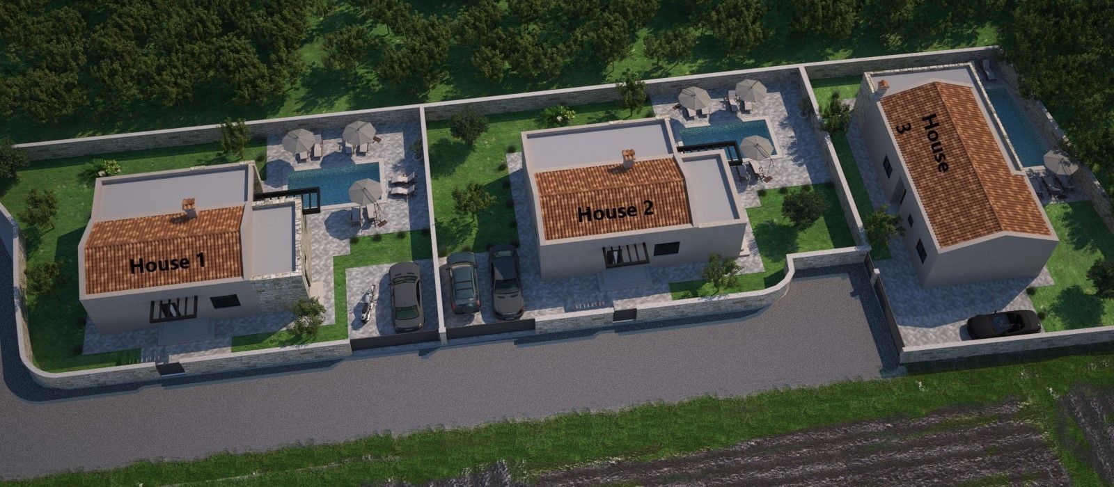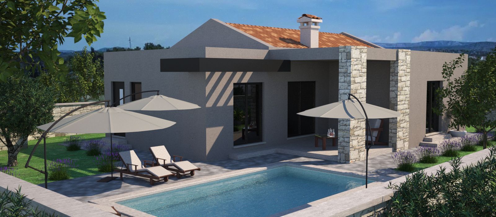 ISTRIEN, SVETVINČENAT – Modernes einstöckiges Haus mit Swimmingpool Die Renaissancestadt Svetvinčenat ist eines der Juwelen Istriens mit einem reichen touristischen Angebot und zahlreichen Veranstaltungen, die in den attraktiven Räumen dieser Stadt stattfinden. Svetvinčenta ist mit einem Renaissanceplatz mit einer Burg geschmückt, die das Symbol des Ortes selbst ist. Diese besondere, traditionsreiche Stadt lockt mit ihren interessanten und vielfältigen Programmen, zu denen vor allem das Mittelalterfest, das Käsefest und das Tanz- und Nonverbale-Theater-Festival zählen, jedes Jahr zahlreiche Besucher an. Nur wenige Autominuten von Svetvinčent entfernt steht dieses moderne einstöckige Haus mit Swimmingpool zum Verkauf. Seine Fläche beträgt 95,32 m2 und es befindet sich auf einem Grundstück von 515 m2. Das Haus besteht aus einer Eingangshalle, einer Küche mit Esszimmer, einem Wohnzimmer mit Zugang zu einer Terrasse und einem Garten mit einem 28 m² großen Swimmingpool sowie 2 Schlafzimmern, jedes mit eigenem Bad und WC. Im Haus wird eine Vorbereitung für eine Fußbodenheizung und in jedem Zimmer eine Klimaanlage installiert. Im gesamten Haus werden Keramik- und PVC-Tischlereien installiert (außen anthrazit, innen weiß). Die Umgebung wird mit Lavendelbüschen und Olivenbäumen geschmückt. Geplanter Baubeginn ist der 1. Mai 2024.
