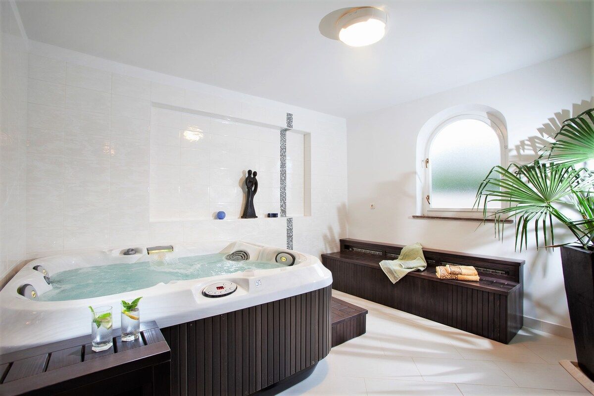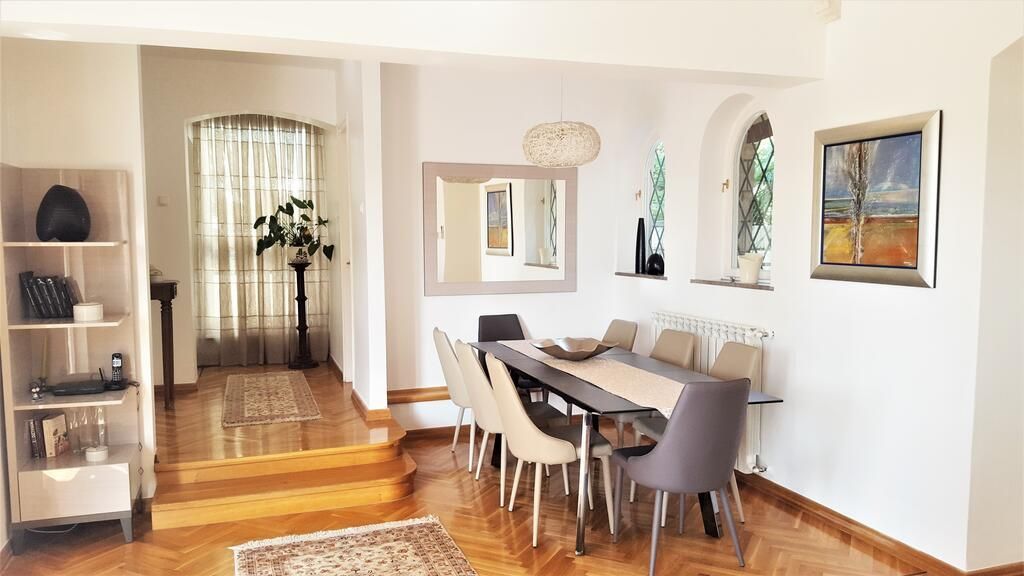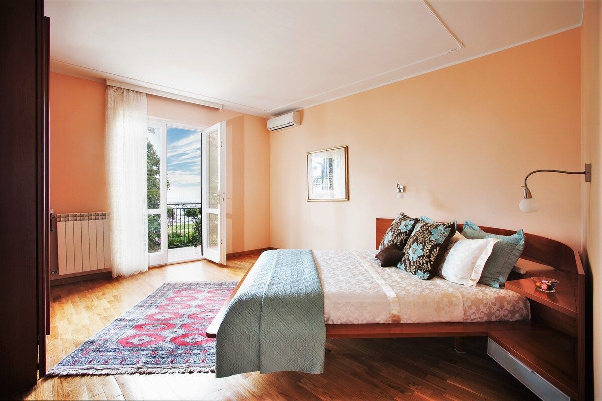 ISTRIEN, UMAG - Einzigartige Villa mit Pool, erste Reihe zum Meer Umag ist eine Stadt an der Westküste Istriens mit mediterranem Klima und bietet durch 45 km Küste den besten Einstieg in eine andere Erfahrung des Mittelmeers. Die Geschichte dieser Stadt ist sehr interessant. Es wurde von römischen Adligen entdeckt und beschlossen, es als Sommerresidenz zu nutzen. Glanz und Pracht von damals spiegeln sich noch heute in den venezianischen Häusern der Altstadt wieder. Die Entwicklung des Tourismus steht in direktem Zusammenhang mit der Entwicklung der Landwirtschaft - fruchtbare Böden eignen sich besonders für den Anbau von Oliven, Tomaten und Wein und anderen für das mediterrane Klima charakteristischen Pflanzen. Und wenn es um das gastronomische Angebot geht, gibt es ausgezeichnete Fisch- und Fleischspezialitäten und lokale istrische Küche. Umag wurde auch zur Europäischen Stadt des Sports erklärt und ist traditionell Gastgeber vieler Sportveranstaltungen auf der ganzen Welt, von denen das Tennisturnier ATP Croatia Open sicherlich hervorzuheben ist. In exklusiver Lage, 30 Meter vom Meer und 150 Meter von den Stränden entfernt, steht diese wunderschöne Villa im mediterranen Stil zum Verkauf, erste Reihe zum Meer, mit Außenpool, Whirlpool, Fitnessraum und wunderschönem Garten mit mediterranen Pflanzen. Die Villa ist mit einem handgefertigten schmiedeeisernen Zaun eingezäunt. Die Villa befindet sich in einer großartigen Lage für Yachtbesitzer und Segelbegeisterte, da sich der ACI-Yachthafen direkt vor dem Grundstück befindet. Es wurde nach hohen Standards renoviert, wobei viele seiner ursprünglichen Stein- und Marmormerkmale erhalten blieben und Moderne und Tradition erfolgreich kombiniert wurden, und es ist mit traditionellen italienischen Möbeln ausgestattet. Die Schlafzimmer und das Wohnzimmer haben Eichenböden, und die Flure und Küchen haben Terrakottafliesen oder Marmorböden. Die Badezimmer bestehen aus hochwertigen italienischen Fliesen und Sanitärkeramik. Auf einem Grundstück von 892 m2 befindet sich eine Villa mit einer Gesamtfläche von ca. 480 m2 auf zwei Etagen. Die Villa besteht aus drei Wohneinheiten, dem Hauptteil auf zwei Etagen und zwei Wohnungen mit separaten Eingängen. Das Erdgeschoss des Hauptteils der Villa besteht aus einem Wohnzimmer mit Marmorkamin und Zugang zu einer überdachten Terrasse, einem Esszimmer, einer voll ausgestatteten Küche, einem Schlafzimmer und einem Badezimmer. Im Erdgeschoss gibt es auch eine Sommerküche, die über einen Außenkamin mit Marmortisch verfügt und mit dem Garten verbunden ist, wo sich ein Swimmingpool mit Düsen, ein Wasserfall für Massagen, Nachtbeleuchtung und Winter- und Sommerabdeckung befindet. Im Erdgeschoss gibt es einen separaten Eingang, der zum Wellnessbereich führt, der aus einem Fitnessraum, einem Whirlpool und einem Badezimmer besteht. Im ersten Stock der Villa befinden sich eine Eingangshalle, zwei Badezimmer und vier Schlafzimmer. Zwei Schlafzimmer haben Zugang zu einem geräumigen Balkon mit herrlichem Meerblick, und die anderen beiden Schlafzimmer haben ebenfalls einen Balkon mit schöner Aussicht. Die beiden anderen Wohneinheiten haben separate Eingänge, was für zusätzliche Privatsphäre sorgt. Die erste Wohnung besteht aus Wohnzimmer, Küche, Bad, Balkon und einem Schlafzimmer. Im Obergeschoss befindet sich die zweite Wohnung, die aus einem Wohnzimmer, einer Küche mit Essbereich, zwei Schlafzimmern, einem Badezimmer und einem Balkon besteht. Auf der Rückseite der Villa befinden sich drei bis vier Parkplätze. Die Villa befindet sich in einem Wohnviertel der Stadt Umag in der Nähe des Zentrums und der Altstadt, aber in einer ruhigen Umgebung. Strände und alle wichtigen Sport- und anderen Einrichtungen sind nur einen kurzen Spaziergang entlang der Küste von der Villa entfernt. berechnet