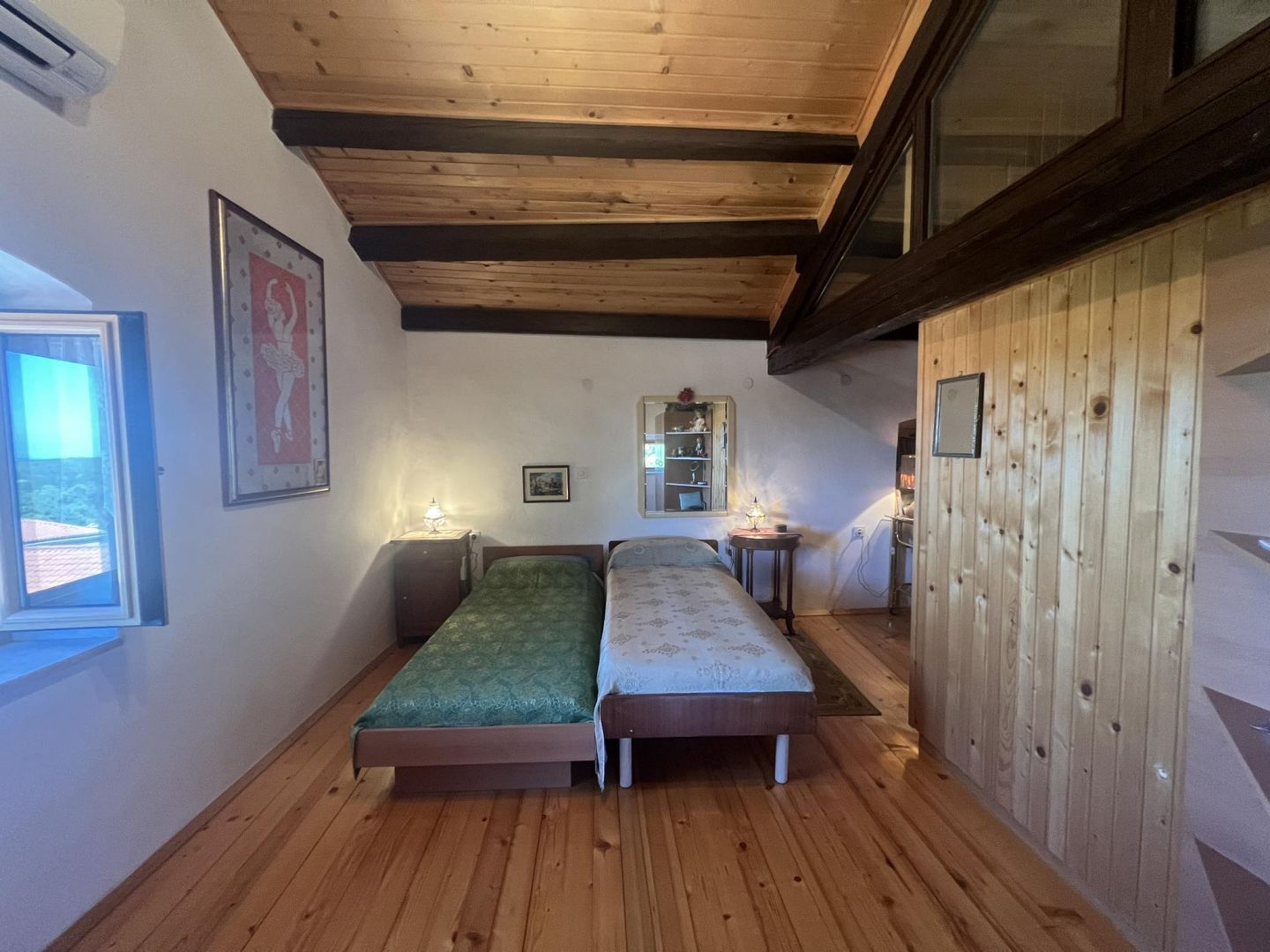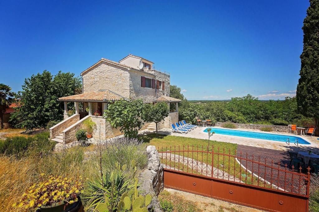 ISTRIEN, VIŠNJAN – Anwesen mit zwei Steinhäusern inmitten der Natur und Meerblick Višnjan ist eine malerische und lebendige Stadt und Gemeinde im Westen Istriens. Die Gemeinde Višnjan umfasst 56 Ortschaften und liegt zwischen dem Fluss Mirna im Norden und dem Lim-Kanal im Süden. Das romantische Višnjan schmiegt sich an einen sanften Hügel, 244 m über dem Meeresspiegel, umgeben von Wiesen, Ackerland und Wäldern aus Steineichen und Weißbuchen. Heute ist Višnjan vor allem für seine einzigartige Sternwarte bekannt, die gemessen an der Anzahl der entdeckten Asteroiden zu den zwölf produktivsten Sternwarten der Welt zählt. Zum Verkauf stehen zwei istrische Steinhäuser mit Swimmingpool im Zentrum eines wunderschönen, gut erhaltenen istrischen Dorfes nahe Višnjan. Das erste Haus mit Swimmingpool erstreckt sich über vier Etagen. Im Untergeschoss befindet sich eine große, wunderschön eingerichtete Taverne mit Kamin, Küche und Badezimmer. Das Erdgeschoss besteht aus Küche, Esszimmer und Wohnzimmer mit Zugang zu einer überdachten Terrasse sowie einem Balkon, einem Schlafzimmer, einem Badezimmer und einer Eingangshalle. Eine Innentreppe verbindet das Erdgeschoss mit dem ersten Obergeschoss, wo sich drei Schlafzimmer, ein Badezimmer, ein Abstellraum und ein großer, offener Balkon befinden. Eine weitere Innentreppe führt vom ersten Obergeschoss in das ausgebaute Dachgeschoss mit einem verglasten Atelier und einer Terrasse mit freiem Panoramablick auf die Stadt, den umliegenden Wald, die Felder und die Olivenhaine. Ein atemberaubender Ausblick, der die Zeit stillstehen lässt. Im gepflegten Garten befinden sich ein 23 m² großer Swimmingpool, eine Sonnenterrasse und ein Nebengebäude. Das zweite Steinhaus im Erdgeschoss verfügt über eine Garage, einen Keller und einen Abstellraum. Im ersten Obergeschoss befinden sich eine überdachte Terrasse, ein großes Schlafzimmer, ein Wohnzimmer mit Küche, ein Esszimmer und ein großes Badezimmer. Im ausgebauten Dachgeschoss befinden sich zwei geräumige Schlafzimmer. Das Anwesen verfügt über einen großen Garten mit mehreren überdachten und nicht überdachten Parkplätzen. Im Hof befinden sich außerdem ein alter Brunnen und ein Brotbackofen. Das Anwesen ist ideal für eine Auszeit vom Stadttrubel oder zur touristischen Vermietung.