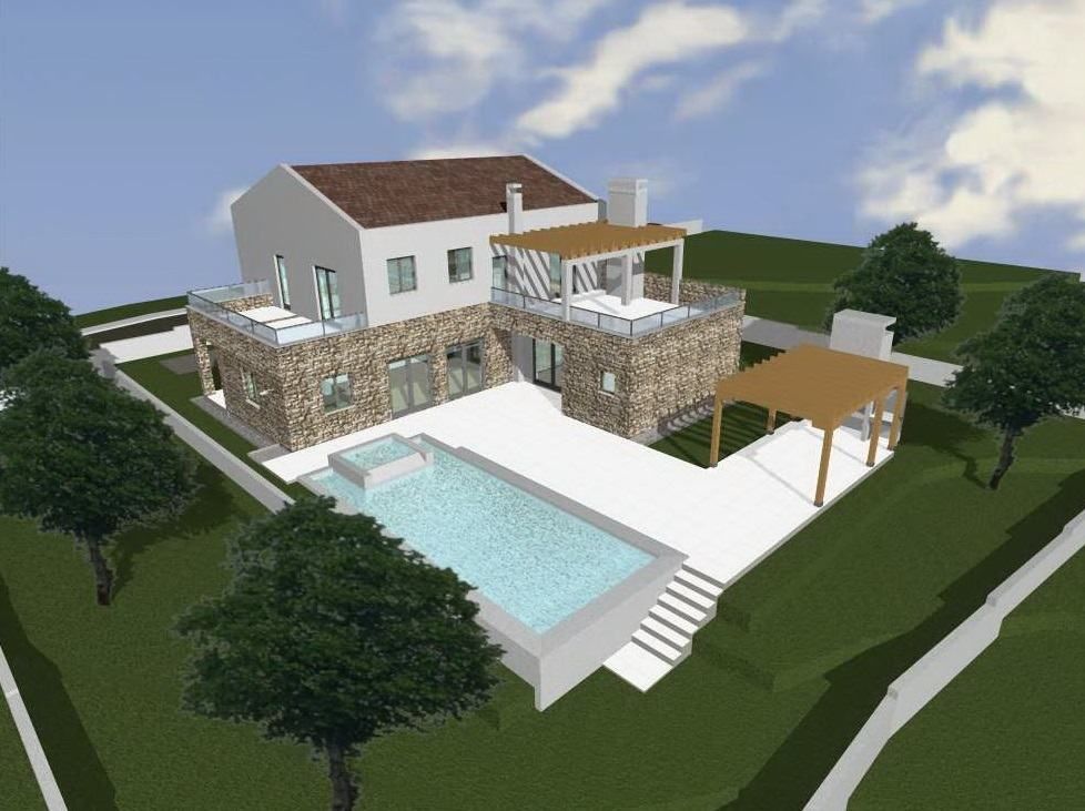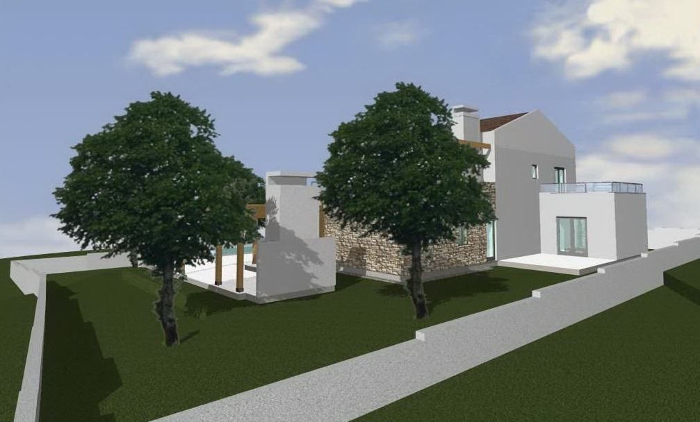 ISTRIEN, VIŠNJAN – Baugrundstück mit Baugenehmigung und Meerblick Višnjan liegt im Westen Istriens, in der Region Poreština, zwischen dem Fluss Mirna und dem Lim-Kanal. Der Ort ist verkehrsgünstig gelegen und gut an die umliegenden Städte angebunden. Er ist 12 Kilometer von Poreč und nur 3 Kilometer von der Hauptstraße Pula–Triest entfernt. Die ehemalige Parenzana-Eisenbahnlinie, die eine wichtige Rolle für die wirtschaftliche Entwicklung und den Transport regionaler Produkte spielte, führte einst durch diese Gegend. In der Nähe von Višnjan steht ein 980 m² großes Baugrundstück mit fertigem Projekt und gültiger Baugenehmigung zum Verkauf. Die Lage bietet Ruhe, Natur pur und einen wunderschönen Meerblick. Die gesamte notwendige Infrastruktur befindet sich direkt am Grundstücksrand. Das Projekt sieht den Bau eines Ferienhauses mit Pool und Pavillon auf einer Gesamtfläche von 330 m² vor. Eine hervorragende Investitionsmöglichkeit für eine Ferienvilla oder ein Familienhaus. Das Eigentum ist lastenfrei und zu gleichen Teilen (1/1).