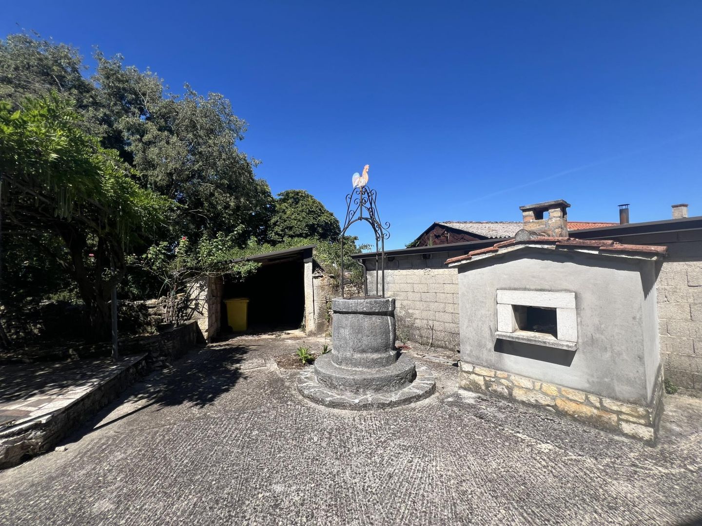 ISTRIEN, VIŠNJAN – Steinhaus mit Aussicht. Višnjan ist eine malerische und lebendige Stadt und Gemeinde im Westen Istriens. Die Gemeinde Višnjan umfasst 56 Ortschaften und liegt zwischen dem Fluss Mirna im Norden und dem Lim-Kanal im Süden. Das romantische Višnjan schmiegt sich an einen sanften Hügel, 244 m über dem Meeresspiegel, umgeben von Wiesen, Ackerland und Wäldern aus Steineichen und Weißbuchen. Heute ist Višnjan vor allem für seine einzigartige Sternwarte bekannt, die gemessen an der Anzahl der entdeckten Asteroiden zu den zwölf produktivsten Sternwarten der Welt zählt. Ein wunderschönes Steinhaus steht zum Verkauf. Es verfügt über einen großen Garten mit mehreren überdachten und nicht überdachten Parkplätzen. Im Innenhof befinden sich ein alter Brunnen und ein Brotbackofen. Im Erdgeschoss befinden sich eine Garage, eine Gaststube und ein Abstellraum. Im ersten Stock befinden sich eine überdachte Terrasse, ein großes Schlafzimmer, ein Wohnzimmer mit Küche, ein Esszimmer und ein großes Badezimmer. Im ausgebauten Dachgeschoss befinden sich zwei geräumige Schlafzimmer. Das Haus ist möbliert und wird im Ist-Zustand verkauft. Eine ideale Immobilie für Familien oder zur touristischen Vermietung.