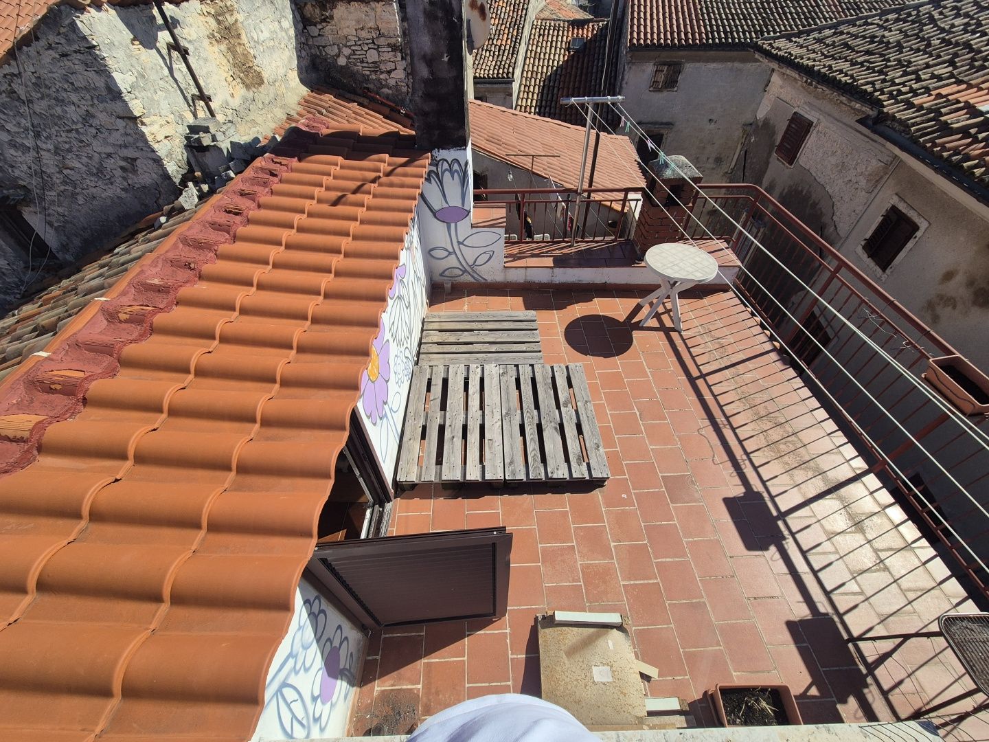 ISTRIEN, VODNJAN – Authentisches Steinhaus mit Dachterrasse im Herzen von Vodnjan, Meerblick Eingebettet in die charmanten Gassen der Altstadt von Vodnjan, verströmt dieses einzigartige Reihenhaus den authentischen Charme und die Wärme des mediterranen Lebensgefühls. Es ist ideal für alle, die ein Haus mit Charakter, Geschichte und besonderer Atmosphäre suchen. Das Haus erstreckt sich über vier Etagen mit jeweils 17 m² Wohnfläche. Die funktionale Raumaufteilung nutzt jeden Winkel optimal aus. Im Erdgeschoss befinden sich eine Eingangshalle, ein praktischer Abstellraum und ein Badezimmer. Im ersten Obergeschoss erwartet Sie eine Küche mit Essbereich, während sich im zweiten und dritten Obergeschoss zwei separate Schlafzimmer befinden. Das absolute Highlight dieses Hauses ist die großzügige Dachterrasse mit spektakulärem Blick über die Dächer der Altstadt, die Kirche des Heiligen Blasius, das Meer am Horizont und den Berg Učka. Ein idealer Ort zum Entspannen, für den Morgenkaffee oder gesellige Abende. Das Haus wurde vor etwa 20 Jahren renoviert. Die Zwischenetage im ersten Stock ist aus Beton, während die anderen Geschosse aus Holzbalken und -dielen bestehen, die damals ebenfalls renoviert wurden. Die Terrasse ist aus Beton, und ein Teil des Dachstuhls wurde 2022 mit neuen Ziegeln gedeckt. Für das Objekt liegt eine Baugenehmigung vor, die belegt, dass es vor 1968 errichtet wurde. Dies ermöglicht den Kauf mit einem Wohnkredit. Parkplätze und alle notwendigen Einrichtungen befinden sich ca. 500 Meter entfernt. Vodnjan ist bekannt für sein reiches kulturelles Erbe, eine zweisprachige Grundschule und einen Kindergarten. Zudem wurde kürzlich eine Waldorfschule eröffnet, was den Ort besonders attraktiv für Familien mit Kindern macht. Weitere Ausstattungsmerkmale: Holzheizung, PVC-Fenster, Holzfensterläden, Fassade: Putz, Baugenehmigung vor 1968 Diese Immobilie eignet sich ideal als authentisches Zuhause, Wochenendhaus oder als Kapitalanlage zur touristischen Vermietung.