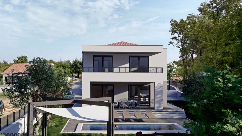 ISTRIEN, VODNJAN - Modernes Haus mit Pool Das malerische Vodnjan, eine mittelalterliche Stadt mit ländlichem Charme, liegt im Südwesten Istriens auf 135 Metern über dem Meeresspiegel. Das Stadtgebiet von Vodnjan umfasst 102 km² und besteht aus den vier Ortsteilen Barbariga, Gajana, Galižana und Peroj. Vodnjan und seine Umgebung zeichnen sich durch eine einzigartige Kombination aus grünem Hinterland und azurblauer Adriaküste aus. Diese gesamte Region verfügt über ein reiches immaterielles und materielles Kulturerbe, eine intakte Umwelt, sauberes Meer und gepflegte Strände, eine gut ausgebaute touristische und unternehmerische Infrastruktur, gepflegte Grünanlagen und ein ausgeprägtes Gemeinschaftsgefühl. Sie bietet fantastisches Potenzial für die Entwicklung vielfältiger Aktivitäten. Unweit der Stadt Vodnjan, im kleinen Dorf Galižana, das Ruhe, Meeresnähe und die sprichwörtliche istrische Gastfreundschaft perfekt vereint, steht ein modernes Haus mit Pool zum Verkauf. Die Lage bietet ein authentisches istrisches Dorfleben mit viel Privatsphäre, Erholung vom Alltag und Ruhe, und gleichzeitig die Nähe zu den dynamischen istrischen Städten mit ihren vielfältigen Angeboten. Neben der günstigen Lage zeichnet sich die Immobilie durch ihre hochwertige Bauweise aus, die langfristige Zufriedenheit und hohen Wohnkomfort garantiert. Das Haus fügt sich architektonisch harmonisch in die Umgebung ein und schafft eine gelungene Verbindung von Natur und modernem Design. Es handelt sich um eine Wohneinheit mit zwei Etagen und einem funktionalen Grundriss. Das Erdgeschoss besteht aus einem offenen Wohnbereich mit Küche, Esszimmer und Wohnzimmer sowie Zugang zu einer überdachten Terrasse, einem Badezimmer, einer Eingangshalle und den Technikräumen. Im Obergeschoss befinden sich drei Schlafzimmer mit jeweils eigenem Bad und einer überdachten Terrasse. Der Garten ist stimmungsvoll und gärtnerisch gestaltet und umzäunt. Ein Swimmingpool mit Liegewiese sorgt für harmonische Atmosphäre. Die hervorragende Lage und die durchdachte Raumaufteilung im Innen- und Außenbereich bieten ideale Voraussetzungen für ein komfortables Familienleben oder eine Investition in die touristische Vermietung. Der angegebene Preis bezieht sich auf den Rohbauzustand ohne Möbel. Sie können die Immobilie somit ganz nach Ihren Wünschen und Vorlieben einrichten.