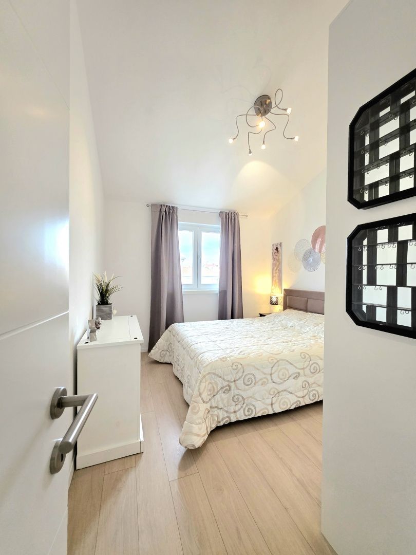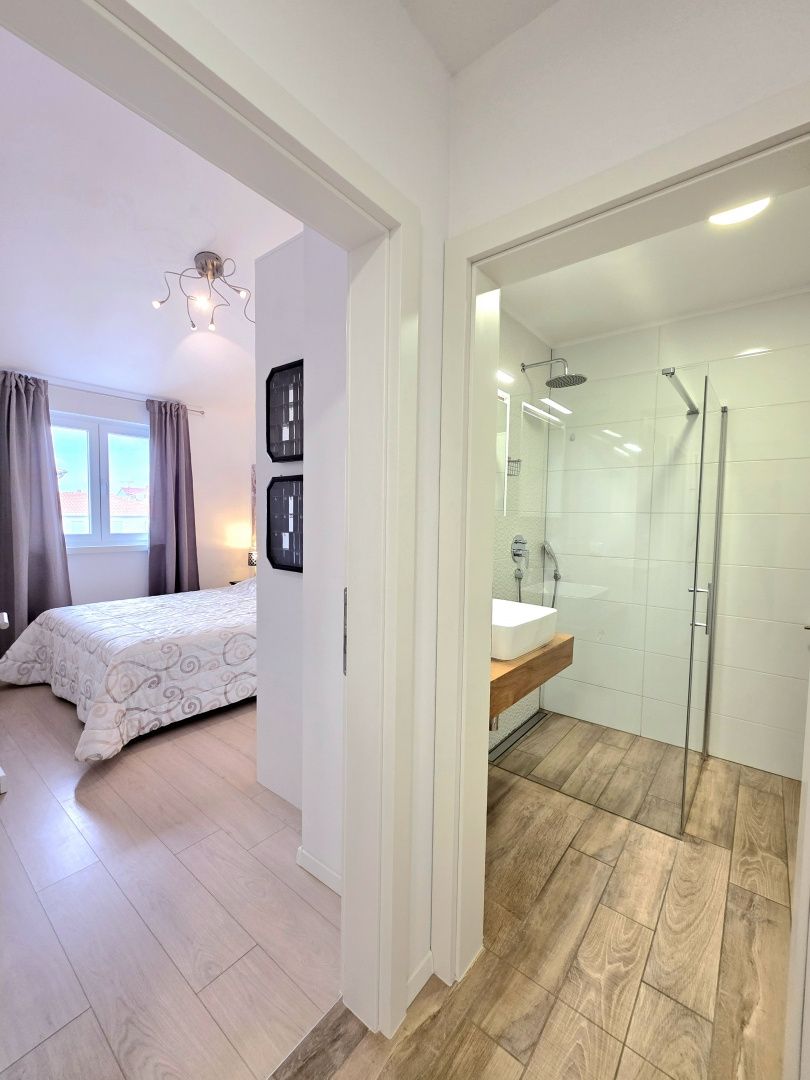 ISTRIEN, ŽBANDAJ – 2-Zimmer-Wohnung zum Verkauf in der Nähe des Zentrums von Poreč und der Strände Im idyllischen und ruhigen Dorf Žbandaj, unweit von Poreč, befindet sich diese funktionale und durchdacht gestaltete Wohnung, die Komfort, Praktikabilität und eine ruhige Umgebung perfekt vereint. In einer Sackgasse gelegen, fernab von Lärm und Verkehr, bietet diese Wohnung genau das, was heutzutage immer gefragter ist: Privatsphäre, Sicherheit und hochwertigen Wohnraum mit schneller Anbindung an alle wichtigen Einrichtungen und das Meer. Die Wohnung befindet sich im 2. Obergeschoss (dem obersten Stockwerk) eines kleinen Wohnhauses mit nur 8 Wohnungen und verfügt über eine Gesamtfläche von 66,01 m², zuzüglich 11 m² Galeriefläche, die zusätzliche Funktionalität und Flexibilität bietet. WOHNUNGSBESCHREIBUNG – Clevere Raumaufteilung und angenehme Atmosphäre Beim Betreten der Wohnung gelangt man in einen Flur mit einem großen Einbauschrank, der praktischen Stauraum und eine optimale Raumaufteilung ermöglicht und von dem aus alle Zimmer der Wohnung zugänglich sind. Das Herzstück der Wohnung bildet ein geräumiges Wohnzimmer mit Essbereich, das als angenehmer Raum für den Alltag, zum Entspannen und für gesellige Stunden mit Familie und Freunden gestaltet ist. Die Möglichkeit, einen Pelletofen einzubauen, verleiht dem Raum eine besondere Wärme und trägt so zur behaglichen Atmosphäre bei. Vom Wohnbereich aus gelangt man auf die Loggia, einen einladenden Außenbereich, ideal für den Morgenkaffee oder entspannte Abende. Hier befindet sich alles, was man für die Sommerküche benötigt. Die großzügige Loggia lädt zum Verweilen im Freien ein. Die Küche ist etwas abgetrennt, funktional eingerichtet und perfekt auf den täglichen Gebrauch abgestimmt. So entsteht die ideale Balance zwischen Offenheit und Funktionalität. Die Wohnung verfügt außerdem über zwei Schlafzimmer. Das kleinere Zimmer mit Galerie (+11 m²) eignet sich ideal als zusätzlicher Raum zum Schlafen, Arbeiten, Spielen oder Abstellen. Das zweite Schlafzimmer ist ein etwas größeres Hauptschlafzimmer mit Doppelbett und Einbauschrank. Das Badezimmer ist komfortabel und modern eingerichtet und mit Dusche, WC und Bidet ausgestattet. Die Fußbodenheizung sorgt für zusätzlichen Komfort. Anschlüsse für Waschmaschine und Trockner sind ebenfalls vorhanden. ZUSÄTZLICHE INFORMATIONEN: * Klimaanlage im Wohnzimmer und in beiden Schlafzimmern ermöglicht ganzjährig einen angenehmen Aufenthalt. * Eigener Parkplatz * Abstellraum im Erdgeschoss (mit Anschlüssen für Waschmaschine und Trockner) * Fußbodenheizung im Badezimmer * Möglichkeit zur Pelletheizung * PVC-Fenster und -Türen mit Moskitonetzen und Rollläden * Ruhige Lage in einer Sackgasse * Gepflegtes Eigentum (1/1) * Das Gebäude verfügt über eine Nutzungsgenehmigung, die Wohnungen sind Eigentumswohnungen * Finanzierung möglich LAGEBESCHREIBUNG – Ruhige Umgebung in Stadt- und Meeresnähe Die Wohnung befindet sich in Žbandaj, einem Ort, der für seine ruhige Atmosphäre und die hervorragende Anbindung an die Stadt Poreč bekannt ist. In der Nähe befinden sich: * Geschäfte * Schule und Kindergarten * Restaurants und Cafés Das Zentrum von Poreč ist nur 5 km entfernt, die ersten Strände und das Meer erreichen Sie nach ca. 5–6 km. Diese Immobilie ist ideal für: * Familienleben in ruhiger Umgebung * Langzeitvermietung * Investition in die Ferienvermietung Die Kombination aus funktionalem Grundriss, zusätzlichem Galerieraum und ruhiger Lage macht diese Wohnung äußerst attraktiv und begehrt. Bei weiteren Fragen, für weitere Informationen oder zur Vereinbarung eines Besichtigungstermins kontaktieren Sie uns bitte jederzeit.