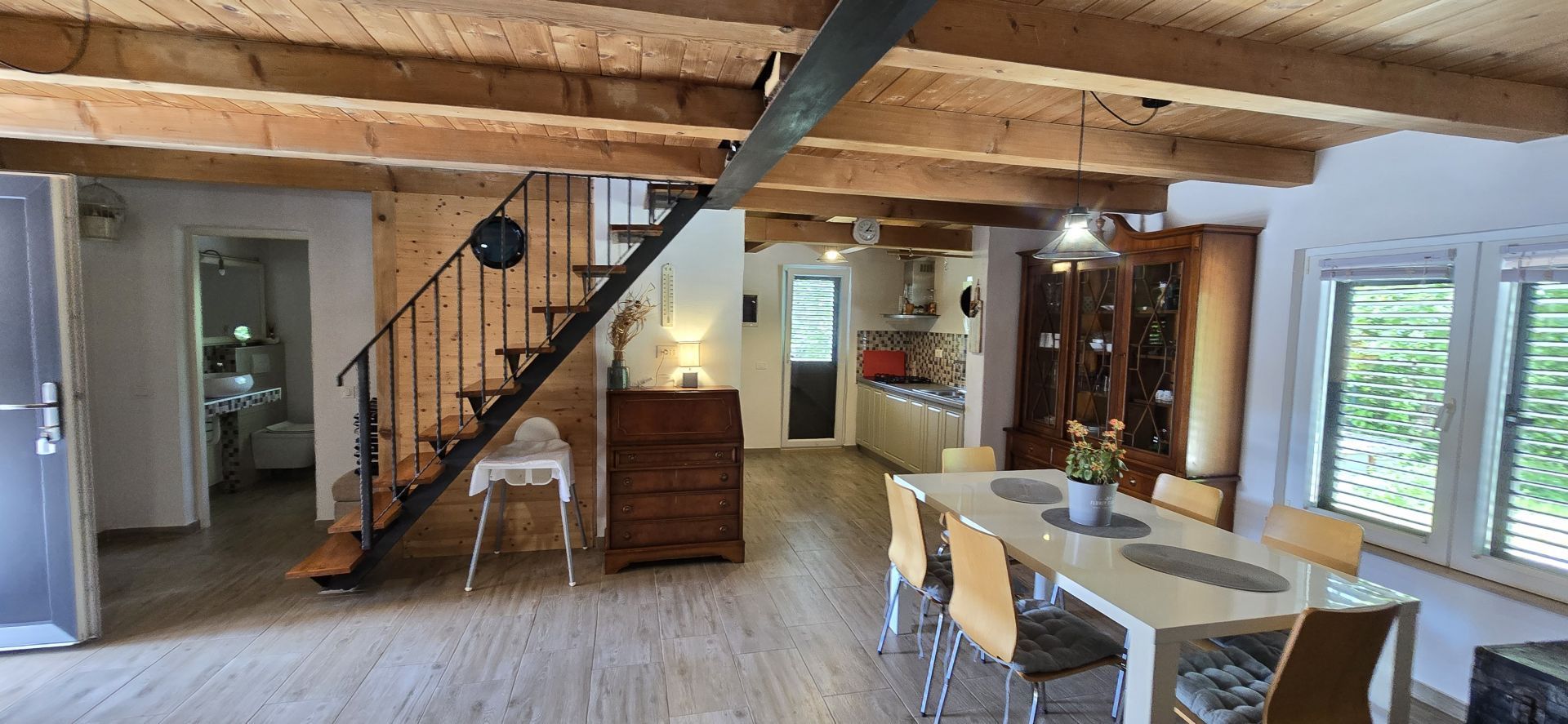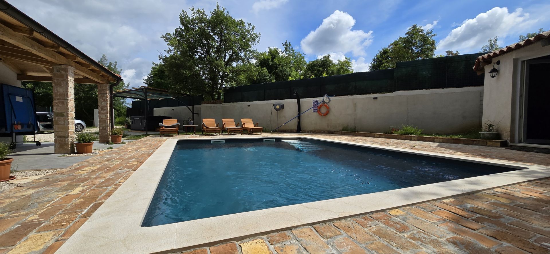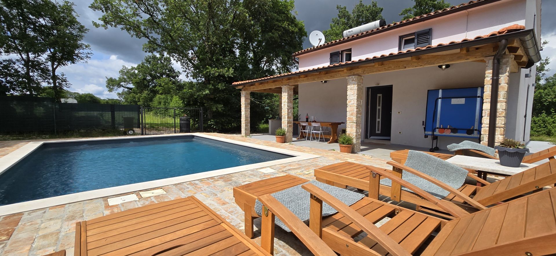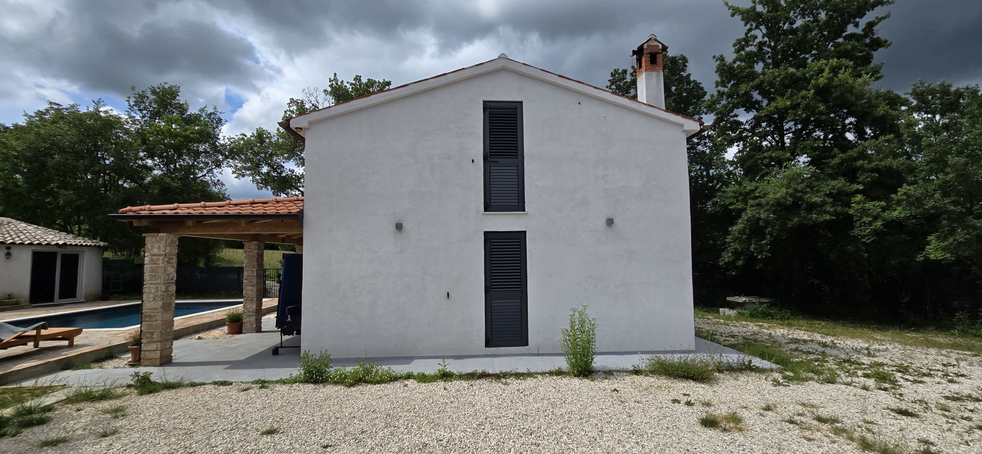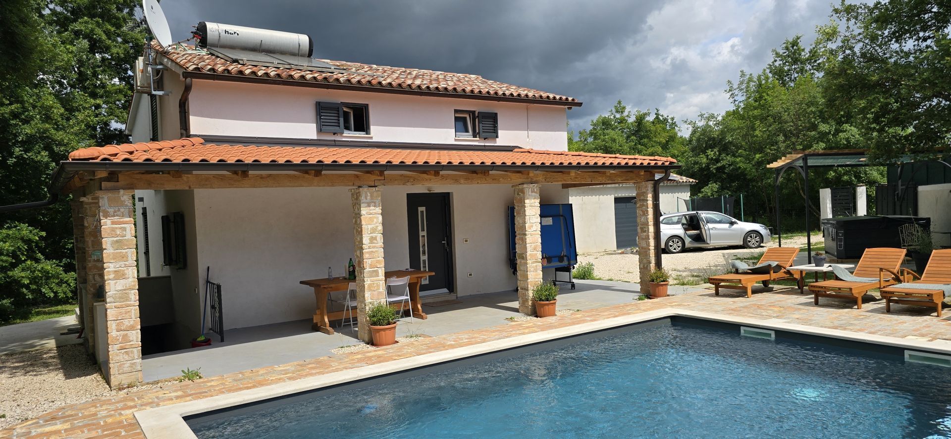 ISTRIEN, ŽMINJ – Idyllisches Ferienhaus mit Pool und Whirlpool Seit jeher ist Žminj ein wichtiger Verkehrsknotenpunkt, der die gesamte istrische Halbinsel verbindet. Der Ort ist ideal, um die Natur zu genießen, zu wandern oder Rad zu fahren. Auf dem Weg durch Žminj und die Umgebung begegnen Ihnen zahlreiche Steinhäuser und Hütten, jedes mit seiner eigenen Geschichte. Jahrhundertealte istrische Steinhäuser wurden in Agriturismo-Betriebe umgewandelt, sodass Sie auch die lokale istrische Küche genießen können. Am letzten Samstag im August findet das traditionelle Bartulja-Fest statt, das größte Volksfest, das Istrien und ihre Gäste sich nicht entgehen lassen. Nur wenige Autominuten vom Zentrum von Žminj entfernt liegt dieses einzigartige Ferienhaus inmitten von Natur und Grün. Das Haus befindet sich in einer ruhigen Lage, die nächsten Nachbarn sind 450 Meter entfernt, sodass die zukünftigen Eigentümer viel Privatsphäre und Ruhe genießen können. Die 100 m² große Wohnfläche erstreckt sich über Erdgeschoss und Obergeschoss. Das Erdgeschoss umfasst Küche, Esszimmer, Wohnzimmer und Badezimmer. Eine Innentreppe führt ins Obergeschoss mit zwei Schlafzimmern und zwei Badezimmern. Das Haus verfügt außerdem über einen 12 m² großen Keller. Im großzügigen, 2.781 m² großen Garten befinden sich ein Swimmingpool mit Liegewiese, ein Whirlpool und eine überdachte Terrasse mit Tisch zum Essen und Beisammensein mit der Familie. Neben dem Pool steht ein runder Schuppen (ca. 18 m²). Dieser wird derzeit als Abstellraum genutzt, kann aber vom zukünftigen Eigentümer nach seinen Wünschen gestaltet werden. Für Ihre Haustiere steht Ihnen die ca. 40 m² große Garage zur Verfügung. Alternativ können Sie im Garten parken – es gibt mehrere Stellplätze. Das Haus ist mit 3 Sternen kategorisiert und wurde jahrelang erfolgreich vermietet, sodass der neue Eigentümer das Geschäft schnell übernehmen kann. Es besteht die Möglichkeit, weitere 2.000 m² Gartenfläche zu erwerben. Eine einmalige Gelegenheit!
