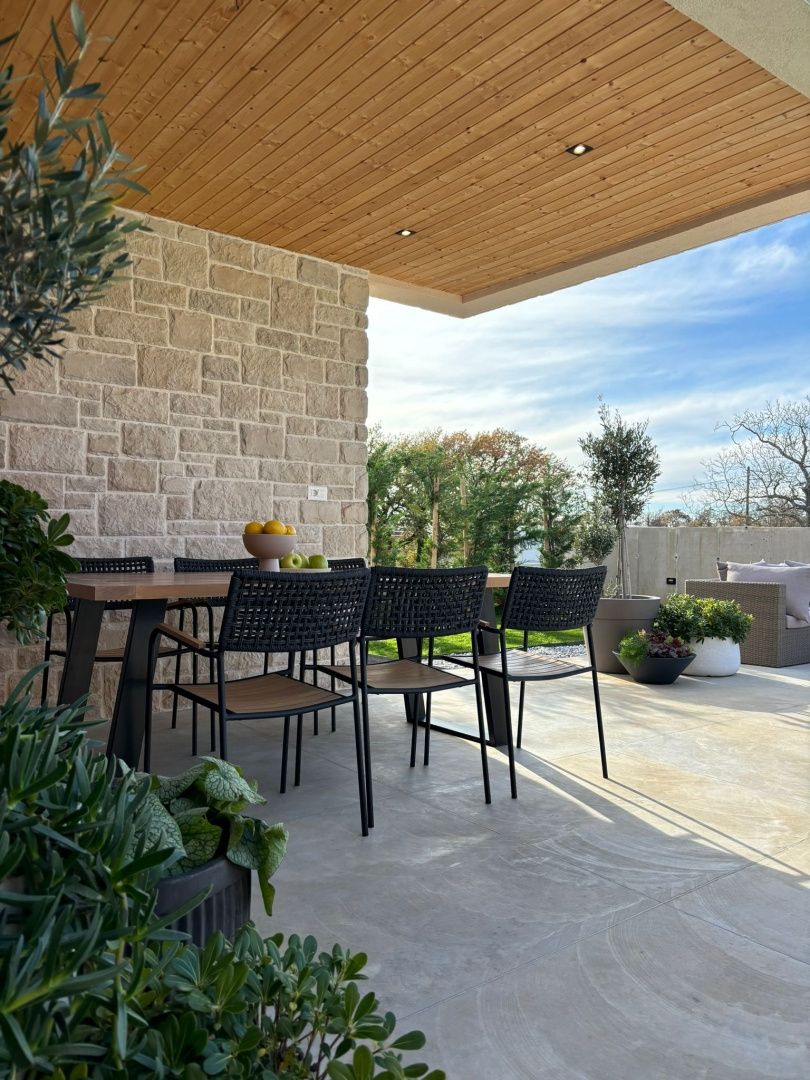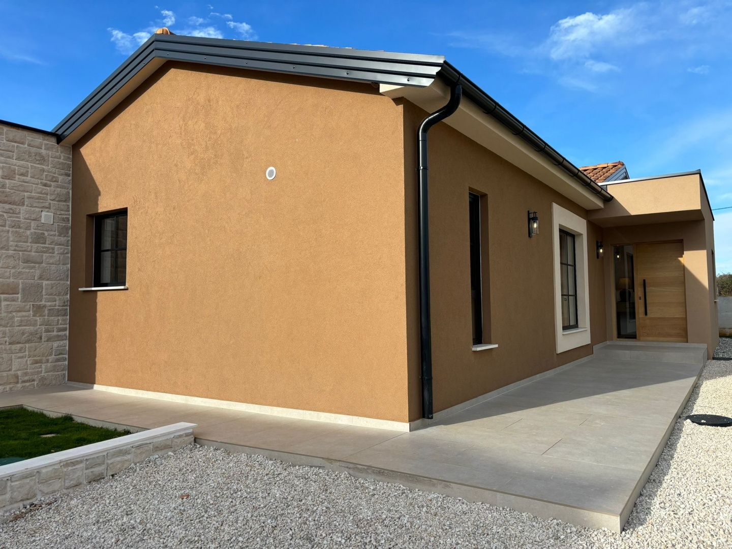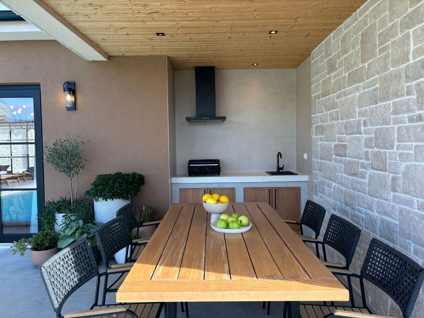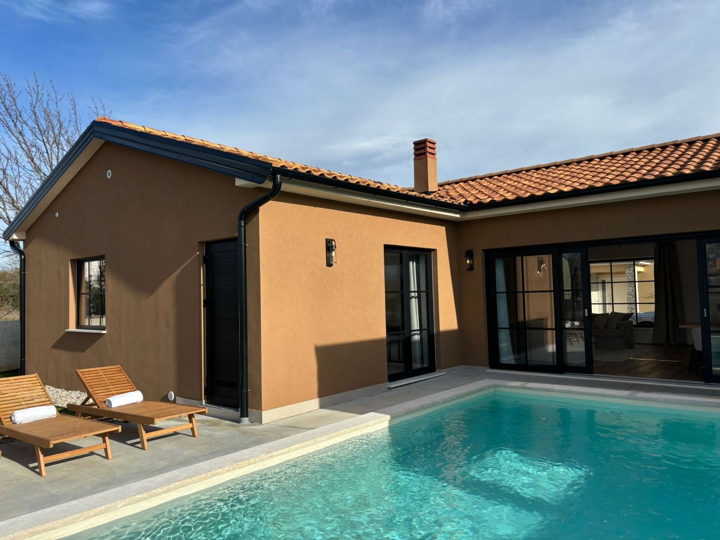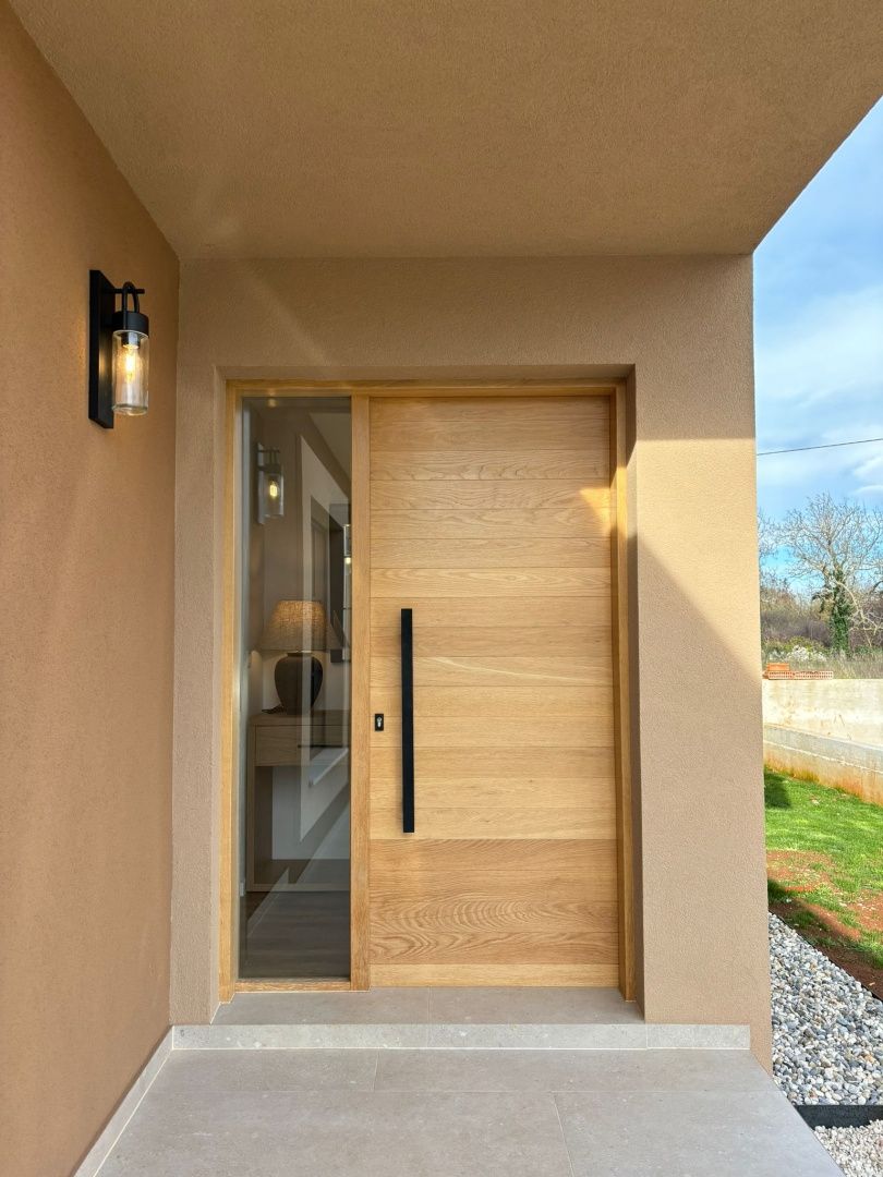 ISTRIEN, ŽMINJ – Ein traumhaftes Einfamilienhaus in einer privaten Anlage! DUX Real Estate präsentiert ein traumhaftes Einfamilienhaus mit erstklassiger Ausstattung! Dieses neu erbaute Haus befindet sich in ruhiger Lage, nur 5 Autominuten vom Zentrum von Žminj entfernt! Das Haus besticht durch ein offenes Raumkonzept mit exzellenter Raumaufteilung und einem großzügigen, fließend ineinander übergehenden Wohnbereich, der Wohnzimmer, Küche und Esszimmer miteinander verbindet. Zwei Schlafzimmer mit jeweils eigenem Bad, eines davon mit begehbarem Kleiderschrank, ein Hauswirtschaftsraum und ein Gäste-WC runden das Angebot ab. Wir laden alle Interessenten herzlich zu einer Besichtigung ein. Das wunderschöne, rustikal-moderne Interieur sorgt für ein ganz besonderes Ambiente. Das Haus wird möbliert verkauft. 90 % der Möbel wurden exklusiv für dieses traumhafte Einfamilienhaus maßgefertigt. Warum betonen wir immer wieder das Wort „traumhaft“? Weil dieses Haus wirklich etwas ganz Besonderes ist. Das Hausprojekt selbst und die Funktionalität der Räume heben sich deutlich von vielen anderen Immobilien auf dem Markt ab. Die Einrichtung wird sowohl Liebhaber des rustikalen als auch des modernen Stils begeistern und Ihnen gleichzeitig ein Gefühl von istrischem Flair vermitteln! Überzeugen Sie sich selbst! Für wohlige Wärme und Kühlung sorgt eine Fußbodenheizung im gesamten Haus, und selbstverständlich ist auch eine Klimaanlage vorhanden! Der Garten bietet alles, was Sie brauchen, ohne dass Sie viel Zeit und Geld in die Pflege investieren müssen. Es gibt einen Swimmingpool, eine Sonnenterrasse und eine überdachte Terrasse mit Sommerküche, deren Gestaltung sich harmonisch in das Gesamtkonzept des Anwesens einfügt. Zwei Parkplätze stehen zur Verfügung. Das Erdgeschoss ist umgeben von anderen Neubauten und Natur! Ein sicheres Zuhause! Wir stehen Ihnen für alle weiteren Fragen und die Organisation von Besichtigungen gerne zur Verfügung! Liebe