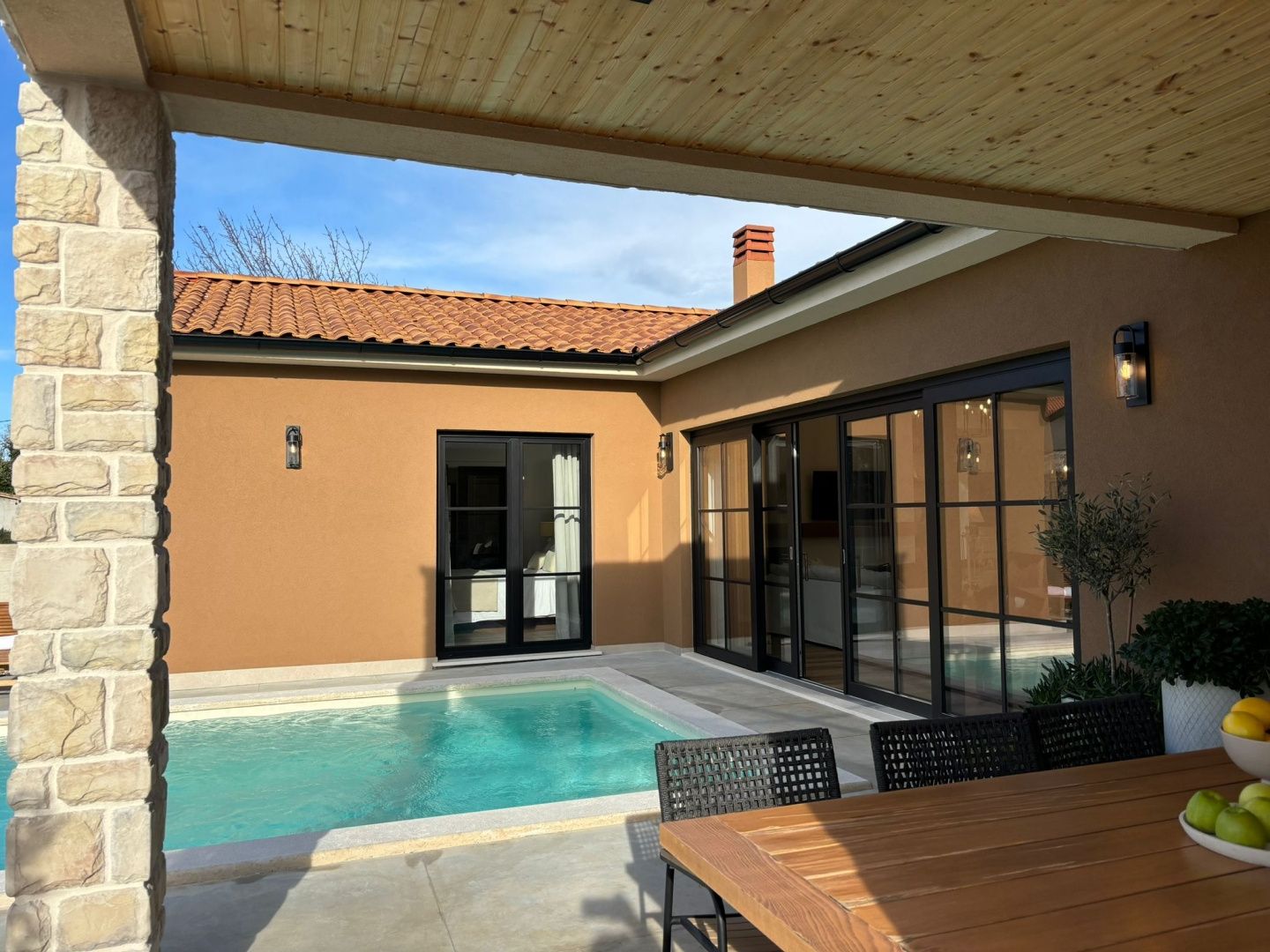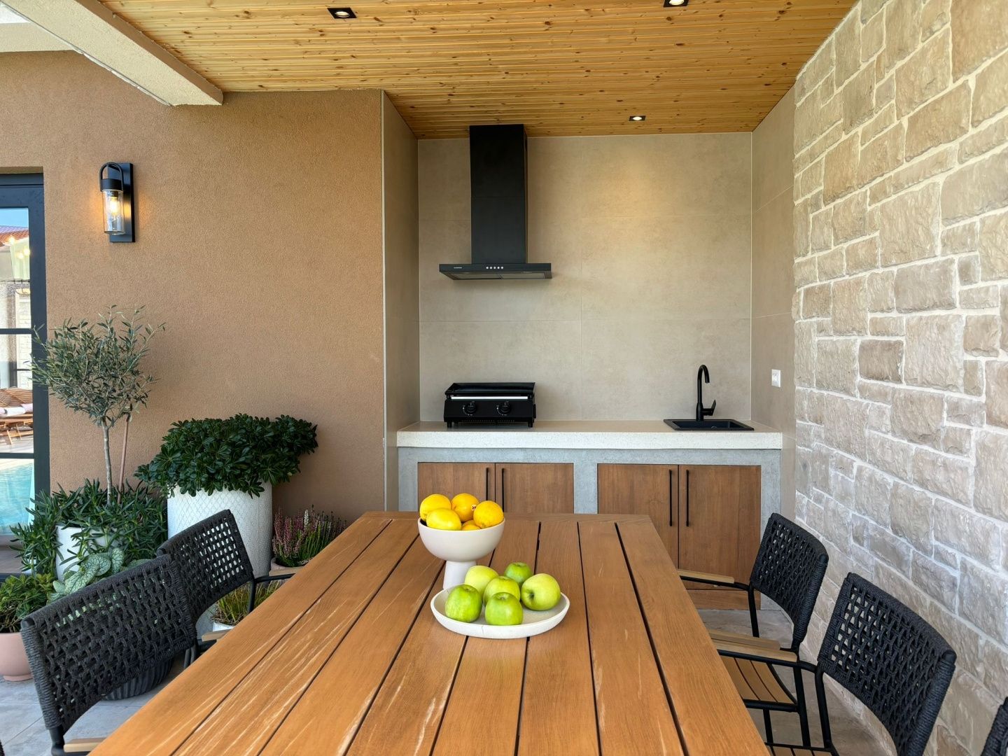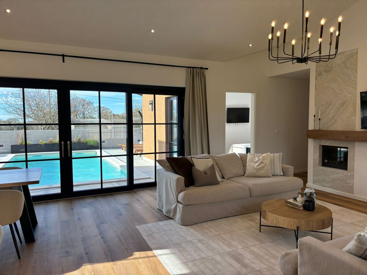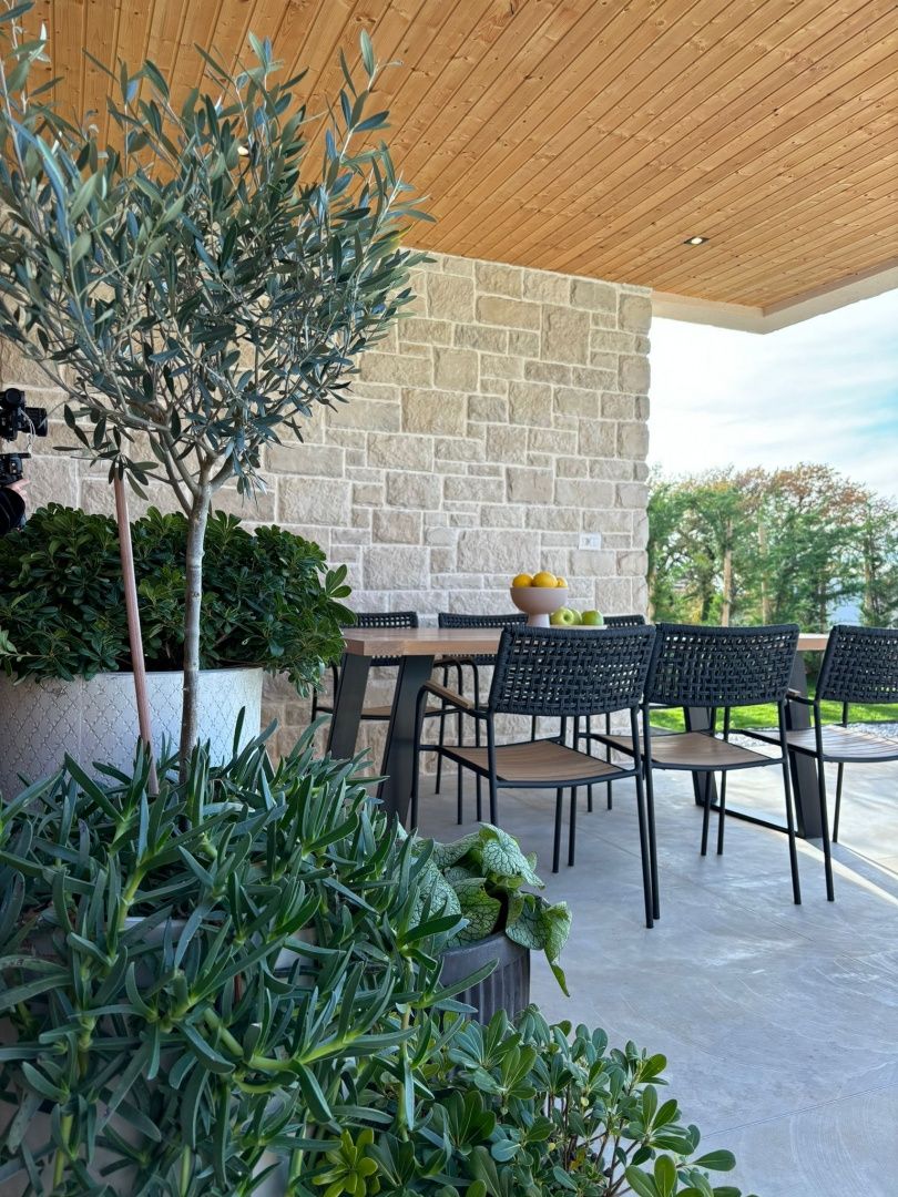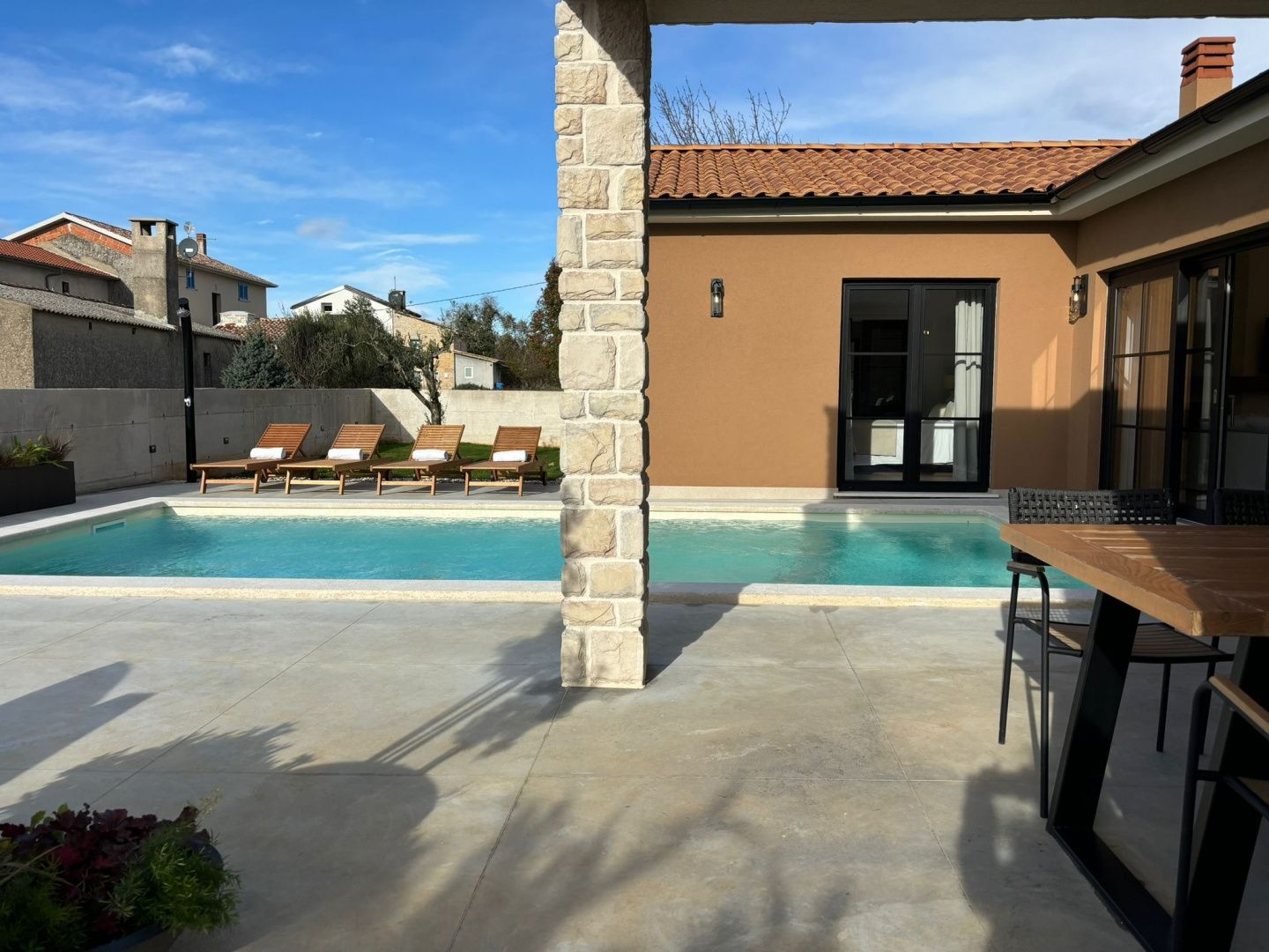 ISTRIEN, ŽMINJ – Ein traumhaftes Einfamilienhaus in einer privaten Anlage! DUX Real Estate präsentiert ein traumhaftes Einfamilienhaus mit erstklassiger Ausstattung! Dieses neu erbaute Haus befindet sich in ruhiger Lage, nur 5 Autominuten vom Zentrum von Žminj entfernt! Das Haus besticht durch ein offenes Raumkonzept mit exzellenter Raumaufteilung und einem großzügigen, fließend ineinander übergehenden Wohnbereich, der Wohnzimmer, Küche und Esszimmer miteinander verbindet. Zwei Schlafzimmer mit jeweils eigenem Bad, eines davon mit begehbarem Kleiderschrank, ein Hauswirtschaftsraum und ein Gäste-WC runden das Angebot ab. Wir laden alle Interessenten herzlich zu einer Besichtigung ein. Das wunderschöne, rustikal-moderne Interieur sorgt für ein ganz besonderes Ambiente. Das Haus wird möbliert verkauft. 90 % der Möbel wurden exklusiv für dieses traumhafte Einfamilienhaus maßgefertigt. Warum betonen wir immer wieder das Wort „traumhaft“? Weil dieses Haus wirklich etwas ganz Besonderes ist. Das Hausprojekt selbst und die Funktionalität der Räume heben sich deutlich von vielen anderen Immobilien auf dem Markt ab. Die Einrichtung wird sowohl Liebhaber des rustikalen als auch des modernen Stils begeistern und Ihnen gleichzeitig ein Gefühl von istrischem Flair vermitteln! Überzeugen Sie sich selbst! Für wohlige Wärme und Kühlung sorgt eine Fußbodenheizung im gesamten Haus, und selbstverständlich ist auch eine Klimaanlage vorhanden! Der Garten bietet alles, was Sie brauchen, ohne dass Sie viel Zeit und Geld in die Pflege investieren müssen. Es gibt einen Swimmingpool, eine Sonnenterrasse und eine überdachte Terrasse mit Sommerküche, deren Gestaltung sich harmonisch in das Gesamtkonzept des Anwesens einfügt. Zwei Parkplätze stehen zur Verfügung. Das Erdgeschoss ist umgeben von anderen Neubauten und Natur! Ein sicheres Zuhause! Wir stehen Ihnen für alle weiteren Fragen und die Organisation von Besichtigungen gerne zur Verfügung! Liebe