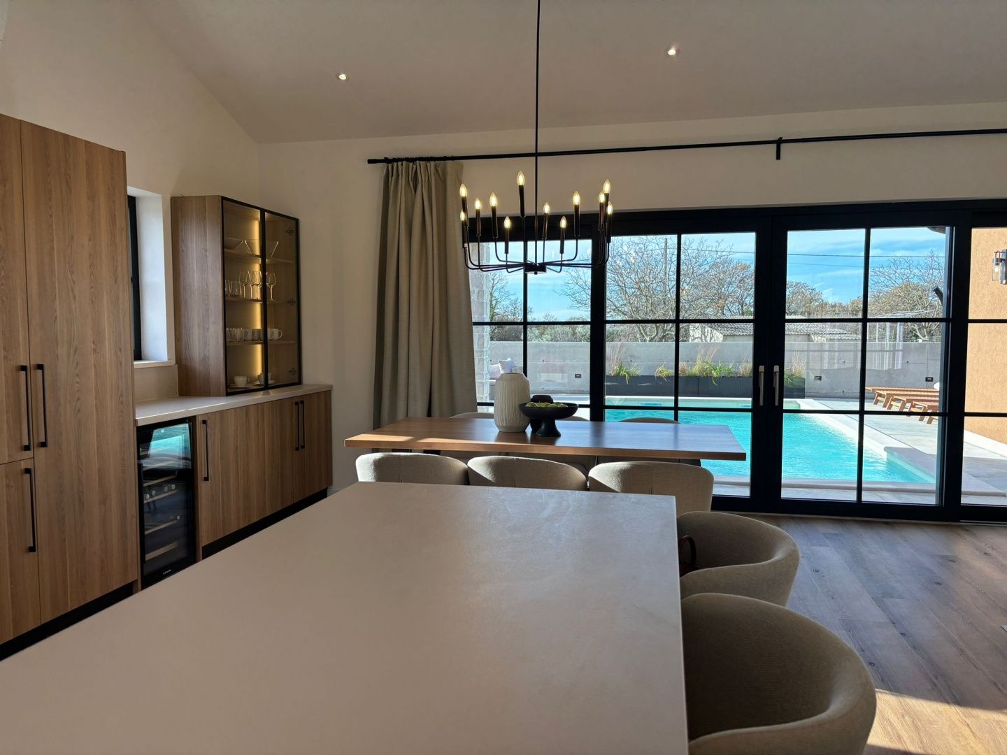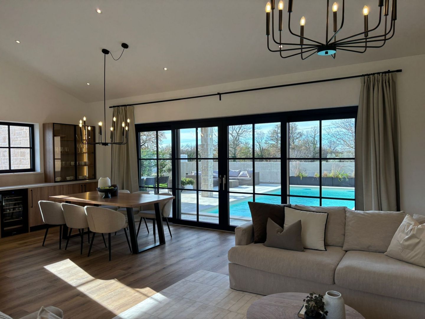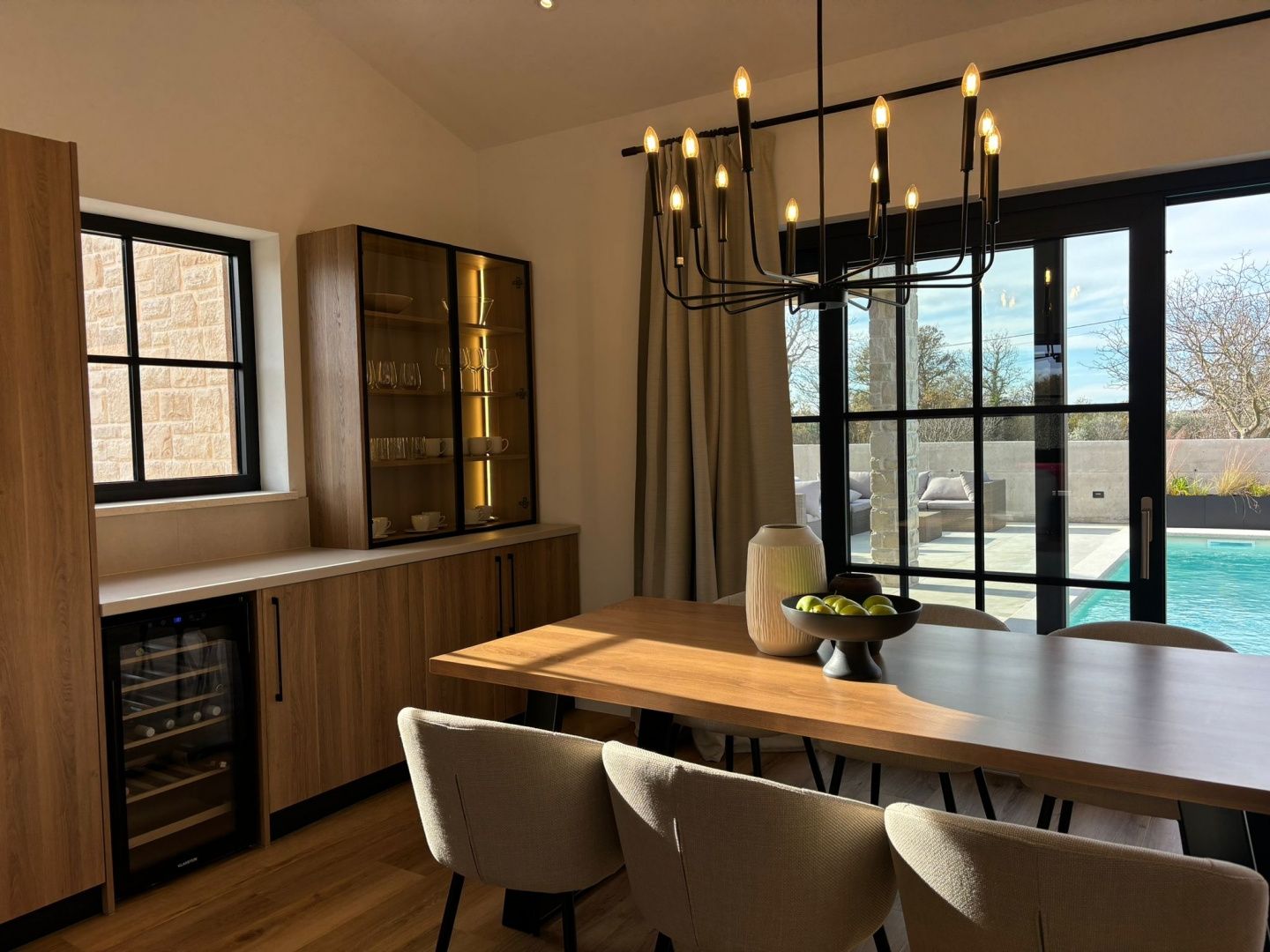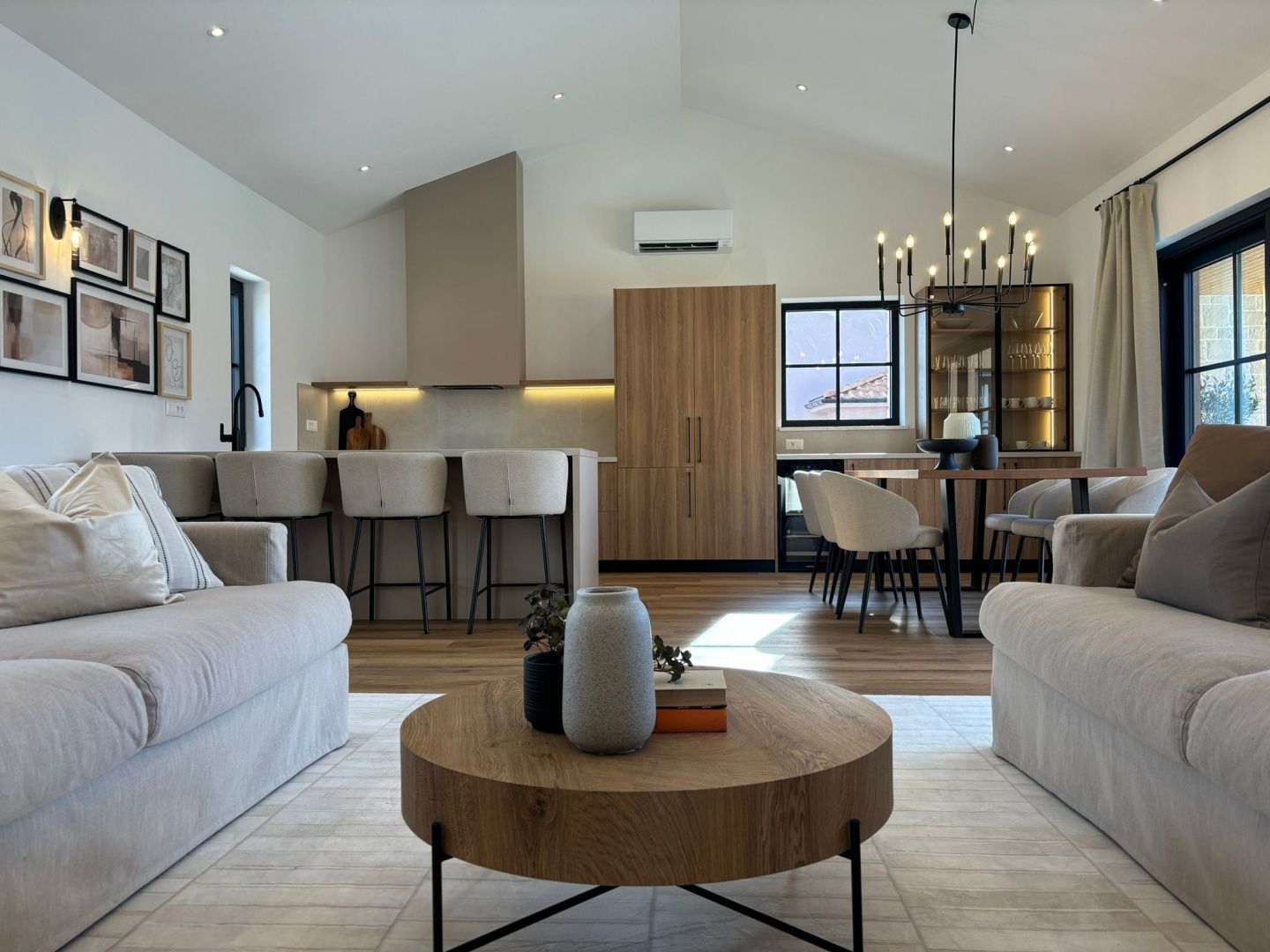 ISTRIEN, ŽMINJ – Ein traumhaftes Einfamilienhaus in einer privaten Anlage! DUX Real Estate präsentiert ein traumhaftes Einfamilienhaus mit erstklassiger Ausstattung! Dieses neu erbaute Haus befindet sich in ruhiger Lage, nur 5 Autominuten vom Zentrum von Žminj entfernt! Das Haus besticht durch ein offenes Raumkonzept mit exzellenter Raumaufteilung und einem großzügigen, fließend ineinander übergehenden Wohnbereich, der Wohnzimmer, Küche und Esszimmer miteinander verbindet. Zwei Schlafzimmer mit jeweils eigenem Bad, eines davon mit begehbarem Kleiderschrank, ein Hauswirtschaftsraum und ein Gäste-WC runden das Angebot ab. Wir laden alle Interessenten herzlich zu einer Besichtigung ein. Das wunderschöne, rustikal-moderne Interieur sorgt für ein ganz besonderes Ambiente. Das Haus wird möbliert verkauft. 90 % der Möbel wurden exklusiv für dieses traumhafte Einfamilienhaus maßgefertigt. Warum betonen wir immer wieder das Wort „traumhaft“? Weil dieses Haus wirklich etwas ganz Besonderes ist. Das Hausprojekt selbst und die Funktionalität der Räume heben sich deutlich von vielen anderen Immobilien auf dem Markt ab. Die Einrichtung wird sowohl Liebhaber des rustikalen als auch des modernen Stils begeistern und Ihnen gleichzeitig ein Gefühl von istrischem Flair vermitteln! Überzeugen Sie sich selbst! Für wohlige Wärme und Kühlung sorgt eine Fußbodenheizung im gesamten Haus, und selbstverständlich ist auch eine Klimaanlage vorhanden! Der Garten bietet alles, was Sie brauchen, ohne dass Sie viel Zeit und Geld in die Pflege investieren müssen. Es gibt einen Swimmingpool, eine Sonnenterrasse und eine überdachte Terrasse mit Sommerküche, deren Gestaltung sich harmonisch in das Gesamtkonzept des Anwesens einfügt. Zwei Parkplätze stehen zur Verfügung. Das Erdgeschoss ist umgeben von anderen Neubauten und Natur! Ein sicheres Zuhause! Wir stehen Ihnen für alle weiteren Fragen und die Organisation von Besichtigungen gerne zur Verfügung! Liebe