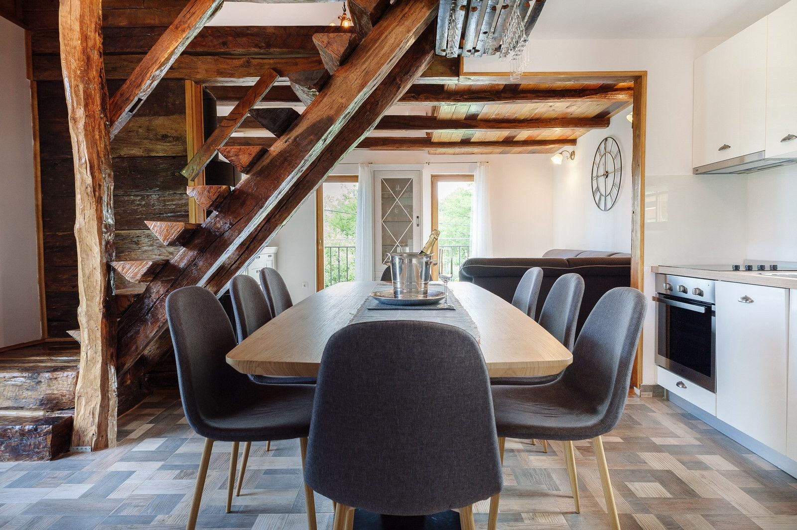 KARLOVAC, BARILOVIĆ – Privates Paradies am Fluss Korana, zwei Häuser und ein privater Wellnessbereich inmitten der Natur, 218 m² Zum Verkauf steht ein einzigartiges Anwesen am Fluss Korana, in ruhiger, grüner Lage unweit von Karlovac. Auf einer Gesamtfläche von 1.785 m² trifft hier die Tradition alter Eichenholzbauten auf modernen Komfort. Das Grundstück besteht aus authentischen, über hundert Jahre alten Holzhäusern, die sorgfältig renoviert wurden, um ihren ursprünglichen Charakter zu bewahren und gleichzeitig einen modernen Wohnstandard zu bieten. Jeder Bereich ist mit Blick auf Privatsphäre, die natürliche Umgebung und eine angenehme Atmosphäre am Fluss gestaltet. Das Haupthaus mit einer Fläche von ca. 116 m² ist für die touristische Vermietung zugelassen und erstreckt sich über Keller, Erdgeschoss und Dachgeschoss. Im Keller (24 m²) befinden sich ein Gemeinschaftsraum mit Billard und Dartscheibe, eine Heizungsanlage und eine Waschmaschine. Das Erdgeschoss (52 m²) besteht aus einem Wohnzimmer mit angrenzender Küche, einem Schlafzimmer, einem Badezimmer und einem zusätzlichen WC. Der Wohnbereich öffnet sich zu einer großzügigen, 25 m² großen, unüberdachten Terrasse mit Blick auf den Fluss Korana, der sich ebenfalls im Erdgeschoss befindet. Das Dachgeschoss (40 m²) beherbergt zwei Schlafzimmer, eine Galerie, einen Flur und eine Treppe. Das Haus verfügt über eine elektrische Zentralheizung, einen offenen Kaminofen, eine Klimaanlage und eine WLAN-Steuerung für Heizung und Kühlung. Das zweite Haus ist ca. 54 m² groß und erstreckt sich über zwei Etagen. Im Erdgeschoss (30 m²) befinden sich ein Wohnzimmer, eine Wohnküche und ein Badezimmer, während sich im Obergeschoss zwei je 12 m² große Schlafzimmer befinden. Eine große, 25 m² große, überdachte Terrasse, die ganzjährig zum Verweilen im Freien einlädt, sorgt für eine besondere Atmosphäre. Beheizt wird das Haus mit einem Pelletkamin, Klimaanlage und WLAN-Steuerung. Zusätzlich gibt es ein separates, ca. 14 m² großes Spa-Haus aus Holz mit Sauna, Whirlpool und Badezimmer, das einen privaten Wellnessbereich inmitten der Natur schafft. Der Garten bietet darüber hinaus Annehmlichkeiten wie einen überdachten gemauerten Grillplatz (24 m²), eine Sommerküche (4 m²), einen Abstellraum (6 m²) und mehrere Parkplätze. Zum Verkauf gehört auch die Hälfte des angrenzenden Grundstücks am Fluss Korana mit einer Gesamtfläche von 1.903 m² (851,5 m² Eigentumsfläche). Hier befinden sich weitere Parkplätze, ein Spielplatz, ein Strandhaus, ein Privatstrand mit Floß und Steg. Diese Immobilie ist eine seltene Gelegenheit auf dem Markt. Beide Häuser sind an die Kanalisation angeschlossen und komplett für Wohnzwecke und die touristische Vermietung ausgestattet. Das bestehende Vermietungsgeschäft ist mit ca. 200 Übernachtungen pro Jahr bereits gut etabliert, sodass der neue Eigentümer es ohne zusätzliche Investitionen weiterführen kann. Dieses Anwesen ist mehr als nur ein Wohnort – es ist eine kleine Welt, in der die Natur den Rhythmus des Tages bestimmt. Die Morgenstunden am Fluss Korana beginnen ruhig mit dem Spiegelbild des Wassers und dem Duft des Waldes, während Karlovac, bekannt für seine Flüsse, schnell zu erreichen ist. Die Nähe zu Zagreb ermöglicht eine schnelle Anreise, ohne dass das Gefühl der Abgeschiedenheit verloren geht – wie in einem verborgenen Winkel, wo die Zeit langsamer vergeht und die Natur ihre eigene Geschichte erzählt. Sehr geehrte Kaufinteressenten, wir freuen uns über Ihr Interesse an den Immobilien in unserem Angebot. Für weitere Informationen und zur Vereinbarung eines Besichtigungstermins kontaktieren Sie uns bitte. Eine Besichtigung ist nur nach Unterzeichnung eines Maklervertrags möglich.