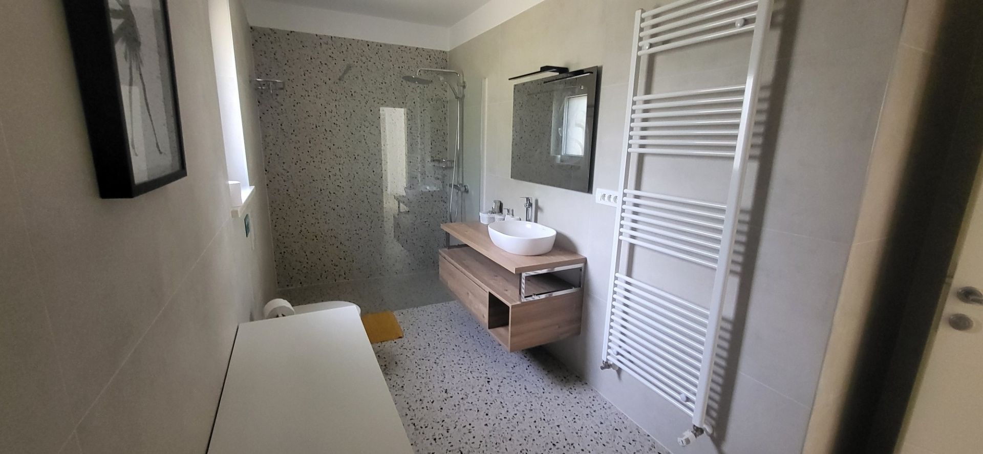 KOSTRENA – Wohnung zur Langzeitmiete Diese Zweizimmerwohnung in Kostrena ist ideal für alle, die eine ruhige Umgebung in Meeresnähe genießen möchten. Die Wohnung besteht aus einem geräumigen Wohnzimmer, einer Küche und einem Essbereich, die einen offenen Wohnbereich bilden und so für ein helles und luftiges Ambiente sorgen. Vom Wohnzimmer aus gelangt man auf einen Balkon mit herrlichem Meerblick – der perfekte Ort, um den Morgenkaffee zu genießen oder den Sonnenuntergang zu bewundern. Eine Außentreppe führt zu einem privaten Pool, der das luxuriöse Flair der Wohnung unterstreicht und zum Sonnenbaden und Entspannen einlädt. Die Wohnung verfügt über zwei komfortabel eingerichtete Schlafzimmer und zwei Badezimmer, was das Wohnen hier besonders praktisch und komfortabel macht. Eines der Schlafzimmer hat einen eigenen Balkon, ideal für Momente der Ruhe. Neben einem Hauswirtschaftsraum und einem Abstellraum ist die Wohnung komplett ausgestattet und möbliert und sofort bezugsfertig. Eine Klimaanlage sorgt für angenehme Temperaturen das ganze Jahr über. Vor dem Haus befindet sich ein privater Parkplatz, und es gibt zusätzliche Gästeparkplätze. Diese Wohnung bietet einen hohen Wohnstandard in ruhiger Lage. Dank der Nähe zu allen wichtigen Einrichtungen und der reizvollen Natur ist sie die perfekte Wahl zur Miete. ****