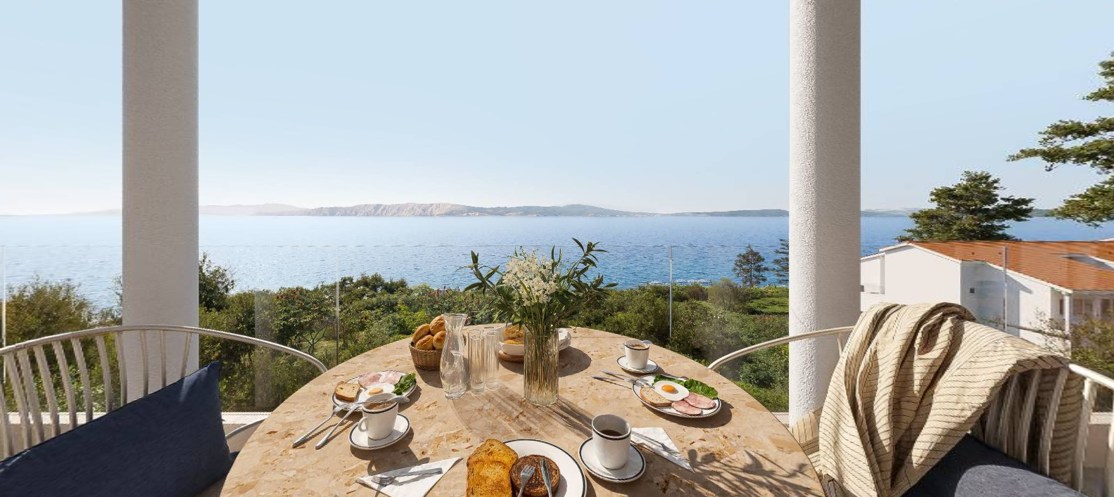 NOVI VINODOLSKI – Penthouse in erster Strandreihe mit Hoteleinrichtungen DUX präsentiert exklusiv ein einzigartiges Luxus-Resort in Novi Vinodolski, in erster Strandreihe gelegen. Der Strand ist exklusiv für die Eigentümer reserviert, und die Hoteleinrichtungen bieten ein rundum mediterranes Erlebnis. Das luxuriöse Penthouse befindet sich im zweiten Stock der Residenz A und bietet eine Wohnfläche von 142 m². Herzstück des Penthouses ist ein großzügiger, offener Wohnbereich mit Küche und Essbereich. Von hier aus gelangt man auf eine geräumige Terrasse. Vom Eingangsbereich aus erreicht man zwei Schlafzimmer, jeweils mit eigenem Bad. Das Hauptschlafzimmer besticht durch direkten Zugang zum Balkon, während das zweite Schlafzimmer denselben Komfort und dieselbe Privatsphäre bietet. Das Penthouse verfügt außerdem über ein Gäste-WC und einen Abstellraum. Die Inneneinrichtung erfolgt nach den Vorgaben des Verkäufers und wird pauschal abgerechnet. Die komplette Möblierung obliegt dem Investor. Darüber hinaus bietet das Resort zahlreiche Annehmlichkeiten, die den Lebensstandard deutlich erhöhen. Es gibt drei Swimmingpools mit Lounge-Bereichen, ein Wellness- und Spa-Center, Restaurants und Bars sowie weitere Einrichtungen wie einen Tennisplatz, einen Indoor-Spielplatz und einen Wasserpark für die Kleinsten. Die Eigentümerlounge verfügt über zwei Padelplätze. Zusätzlich stehen Ihnen À-la-carte-Services zur Verfügung, darunter Wäscheservice, Lebensmittellieferung, Auto- oder Bootsvermietung, Ausflugsbuchungen, Personal Trainer, Massagen in der Residenz und Babysitter-Service. Mit dem Kauf einer Residenz erhalten Sie außerdem eine exklusive Mitgliedschaft im Accor Ownership Benefits Programm mit VVIP-Status und zahlreichen Vorteilen. Für die Nutzung der Einrichtungen innerhalb dieser exklusiven Anlage zahlt der zukünftige Eigentümer eine jährliche Pauschalgebühr, die die Nutzung aller Gemeinschaftseinrichtungen und die regelmäßige Instandhaltung der Anlage umfasst. Dienstleistungen wie Außenreinigung, Gartenpflege und Bewässerungsanlage sind in der genannten Gebühr enthalten, sodass die Eigentümer den hohen Lebensstandard dieser Anlage unbeschwert genießen können. Das Resort verfügt über eine private Tiefgarage mit 450 Stellplätzen, davon 304 für Eigentümer reserviert, sowie 10 Ladestationen für Elektrofahrzeuge. Ein Stellplatz kann für 25.000 € erworben werden; alternativ ist eine monatliche/jährliche Anmietung möglich. Für einen Besichtigungstermin oder weitere Informationen wenden Sie sich bitte an einen unserer vertrauenswürdigen Makler. Beratungen sind auch auf Deutsch möglich.