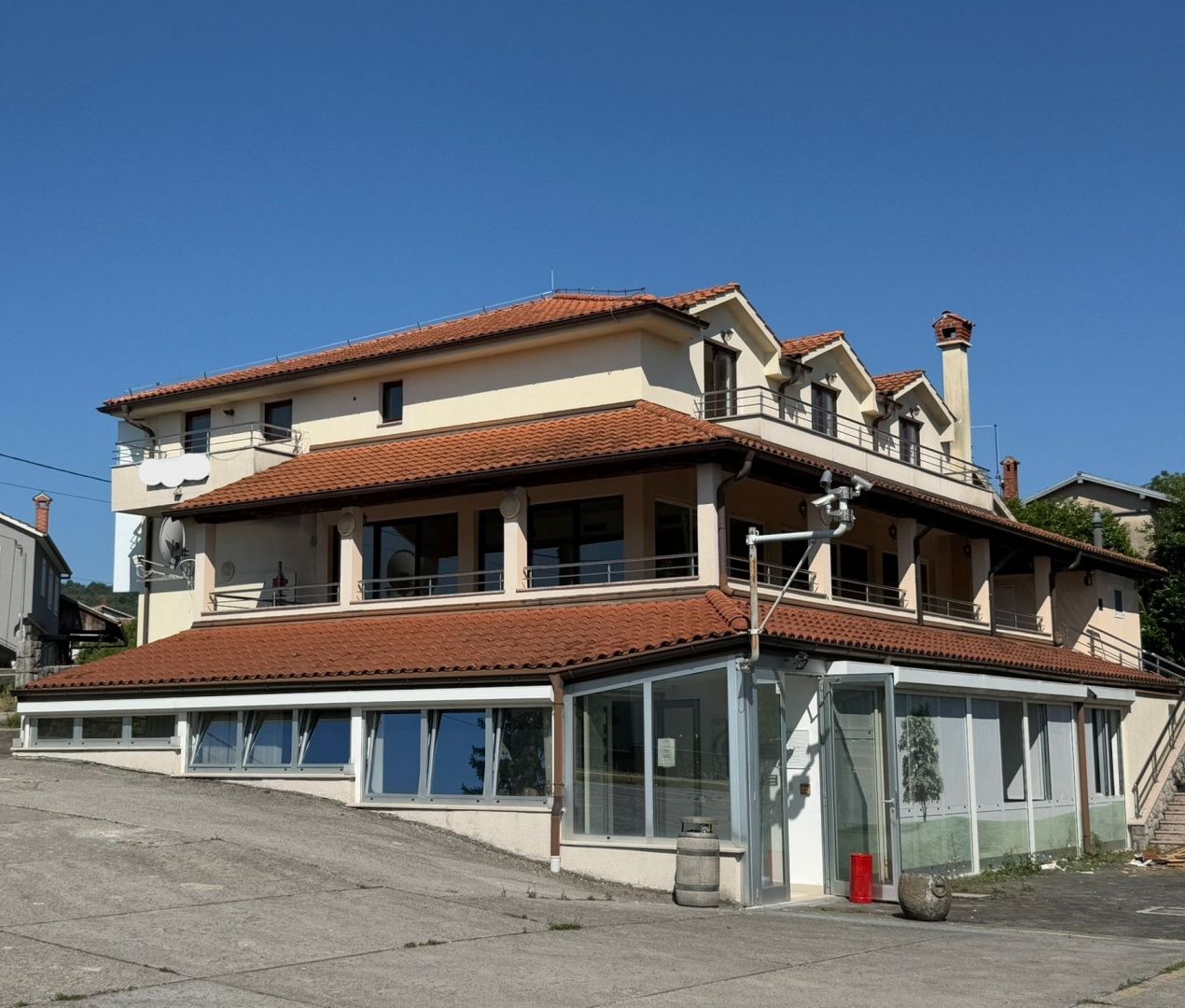 MATULJI, ŠAPJANE – Freistehendes Haus (Gewerbeimmobilie 780 m²) + 3.484 m² Garten! Gelegenheit! Das freistehende Haus (Gewerbeimmobilie) besteht aus einem Keller, Erdgeschoss, Obergeschoss mit 9 Zimmern und einem großzügigen Garten von 3.484 m². Großes Potenzial für vielfältige Nutzungen! Allein im Untergeschoss wurden über 350.000 Euro investiert (8 Büros, Büroräume, Computerraum, Sterilisation, kilometerlange Verkabelung und Elektrik, externe Klimaanlage und Heizung, elektrische Sicherheitsrollläden und Alarmanlage, Serverraum usw.). Parkplätze für zahlreiche Fahrzeuge. Das Objekt befindet sich in Šapjane, einem Ortsteil der Gemeinde Matulji. Das Grundstück liegt an der Hauptstraße, umgeben von Wohnhäusern und Wald. Der Busbahnhof befindet sich in unmittelbarer Nähe. Parkmöglichkeiten stehen auf dem eigenen, großen und gepflegten Parkplatz zur Verfügung. Laut vorliegenden Daten besteht am Standort keine Gefahr von Umweltverschmutzung. Das Objekt ist ein Bürogebäude mit Hof und Parkplatz, das eine harmonische Einheit bildet. Das Gebäude beherbergt im Untergeschoss eine Praxis, im Erdgeschoss ein Restaurant mit Küche und allen dazugehörigen Räumen sowie im ersten Obergeschoss Zimmer und Wohnungen. Zusätzliche Sanitäranlagen befinden sich im Hofgebäude. Das Objekt ist direkt von der Straße aus zugänglich und liegt in einem dicht besiedelten Stadtteil. Baujahr: 2009 Etagen: EG + 1. Obergeschoss Eigentumswohnung, Betriebsgenehmigung, Energieausweis vorhanden. IMMOBILIE IN HERVORRAGENDER UND EINZIGARTIGER LAGE MIT GROSSEM POTENZIAL!!! Nutzen Sie diese seltene Gelegenheit!