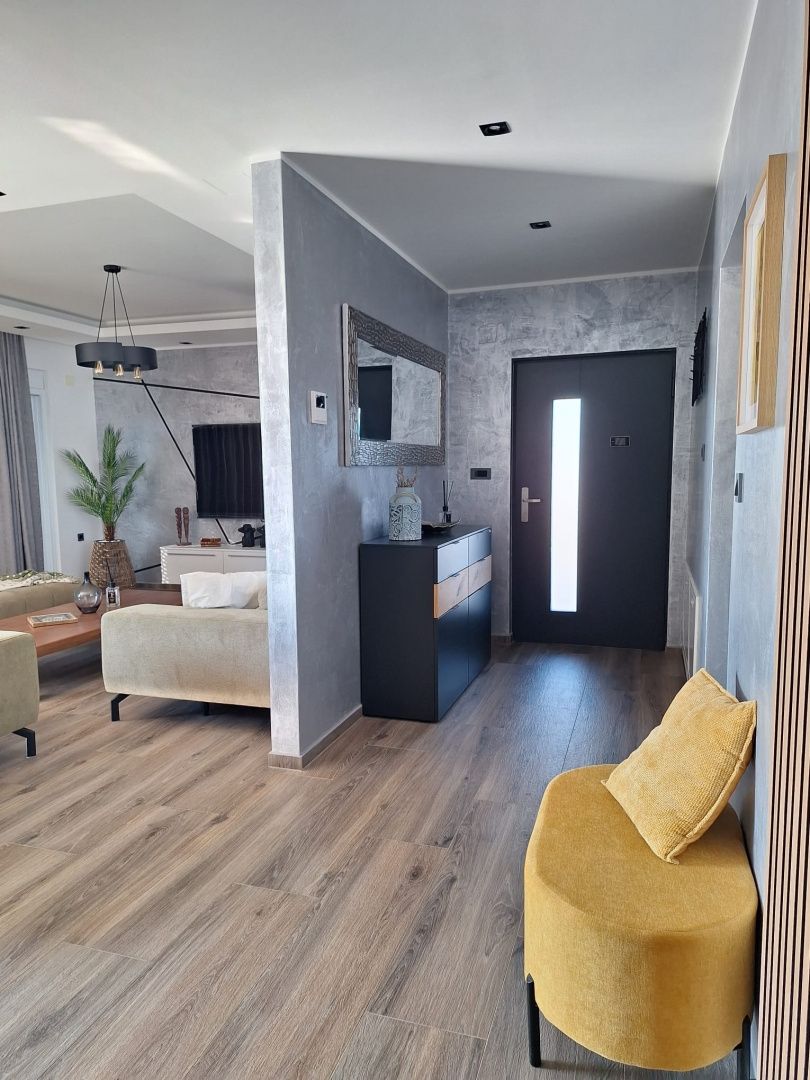 NOVI VINODOLSKI – Luxusvilla mit Pool und Meerblick, nur 300 m vom Meer entfernt Wir bieten eine luxuriöse Villa mit Pool und atemberaubendem Meerblick in Novi Vinodolski zum Verkauf an. In exzellenter Lage und ruhiger Umgebung, nur 300 Meter vom Meer entfernt, bietet dieses beeindruckende Anwesen die perfekte Balance aus Privatsphäre, Komfort und mediterranem Lebensstil. Die Villa verfügt über eine Gesamtfläche von 391,72 m² und erstreckt sich über drei Etagen – Erdgeschoss, erster und zweiter Stock. Sie ist modern und luxuriös ausgestattet und mit hochwertigen Materialien und sorgfältig ausgewählten Details eingerichtet. Aufteilung: Erdgeschoss – Sauna – Fitnessraum – Heizraum – Abstellraum Erster Stock – moderne offene Küche mit Ess- und Wohnbereich – Schlafzimmer mit eigenem Bad – zusätzliches Badezimmer – zusätzlicher Raum – Loggia – großzügige Terrasse mit herrlichem Meerblick Zweiter Stock – vier Schlafzimmer, jeweils mit eigenem Bad – große Terrasse mit freiem Meerblick Die Villa ist von einem sorgfältig angelegten Garten umgeben, der absolute Privatsphäre bietet. Vor der Villa befinden sich ein 29 m² großer Swimmingpool und ein Kinderspielplatz. Olivenbäume verleihen dem Garten ein authentisch mediterranes Flair. Das Anwesen verfügt außerdem über zwei überdachte Parkplätze. Die Beheizung erfolgt über eine Wärmepumpe und eine Klimaanlage. Die Bodenbeläge sind aus hochwertigem Brač-Stein gefertigt, was die Eleganz und Langlebigkeit der Villa unterstreicht. Die Villa wird komplett möbliert verkauft. Diese Immobilie ist die ideale Wahl für Käufer, die Wert auf hochwertige Bauweise, Luxus und außergewöhnliches Investitionspotenzial legen – ob für ganzjähriges Wohnen oder die exklusive touristische Vermietung. Für weitere Informationen und zur Vereinbarung eines Besichtigungstermins kontaktieren Sie bitte den Makler.