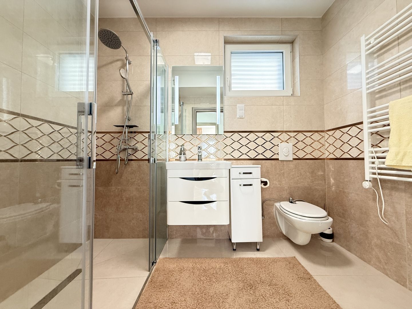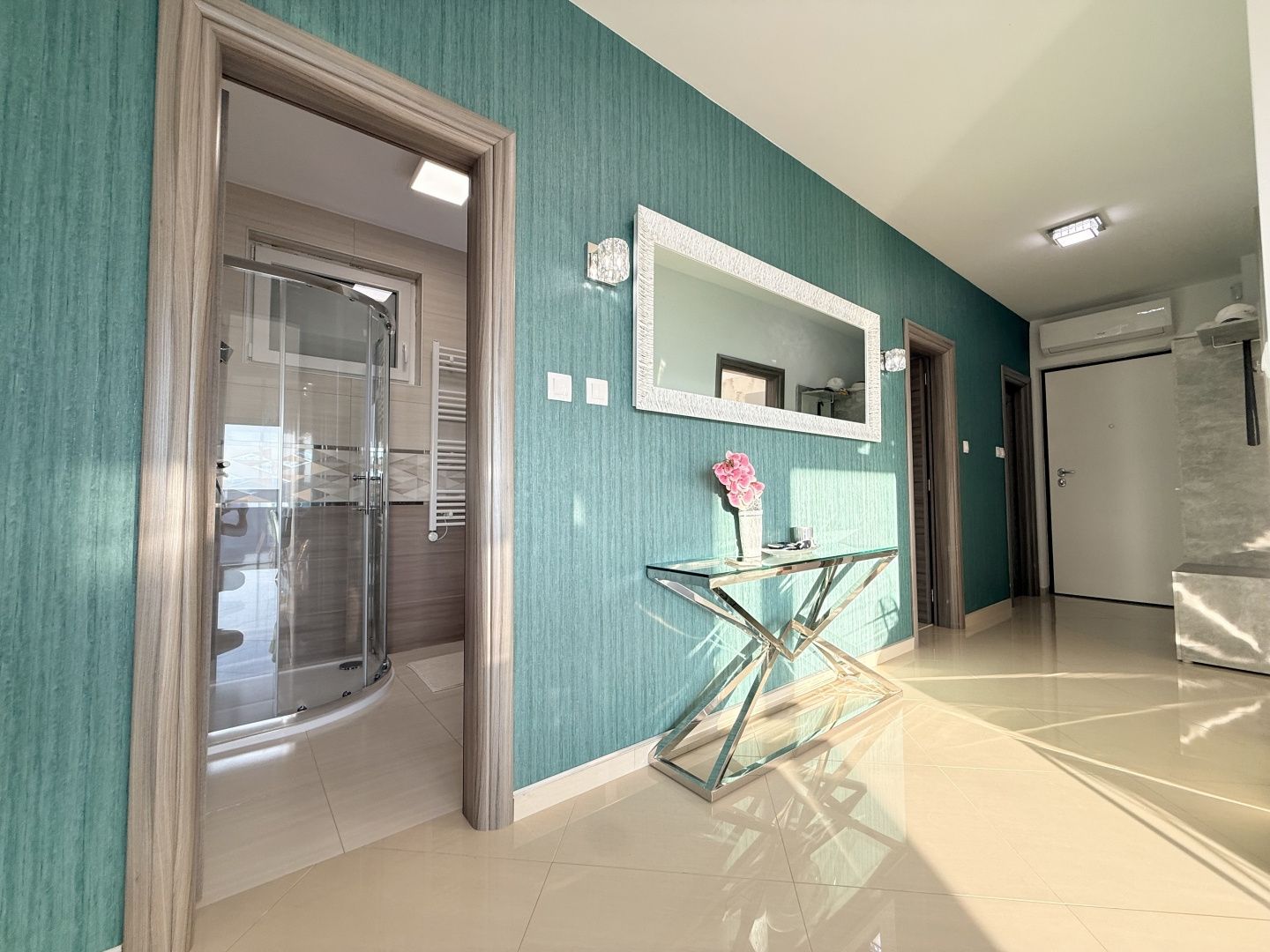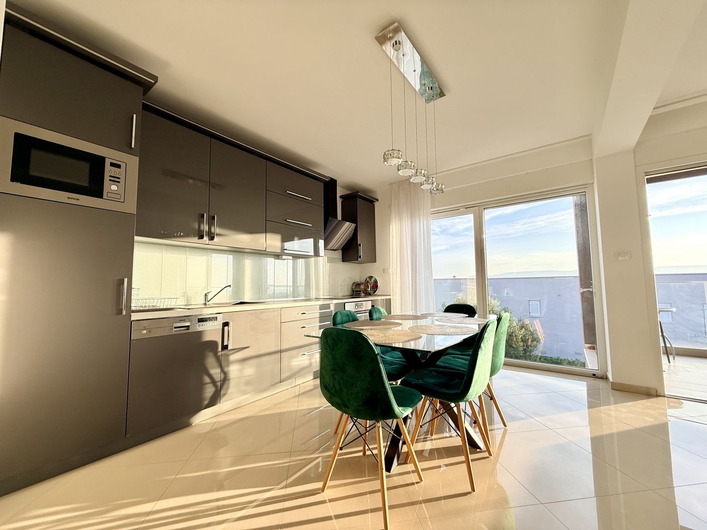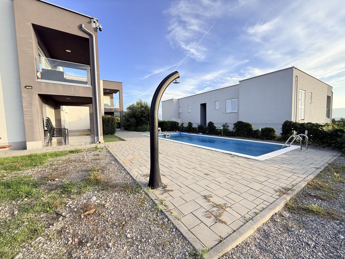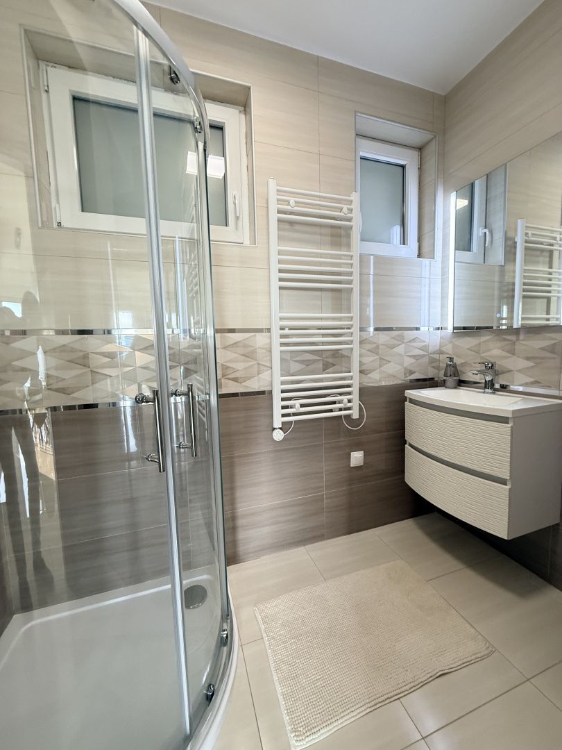NOVI VINODOLSKI, UMGEBUNG – moderne Wohnung 2. Reihe zum Meer mit Swimmingpool, Parkplatz und Gemeinschaftsgarten Die Wohnung liegt im 1. Stock eines Neubaus und besteht aus Küche, Ess- und Wohnzimmer (28,95 m²), zwei Schlafzimmern (13,21 m² und 11,10 m²), Bad (12,33 m²), Flur (9,42 m²) und Abstellraum (2,65 m²). Die Gesamtfläche der Wohnung beträgt 87,10 m². Die Wohnung wird komplett möbliert verkauft, mit dazugehörigem Außenparkplatz. Sie ist Teil eines Neubaus mit insgesamt vier Wohneinheiten. Das Gebäude verfügt über einen gemeinschaftlichen Swimmingpool und einen angelegten Garten zur Nutzung durch alle Mieter. Das Anwesen liegt nur 200 Meter vom Meer entfernt, was bedeutet, dass die Strände in nur wenigen Minuten bequemen Spaziergangs auf flachem Gelände erreichbar sind. Die ruhige Mikrolage, umgeben von Natur, ist ideal für einen Urlaub, aber auch für einen längeren Aufenthalt. Bei jeder Besichtigung der Immobilie ist die Unterzeichnung eines Maklervertrags obligatorisch.