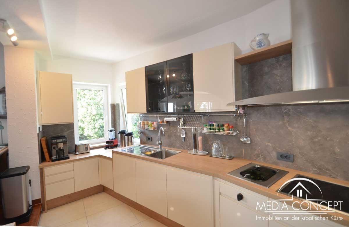 OPATIJA, BREGI – Villa mit Panoramablick auf das Meer und großem Garten! GELEGENHEIT! Die Familienvilla liegt oberhalb von Opatija und bietet einen wunderschönen Panoramablick auf die gesamte Kvarner Bucht. Sie wurde 2001 mit hochwertigsten Baumaterialien erbaut. Die Villa hat eine Nettowohnfläche von 380 m2 und verteilt sich auf drei Etagen. Das Erdgeschoss verfügt über einen geräumigen Geschäftsraum, eine Sommerküche, ein Dampfbad, eine Werkstatt und einen Heizraum. Auf Wunsch des Käufers kann diese Etage in eine separate Wohneinheit umgewandelt werden. Im Bereich, in dem sich das Büro befindet, besteht die Möglichkeit, ein weiteres Badezimmer zu schaffen, da die Installationen bereits vorhanden sind. Die Seele der Immobilie ist auf jeden Fall ein großes Wohnzimmer mit Kamin, Küche und Esszimmer im ersten Stock. Zusätzlich zu den oben genannten Räumen verfügt diese Etage auch über eine Gästetoilette, einen Abstellraum und ein Schlafzimmer mit eigenem Badezimmer. Im zweiten Stock befinden sich zwei Schlafzimmer, beide mit eigenem Badezimmer, von denen eines mit einer Dusche und das andere mit einer Whirlpool-Massagebadewanne ausgestattet ist. Ein Kleiderschrank aus massiver Eiche und eine Bibliothek vervollständigen diese Etage. Alle Zimmer des Hauses haben Zugang zu Balkonen, die sich über die gesamte Breite des Hauses erstrecken. Die Böden in Wohnzimmer, Küche und Badezimmern bestehen aus spanischer und italienischer Keramik höchster Qualität, während die Treppen mit Granit und einem schmiedeeisernen Geländer bedeckt sind. Die Heizung erfolgt zentral mit Heizöl. Alle Keramikböden haben eine zusätzliche Fußbodenheizung. Solarmodule auf dem Dach dienen zur Warmwasserbereitung. Mit einem Whirlpool, einem Hösch-Dampfbad, modernsten Gagenau-Küchengeräten, Innentüren aus massiver Eiche sowie einem Einbauschrank, schmiedeeisernen Geländern und anderer hochwertiger Ausstattung werden alle Anforderungen an modernes Wohnen erfüllt. Das 1.191 m2 große Grundstück ist kultiviert und gepflegt, während der Rest Grüngürtel und Wald ist. Es gibt mehr als genug Platz, um einen Swimmingpool zu bauen! Parkplätze befinden sich hinter der Villa. Von allen Wohn- und Schlafzimmern bietet sich ein wunderschöner Blick auf Opatija, Rijeka, das Meer und den Archipel. Das Haus ist nach Süden ausgerichtet und daher den ganzen Tag sonnig. Ausgezeichnete Immobilie in friedlicher und ruhiger Lage. Diese Immobilie ist nur ca. 1,07 km Luftlinie vom Meer entfernt! Eigentumsverhältnisse klar. IMMOBILIE IN AUSGEZEICHNETER UND EINZIGARTIGER LAGE MIT GROSSEM POTENZIAL! Sicherlich eine Immobilie für das Familienleben, aber auch als Investition in den Tourismus geeignet. Seien Sie einen Schritt voraus und nutzen Sie diese seltene Gelegenheit! OPATIJA: Opatija, eine wunderschöne Küstenstadt an der Adria, ist ein beliebtes Reiseziel für Touristen aus aller Welt. Die Stadt liegt inmitten wunderschöner Natur am Fuße des Berges Učka. Immobilien in Opatija bieten einen unbezahlbaren Blick auf das Meer und die umliegenden Inseln Krk und Cres. Opatija ist umgeben von charmanten Kleinstädten mit alten Häusern in engen, geschichtsträchtigen Gassen. Die Straßen der Stadt Opatija sind geprägt von Immobilien, die sich durch ihre besondere Architektur und Villen aus der Habsburgerzeit auszeichnen. Eine große Auswahl an Stränden, kristallklares Meer und ein vielfältiges touristisches Dienstleistungsangebot sind Schlüsselfaktoren, die Opatija zu einem idealen Reiseziel machen, das auch in den Nachbarländern als hervorragende Investitionsmöglichkeit gilt. Die Immobilienpreise in dieser Gegend steigen, die Mietauslastung ist ausgezeichnet, was zu einer Kapitalrendite von 5 bis 10 % geführt und ausländische Investoren angezogen hat.
