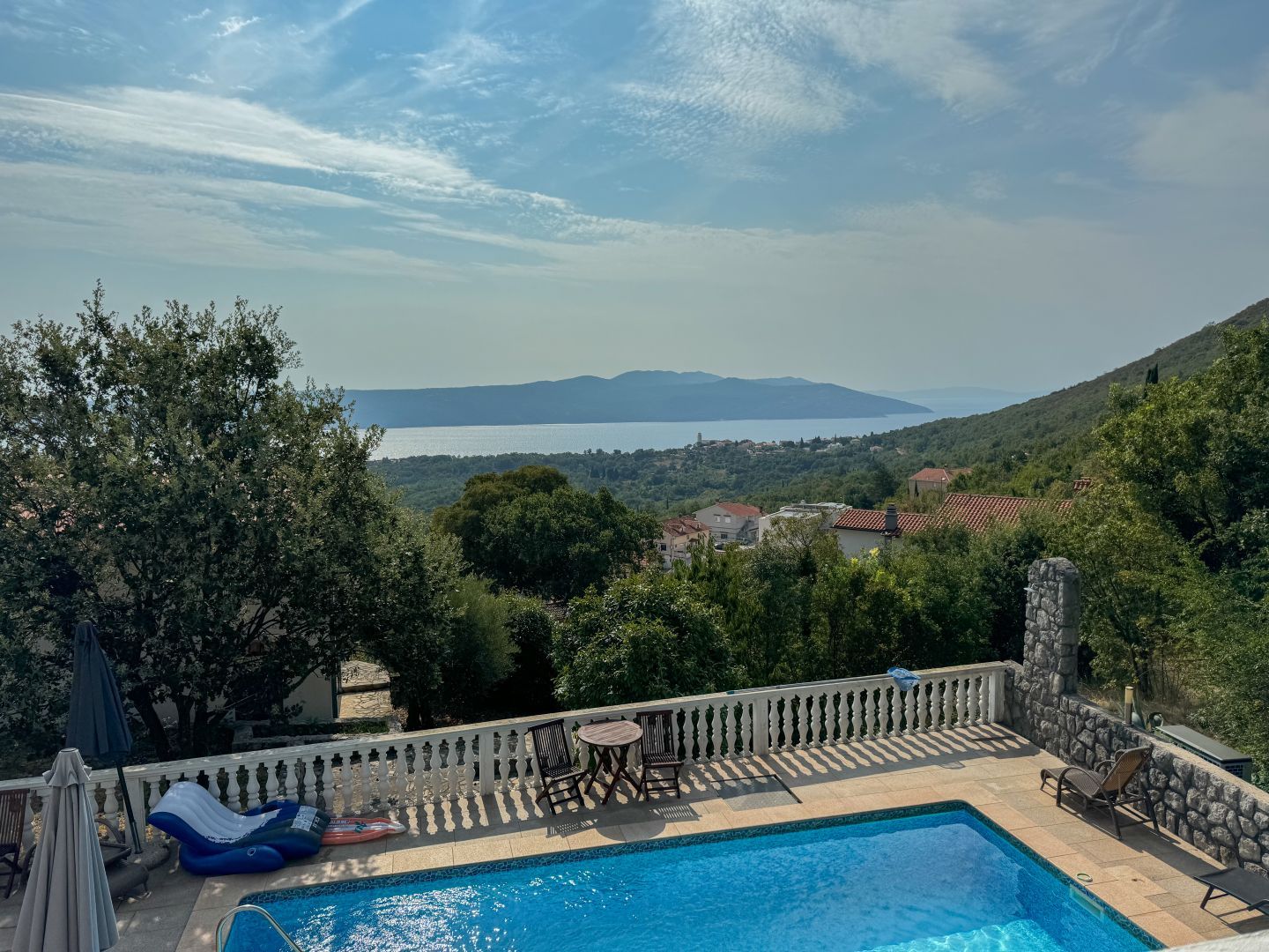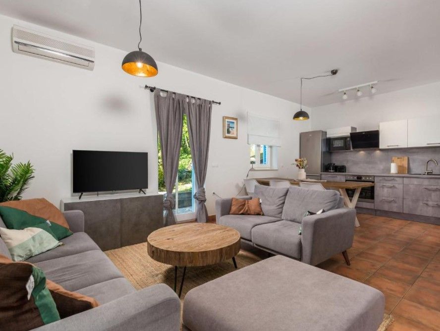 OPATIJA, BRSEČ – zwei wunderschöne Doppelhaushälften mit Pool und Meerblick in einer Oase der Ruhe Zum Verkauf stehen zwei Doppelfamilienvillen mit Swimmingpool in Martina, nur 5 Autominuten vom Strand Brseč entfernt. Jede geräumige Villa verfügt über 3 Schlafzimmer, 2 Badezimmer, ein schönes und warmes offenes Wohnzimmer mit einer voll ausgestatteten Küche und einem Esszimmer. Auf der Terrasse, die von der Küche aus zugänglich ist, können Sie in aller Ruhe mit Blick auf das Meer speisen – sicherlich ein besonderes Erlebnis. Für zusätzliche Privatsphäre verfügt die Unterkunft über einen eigenen Eingang. Die Villen zeichnen sich sowohl durch ihre wunderschöne mediterrane Architektur als auch durch ihren unglaublichen Panoramablick auf die Insel Cres, das Blau der Adria und die Aussicht auf die sie umgebenden Berge aus. Ruhe, Grün und eine unglaubliche Aussicht zeichnen diese beiden Villen aus, die der perfekte Ort zum Leben und Entspannen sind. Die Häuser sind von ihren Nachbarn isoliert und auf der rechten Seite befindet sich ein Wald. Ein Vorbau ist nicht möglich, da ein Teil des Miteigentums in der Grünzone unterhalb des Hauses ebenfalls ins Eigentum übergeht. Jede Villa hat 150 m² und erstreckt sich über zwei Etagen, wobei sich im Obergeschoss zwei Schlafzimmer und zwei Badezimmer befinden. Außerdem verfügt jedes Zimmer über eine Klimaanlage und jedes Haus über einen Kamin, was jedem Haus einen besonderen Charme verleiht. Sie befinden sich in Martina, 3 km vom Strand Brseč, 2 Minuten vom Geschäft, 41 km von der Burg Pazin, 11 km von Mošćenička Draga und 24 km von Opatija entfernt. Es ist eine perfekte Gelegenheit, Doppelhaushälften in der Nähe von Mošćenička Draga, Lovran und Opatija in einer ruhigen Siedlung zu kaufen. Sie sind nicht nur ideal für das Familienleben, sondern können auch eine ideale touristische Investition darstellen.