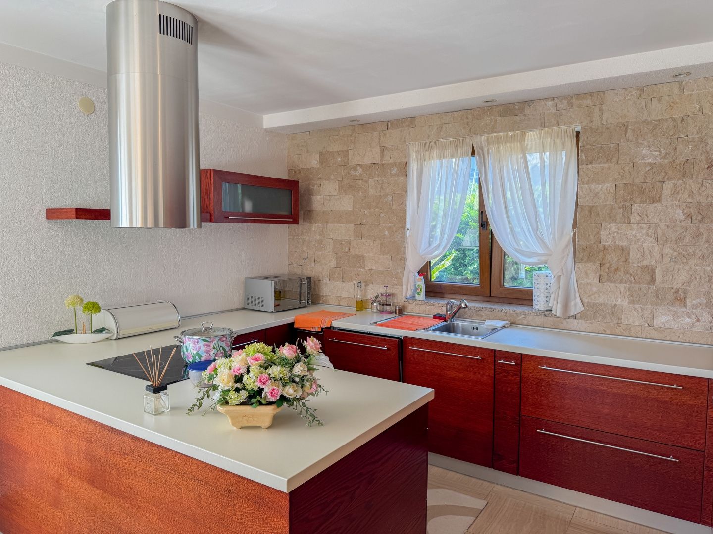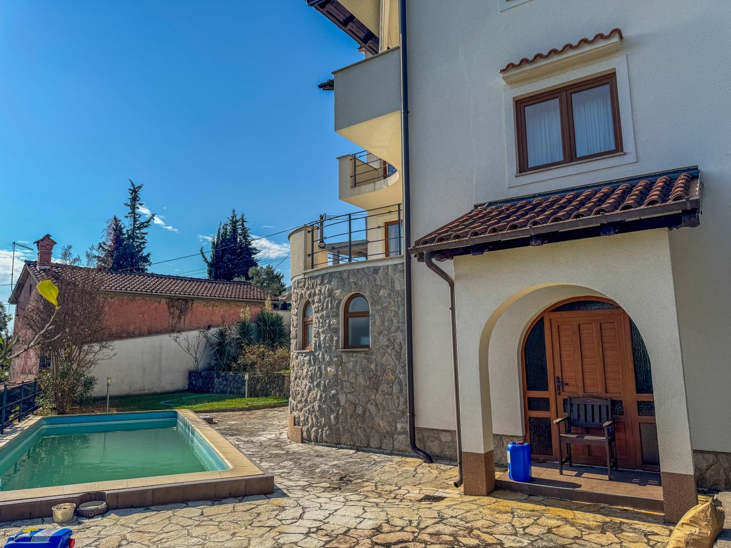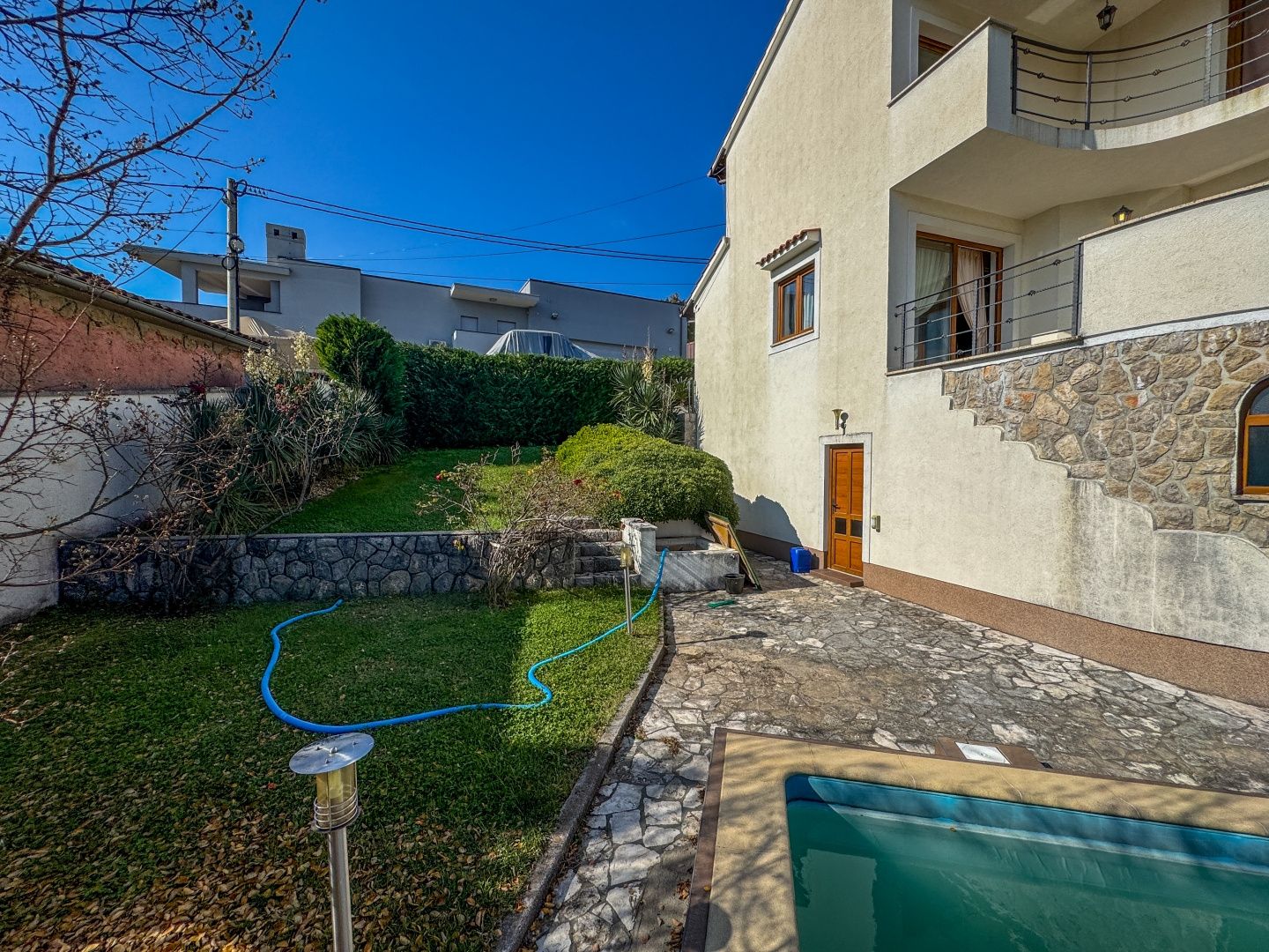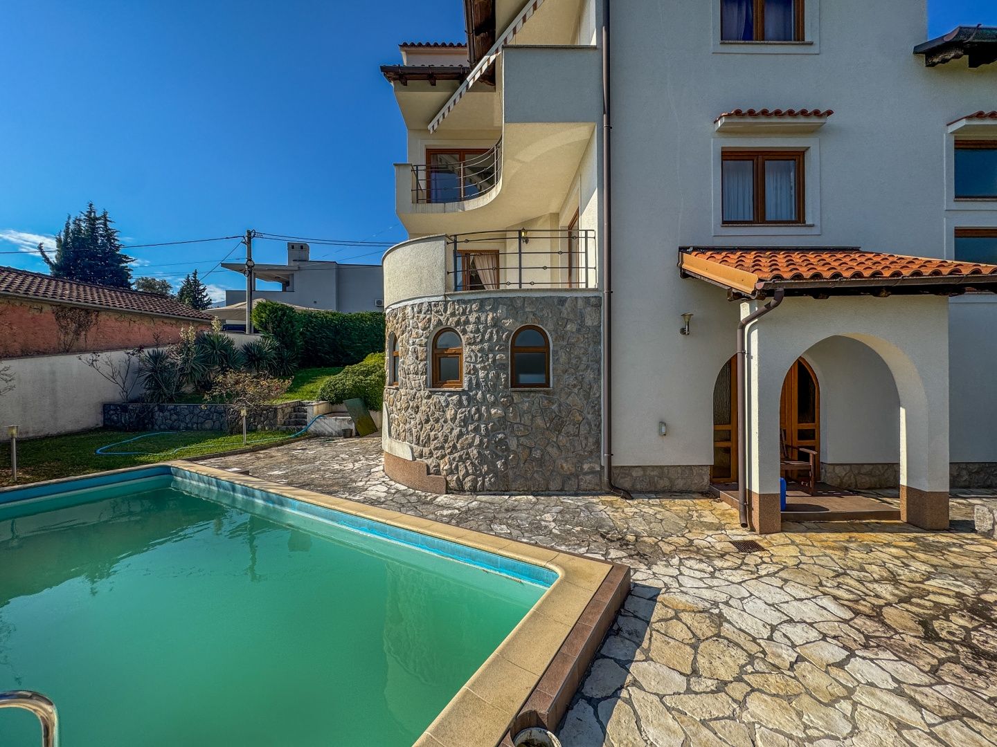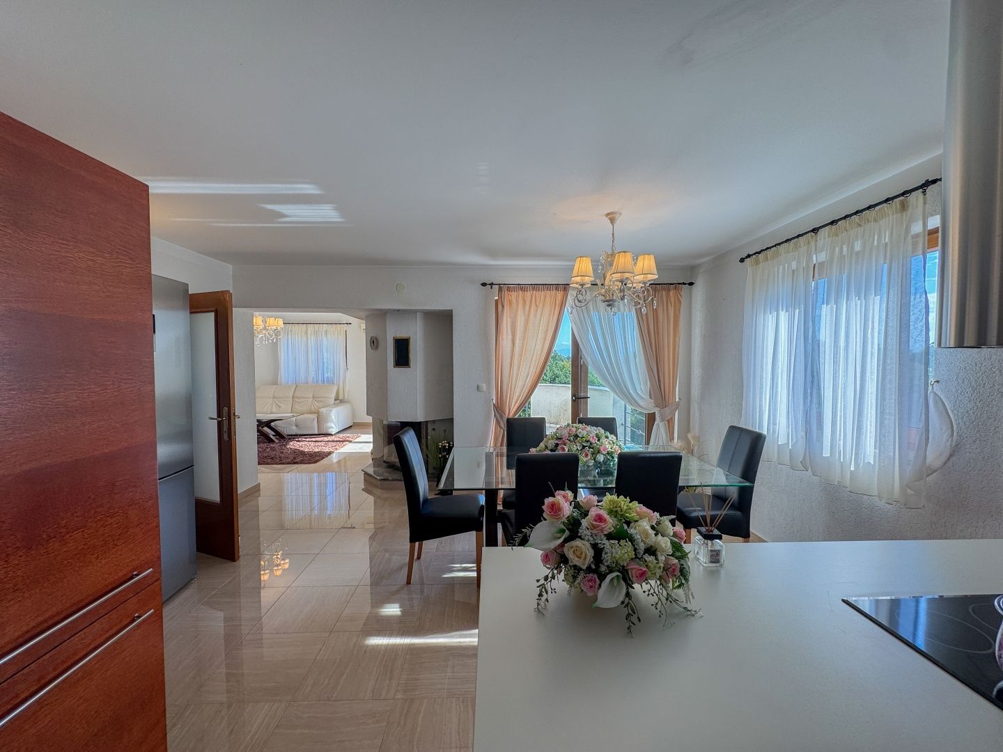 OPATIJA – Freistehendes Haus mit Pool, hochwertigem Garten, Privatsphäre und traumhaftem Meerblick DUX bietet Ihnen eine hervorragende Gelegenheit, ein Familienhaus zu erwerben. Dieses fantastische, freistehende Haus aus Neubau erstreckt sich über drei Etagen. Es umfasst einen wunderschönen, 624 m² großen Garten, auf dem sich ein Haus mit zwei Wohneinheiten befindet. Die größere Wohnung, die sich über zwei Etagen erstreckt, bietet großzügige Flure, geräumige Zimmer, ein offenes Wohnzimmer mit Zugang zur Terrasse sowie mehrere Schlafzimmer im ersten Stock, die ebenfalls über eine Terrasse mit Meerblick verfügen. Im Erdgeschoss befindet sich eine separate Wohnung mit zwei Schlafzimmern, die vielseitig nutzbar ist. Das Haus verfügt über elektrische Fußbodenheizung, Klimaanlage in fast allen Räumen und die Vorbereitung für eine Zentralheizung. Es ist ein Neubau und in exzellentem Zustand. Die Möbel sind ebenfalls in gutem Zustand, werden aber vom zukünftigen Eigentümer sicherlich modernisiert. Das Haus liegt nur sechs Autominuten vom Strand von Ičići entfernt in einer ruhigen Sackgasse ohne Verkehr, was absolute Privatsphäre und Ruhe garantiert. Das Haus ist von Wald umgeben und bietet einen wunderschönen Meerblick. Die Fahrt ins Zentrum von Opatija dauert nur zwölf Minuten, die obere Umgehungsstraße ist in zwei Minuten mit dem Auto erreichbar. Um einen Besichtigungstermin zu vereinbaren, rufen Sie den Makler gerne an – eine Beratung auf Deutsch ist möglich.