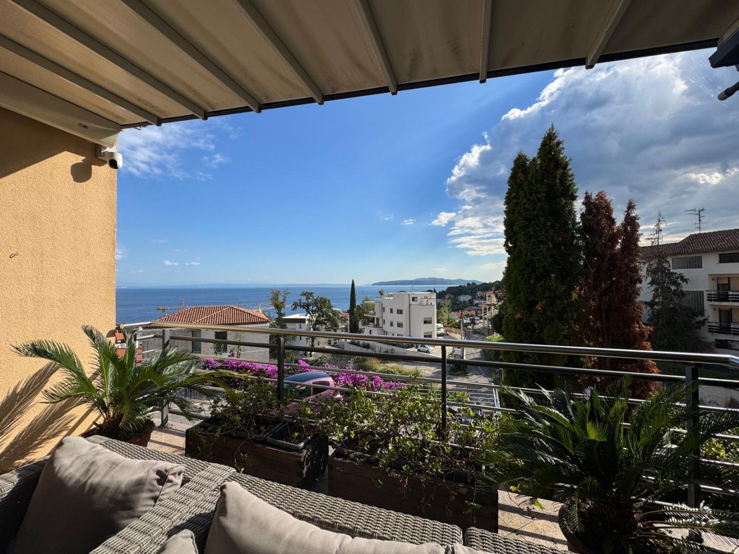 OPATIJA, IČIĆI – Eine intime Oase mit geräumiger Terrasse und Meerblick In ruhiger Lage, nur 250 Meter vom Meer entfernt, befindet sich diese äußerst angenehme Wohnung mit 2 Schlafzimmern + Bad in einem kleineren Gebäude neuerer und hochwertiger Bauweise mit nur 7 Wohnungen. Zum Strand und zur Promenade sind es weniger als 5 Gehminuten. Obwohl sie sich im Hochparterre befindet, befindet sich die Wohnung aufgrund der Geländebeschaffenheit und des darunter liegenden Garagenplatzes vollständig auf der Höhe des ersten Stocks, was zusätzliche Privatsphäre gewährleistet. Aufteilung: offenes Wohnzimmer mit Küche und Esszimmer, zwei Schlafzimmer, Bad, Flur und Eingangshalle, geräumige Terrasse von ca. 35 m² mit wunderschönem Blick auf das Meer und die Kvarner Bucht. Der besondere Wert dieser Immobilie ist die Terrasse – eine echte private Oase, überdacht von einer beweglichen Markise und veredelt durch Grün, die für ein intimes und entspannendes Ambiente sorgt. Weitere Ausstattungsmerkmale: Ölzentralheizung, Klimaanlagen zur Kühlung, hochwertige Bauweise und erstklassige Lage. Zur Wohnung gehört ein Parkplatz im Garten sowie ein 2,64 m² großer Abstellraum im Keller des Gebäudes. Die Wohnung ist komplett ausgestattet und möbliert und wird als solche verkauft – bezugsfertig ohne zusätzliche Investitionen. Eine sehenswerte Immobilie! OPATIJA: Opatija, bekannt als die „Königin der Adria“, begeistert mit ihrer reichen Geschichte, der luxuriösen Belle-Epoque-Architektur und der spektakulären Promenade Lungomare. Das milde Klima, die Kombination aus Meer und Bergen sowie die erstklassige Gastronomie machen die Stadt das ganze Jahr über zu einem beliebten Reiseziel. Opatija ist die perfekte Wahl für alle, die einen kultivierten mediterranen Lebensstil suchen. Um eine Immobilienbesichtigung zu vereinbaren, rufen Sie vertrauensvoll den Makler an.