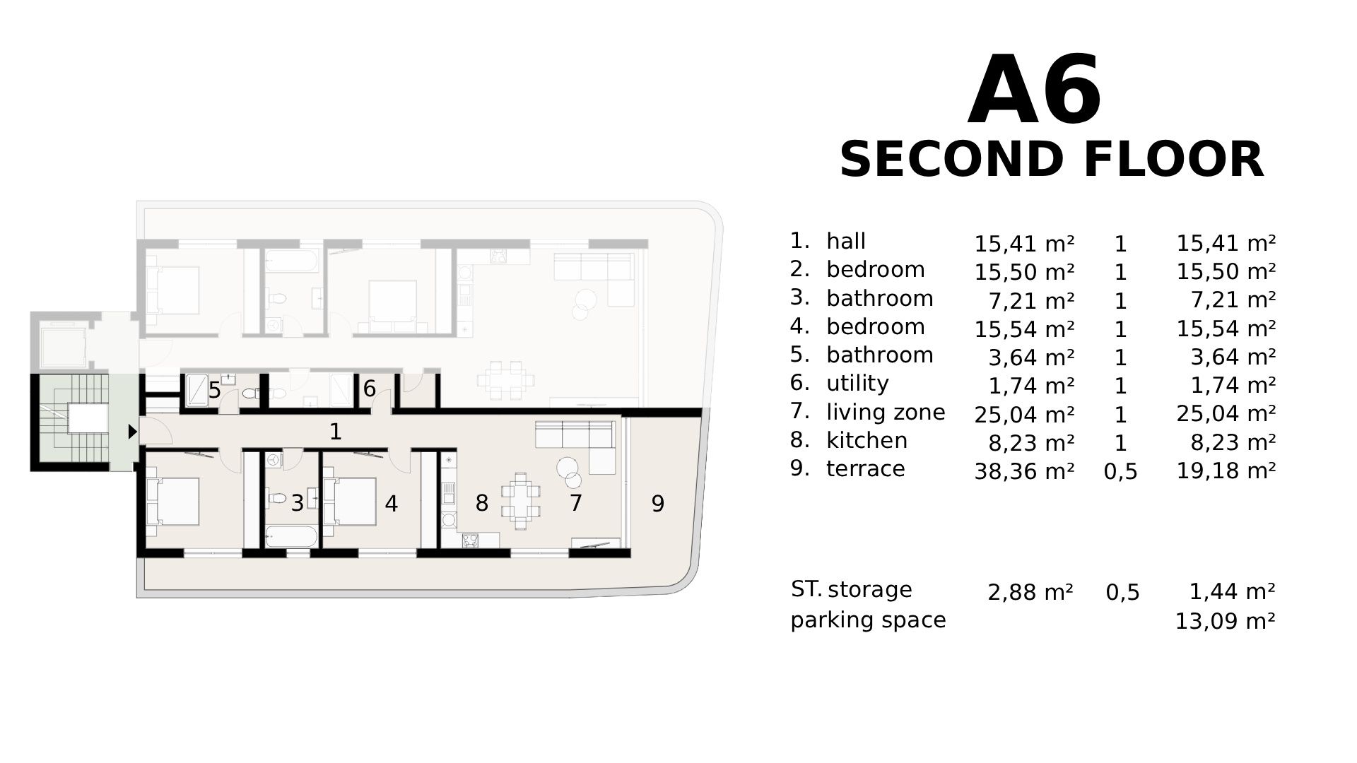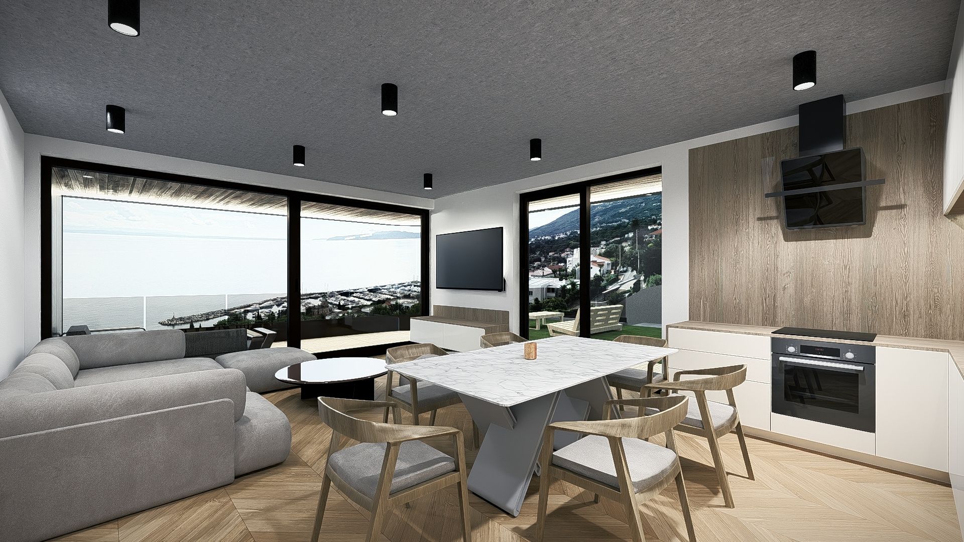 OPATIJA, IČIĆI – Die perfekte Kombination aus Design, Eleganz und Panoramablick Zum Verkauf steht eine luxuriöse 2-Zimmer-Wohnung mit großzügiger Terrasse und beeindruckendem Panoramablick auf das Meer und den Yachthafen ACI. Die Wohnung befindet sich in einer exklusiven Wohnanlage mit Gemeinschaftspool und Tiefgarage. Sie vereint ruhige Lage, Privatsphäre und die Nähe zu allen Annehmlichkeiten der Riviera von Opatija, nur wenige Gehminuten vom Meer entfernt. Die Anlage mit sieben luxuriösen Wohnungen zeichnet sich durch modernes Design, edle Details und hochwertige Materialien aus, die Langlebigkeit und makellose Qualität garantieren. Die ruhige und attraktive Lage bietet Ruhe und Privatsphäre und ist gleichzeitig in unmittelbarer Nähe zu Stränden, Yachthafen und allen Annehmlichkeiten des täglichen Lebens. WOHNUNG A6 • Etage: 2. OG • 2 Schlafzimmer, 2 Badezimmer • Nettofläche der Wohnung (inkl. Nebenkosten): 112,93 m² • Wohnfläche der Wohnung: 92,31 m² • Terrasse: 38,36 m² (19,18 m² inkl. Nebenkosten) • Abstellraum: 2,88 m² (1,44 m² inkl. Nebenkosten) • 1 Garagenstellplatz: 13,09 m² Die Wohnung ist auf maximalen Komfort und ein luxuriöses Wohnambiente ausgelegt. Sie verfügt über einen geräumigen Eingangsbereich, einen Abstellraum, zwei Schlafzimmer, zwei moderne Badezimmer, ein Wohnzimmer mit Küche und Essbereich sowie eine große Terrasse – ideal, um den Morgenkaffee zu genießen oder abends mit einem spektakulären Panoramablick auf das Meer zu entspannen. Die große Terrasse macht die Wohnung zum perfekten Ort zum geselligen Beisammensein, Entspannen und Genießen bezaubernder Sonnenuntergänge, während das geräumige Wohnzimmer im Inneren der Wohnung Komfort und Funktionalität für den Alltag bietet. AUSSTATTUNG UND TECHNOLOGIE • Hinterlüftete Fassade vereint moderne Effizienz mit zeitloser Eleganz • Wicona-Aluminium-Außenfenster und -türen mit integrierter Alarmanlage • Wärmepumpenheizung und Warmwasserbereitungssystem für maximale Energieeffizienz • Fußbodenheizung für gleichmäßige Wärme • Unauffällig integrierte Klimaanlagen • Erstklassige Holzböden und Premium-Fliesen • Einbruchsichere Türen und Alarmanlage • Garagenstellplatz mit Lademöglichkeit für Elektrofahrzeuge • Aufzug von der Tiefgarage LAGE Perfekte Privatsphäre und Ruhe, nur wenige Gehminuten von Strand und Yachthafen entfernt, mit schneller Anbindung an das Zentrum von Opatija – ideal für ein luxuriöses Leben am Meer, einen Urlaub oder eine Investition in eine Ferienimmobilie. PREIS Komplett bezugsfertige Wohnung, unmöbliert. Der Preis beinhaltet die Mehrwertsteuer, der Käufer ist von der Grundsteuer befreit. Der Kauf über ein in Kroatien registriertes Unternehmen ermöglicht die vollständige Mehrwertsteuerrückerstattung. Dieses Projekt steht für mediterranen Lebensstil, geprägt von Luxus, Licht und Natur – ein Zuhause für alle, die mehr als nur eine Immobilie suchen. OPATIJA: Opatija, die „Königin der Adria“, bezaubert mit ihrer reichen Geschichte, der prachtvollen Architektur der Belle Époque und der spektakulären Uferpromenade Lungomare. Das milde Klima, die Kombination aus Meer und Bergen sowie die erstklassige Gastronomie machen sie zu einem ganzjährig beliebten Reiseziel. Opatija ist die perfekte Wahl für alle, die einen anspruchsvollen mediterranen Lebensstil suchen.