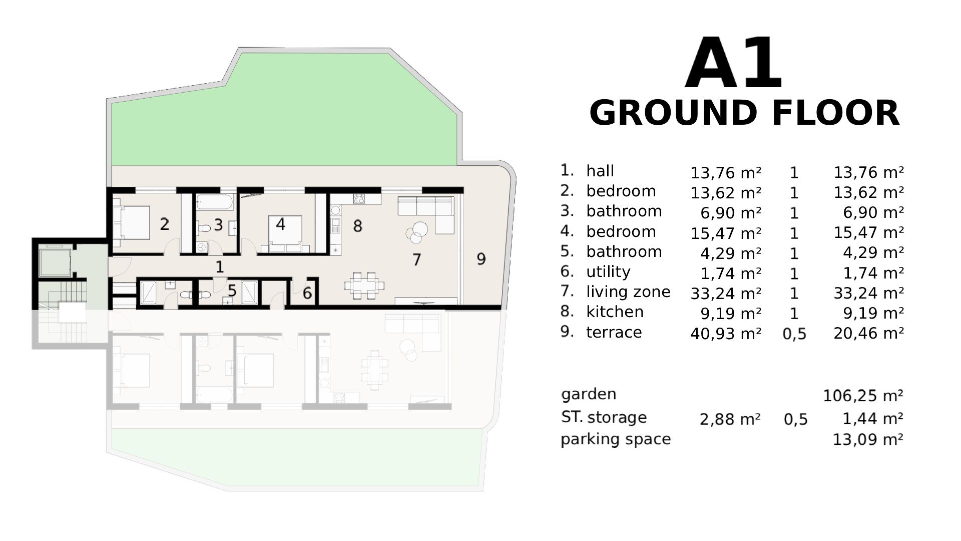 OPATIJA, IČIĆI – Luxus im Erdgeschoss: Garten, Ruhe und freier Meerblick Zum Verkauf steht eine luxuriöse 2-Zimmer-Wohnung mit Bad, privatem Garten und atemberaubendem Blick auf das Meer und den Yachthafen ACI. Die Wohnung befindet sich in einem exklusiven Neubau mit Gemeinschaftspool und Tiefgarage in ruhiger Lage, nur wenige Schritte vom Meer entfernt. Diese exklusive Wohnanlage mit sieben repräsentativen Wohnungen besticht durch modernes Design, makellose Eleganz und hochwertigste Materialien, die Langlebigkeit und erstklassige Qualität garantieren. Nur wenige Gehminuten vom kristallklaren Meer und dem renommierten Yachthafen ACI entfernt, bietet jede Wohnung einen spektakulären Panoramablick und luxuriösen Wohnkomfort direkt am Meer. Die ruhige Lage garantiert Privatsphäre und Entspannung, während Sie gleichzeitig alle Annehmlichkeiten – Strände, Restaurants und die charmante Umgebung der Riviera von Opatija – bequem erreichen. WOHNUNG A1 • Etage: Erdgeschoss • 2 Schlafzimmer, 2 Badezimmer • Gesamtnettofläche der Wohnung (inkl. Berücksichtigung): 120,11 m² • Wohnfläche der Wohnung: 98,21 m² • Terrasse: 40,93 m² (20,46 m² inkl. Berücksichtigung) • Abstellraum: 2,88 m² (1,44 m² inkl. Berücksichtigung) • Garten: 106,25 m² • 1 Garagenstellplatz: 13,09 m² Diese luxuriöse Wohnung ist auf höchsten Komfort und einen gehobenen Lebensstil ausgelegt. Ihnen stehen ein geräumiger Eingangsbereich, ein Abstellraum, zwei elegante Schlafzimmer, zwei moderne Badezimmer, ein Wohnzimmer mit Küche und Essbereich sowie eine großzügige Terrasse zur Verfügung – ideal zum Entspannen und geselligen Beisammensein mit einem spektakulären Meerblick. Ein besonderer Charme entsteht durch den privaten Garten, der sich in eine wahre Oase verwandeln lässt – ideal zum Sonnenbaden, Essen im Freien oder Entspannen mit Meeresrauschen. Zur Wohnung gehören außerdem ein Garagenstellplatz und ein Abstellraum für maximalen Komfort. AUSSTATTUNG UND TECHNIK • Hinterlüftete Fassade vereint moderne Effizienz mit zeitloser Eleganz • Außenfenster aus Wicona-Aluminium mit integrierter Alarmanlage für zusätzliche Sicherheit • Wärmepumpenheizung und Warmwasserbereitung – Energieeffizienz und maximaler Komfort • Fußbodenheizung für gleichmäßige Wärme in allen Räumen • Unauffällig integrierte Klimaanlagen • Hochwertige Holzböden und Premium-Fliesen in Bädern und Gemeinschaftsbereichen • Einbruchsichere Türen und Alarmanlage • Garagenstellplatz mit Lademöglichkeit für Elektrofahrzeuge • Aufzug von der Tiefgarage in alle Etagen LAGE Die perfekte Lage, nur wenige Gehminuten von Strand und Yachthafen und wenige Fahrminuten vom Zentrum von Opatija entfernt, macht diese Wohnung ideal für Familien, einen luxuriösen Urlaub oder eine prestigeträchtige Investition in die Ferienvermietung. PREIS Der Preis bezieht sich auf eine komplett bezugsfertige Wohnung ohne Möbel. Der Preis beinhaltet die Mehrwertsteuer, und der Käufer ist von der Grundsteuer befreit. Der Kauf über ein in Kroatien registriertes Unternehmen ermöglicht die vollständige Rückerstattung der Mehrwertsteuer. Dieses Projekt verkörpert mediterranen Lebensstil – geprägt von Luxus, Licht und Natur. Ein Zuhause für alle, die mehr als nur eine Immobilie suchen. OPATIJA: Opatija, die „Königin der Adria“, bezaubert mit ihrer reichen Geschichte, der prachtvollen Architektur der Belle Époque und der spektakulären Uferpromenade Lungomare. Das milde Klima, die Kombination aus Meer und Bergen sowie die erstklassige Gastronomie machen die Stadt zu einem ganzjährig beliebten Reiseziel. Opatija ist die perfekte Wahl für alle, die einen anspruchsvollen mediterranen Lebensstil suchen.