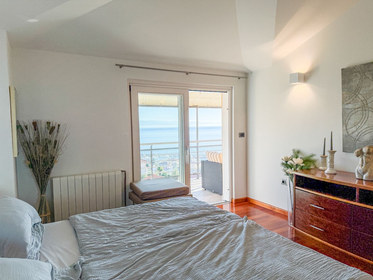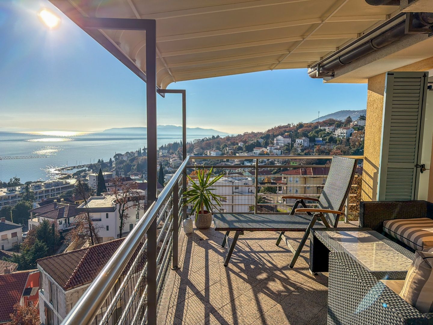OPATIJA, IČIĆI – Penthouse in einer wunderschönen Villa oberhalb des Marriott Resorts, Garage, 300 m vom Strand In einem exklusiven DUX-Verkauf präsentieren wir Ihnen eine außergewöhnliche Immobilie nur wenige Schritte vom berühmten Marriott Resort am Meer entfernt, direkt am Strand von Ičići, dem schönsten Strandabschnitt in der Nähe von Opatija. Die neu erbaute Villa mit mehreren Apartments liegt in einer ruhigen Wohnstraße, nur 300 Meter von der Zufahrtsstraße zum Meer und zum Strand entfernt. Zur Ausstattung gehören ein Garten, ein Parkplatz und Garagenstellplätze. Das Penthouse im zweiten Obergeschoss besteht aus einem Flur, zwei geräumigen Schlafzimmern, zwei Badezimmern und einem großen, offenen Wohnbereich mit Zugang zu einer Terrasse mit Panoramablick auf das Meer. Auch das Hauptschlafzimmer mit eigenem Bad verfügt über eine eigene Terrasse mit Panoramablick auf das Meer und den bekannten Yachthafen ACI. Die neu erbaute Immobilie befindet sich in einem exzellenten Zustand und wurde kaum (nur saisonal) genutzt. Die verwendeten Materialien sind hochwertig, und die Schreinerarbeiten sind in einem Top-Zustand. Jedes Zimmer verfügt über eine Klimaanlage und eine Zentralheizung mit Heizkörpern. Zur Immobilie gehört eine geräumige Garage mit 22 m², wodurch sich die Gesamtfläche auf 135 m² beläuft. Die Lage des Gebäudes ist ideal: ruhig, verkehrsberuhigt und ohne Baustellen im vorderen Bereich. Von hier aus genießen Sie einen unverbaubaren Panoramablick auf das Meer. Dies ist eine großartige Gelegenheit, eine größere Wohnung in unmittelbarer Nähe zum Meer in Ičići zu erwerben. Die Fahrt ins Zentrum von Opatija dauert 5 Minuten, zum Strand 60 Sekunden. Der Strand ist in nur 4 Minuten zu Fuß erreichbar. Für eine Besichtigung rufen Sie den Makler gerne an – eine Beratung auf Deutsch ist möglich.