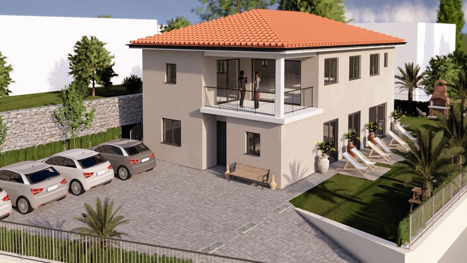 OPATIJA, LOVRAN – Wohnung in einem Neubau mit eigenem Garten, nur 250 Meter vom Meer entfernt, eine Top-Gelegenheit! Wohnung B, 79 m², befindet sich im Erdgeschoss eines hochwertigen, kleineren Wohnhauses mit insgesamt nur drei Wohnungen. Dies garantiert Ruhe und Privatsphäre in einer außergewöhnlich exklusiven Nachbarschaft. Der Eingang zur Wohnung befindet sich an der Südostfassade im Erdgeschoss. Die Raumaufteilung ist funktional und angenehm für den Alltag. Die Wohnung besteht aus Eingangsbereich, Flur, offener Küche mit Essbereich und Wohnzimmer, einem Badezimmer und zwei Schlafzimmern. Das Gebäude wurde als exklusives Wohngebäude in hochwertiger Bauweise konzipiert. Die Fußbodenheizung erfolgt über eine Wärmepumpe. Die Kühlung erfolgt über separate Klimaanlagen in jedem Zimmer, völlig unabhängig vom Heizsystem. Dies bietet einen deutlichen Vorteil in puncto Komfort und Energieeffizienz. Die Wohnung zeichnet sich durch hohe Decken, moderne graue Einbauschränke mit integrierten Moskitonetzen und Rollläden sowie eine durchdachte Architektur aus, die eine optimale Raumnutzung ermöglicht. Die Erdgeschosswohnungen verfügen zusätzlich über private Gärten – einer mit 50 m² und der andere mit 100 m². Zu dieser Wohnung gehört außerdem ein eigener Parkplatz, zusätzlich zum Gemeinschaftsparkplatz des Gebäudes. Der Garten wird gärtnerisch gestaltet und mit Rasen und hochwertigen Pflanzen versehen, die das Gesamtbild abrunden. Die Fertigstellung ist spätestens für Herbst 2026 geplant. In dieser Bauphase besteht die Möglichkeit, Ausbaumaterialien wie Fliesen, Parkett und Sanitärkeramik auszuwählen. Ein besonderer Vorteil dieses Gebäudes ist seine Lage: Das Meer ist in nur 3 Minuten zu Fuß erreichbar, und auch das Zentrum von Lovran, die Uferpromenade, Geschäfte, Märkte und Restaurants sind nur wenige Gehminuten entfernt. Die Wohnung bietet eine hervorragende Gelegenheit für ein ruhiges Leben am Meer oder als Kapitalanlage in attraktiver Lage in Lovran, in unmittelbarer Nähe von Opatija. Für eine Besichtigung kontaktieren Sie bitte einen vertrauenswürdigen Makler – eine Beratung auf Deutsch ist möglich.