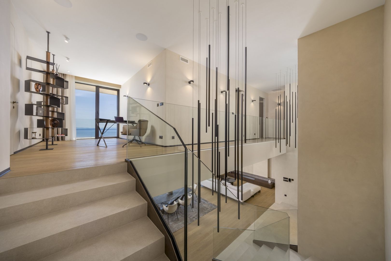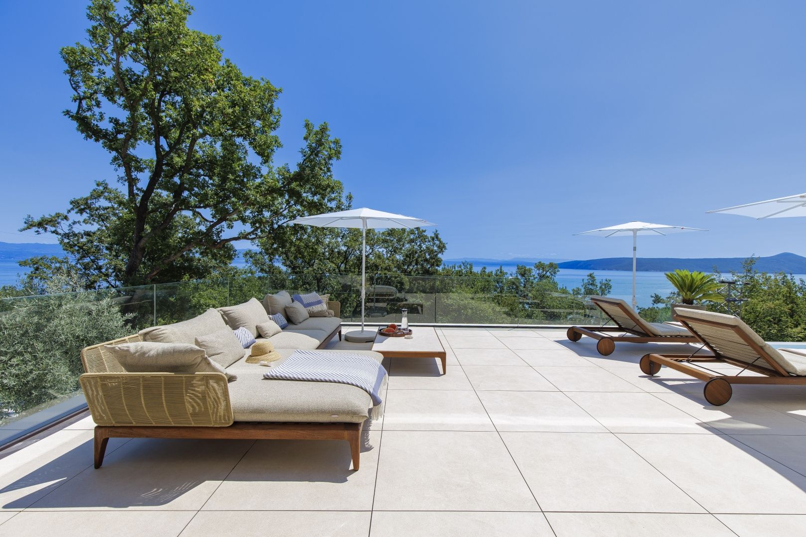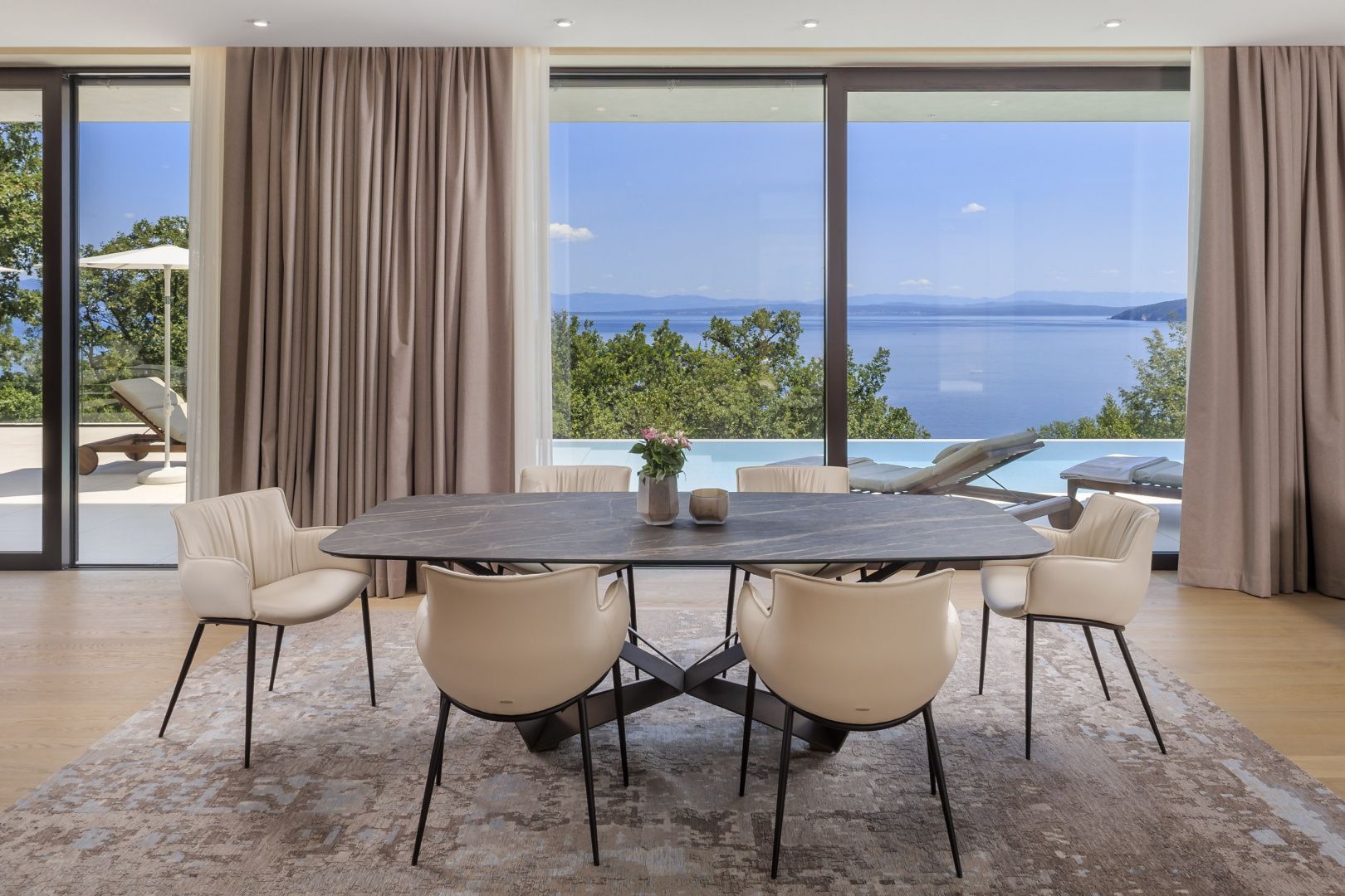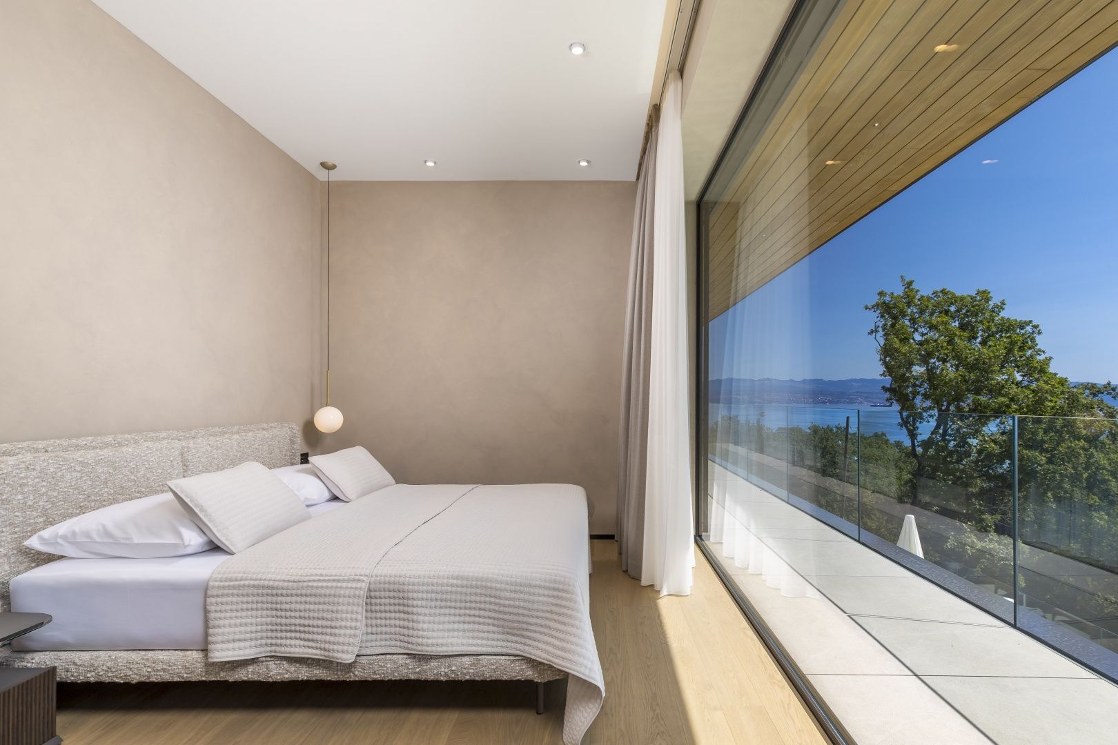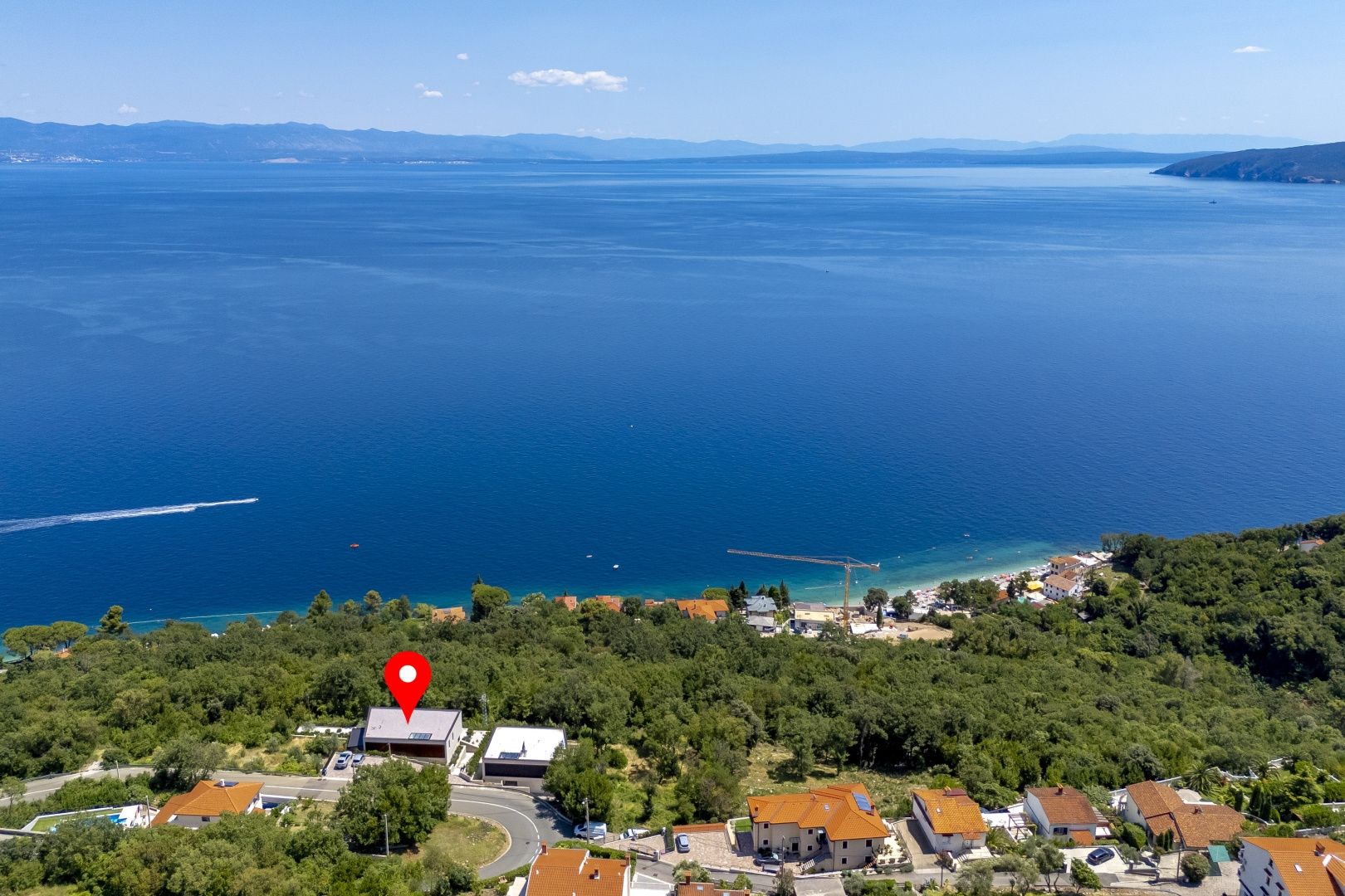 OPATIJA, MOŠĆENIČKA DRAGA – Luxusvilla mit Swimmingpool in Toplage mit Panoramablick auf das Meer Im exklusiven Angebot von Real Estate heben wir eine außergewöhnliche Villa in einer der begehrtesten Mikrolagen der Riviera von Opatija hervor – nur zwei Minuten von der Küste und dem kristallklaren Strand von Mošćenička Draga entfernt. Diese architektonisch durchdachte Villa befindet sich in einer ruhigen Grünzone, diskret versteckt unterhalb der Straße, die zur Altstadt von Mošćenička Draga führt. Ihre Lage bietet absolute Privatsphäre und Ruhe, und dank des erhöhten Geländes bietet jedes Zimmer einen unverbauten Panoramablick auf das Meer bis zum Horizont. Die Villa erstreckt sich über zwei Etagen: Die untere Etage ist als großer offener Raum mit über 100 m² konzipiert, in dem Wohnzimmer, Esszimmer und Küche harmonisch zu einer eleganten Einheit verschmelzen, perfekt zum Wohnen und für gesellige Stunden. Das Obergeschoss ist für einen intimeren Schlafbereich reserviert – jedes der drei Schlafzimmer verfügt über Meerblick, ein eigenes Bad, ein Ankleidezimmer und Zugang zu einer überdachten Terrasse. Dieses Detail sorgt für das Gefühl von Hotel-Privatsphäre in Ihrem eigenen Zuhause. Die Villa ist nicht nur schön – sie ist technologisch und materiell erstklassig und mit außergewöhnlichen Systemen und Marken ausgestattet: - Heiz- und Kühlsysteme von Panasonic – zwei separate Wärmepumpen für den Innenbereich und den Pool - Separates Heiz- und Kühlsystem für den Pool - RÖFIX-Fassade - WICONA-Dreischicht-Aluminiumschreinerei mit elektrischen Rollläden und Außenjalousien - Hochwertige Living-Keramik, Sanitärkeramik von Villeroy & Boch und Wasserhähne von Zucchetti - Innentüren von Filomuro – unsichtbar, rahmenlos, vollständig bündig mit der Wand - Maßgefertigte Möbel und Designerästhetik Der Innenraum ist sorgfältig dekoriert und vereint italienische Ästhetik und Funktionalität: - Küche Cucine Veneta mit Geräten von Bosch - Katalanisches Esszimmerset - Einbauschränke von SGM - Betten von Dittre Italia, Sofas von Desire Die gesamte Villa wird über das intelligente KNX-System verwaltet, das die vollständige Steuerung von Beleuchtung, Heizung, Rollläden und Sicherheit ermöglicht – über ein Smartphone oder eine einzige Berührung der Wand. Der Garten ist sorgfältig mit einer Kombination aus exotischen Pflanzen und mediterranen Texturen angelegt. Die Fassade und die umgebenden Mauern sind mit echtem Stein von beeindruckender Dicke verkleidet – nicht nur ästhetisch, sondern auch als Symbol für Langlebigkeit. Vor der Villa befinden sich drei überdachte Parkplätze. Einzug ist bereits im Herbst 2025 möglich, und eine Besichtigung der Villa kann bereits jetzt organisiert werden. Um eine Besichtigung der Immobilie zu vereinbaren, rufen Sie den Makler vertrauensvoll an – eine Beratung auf Deutsch ist möglich.