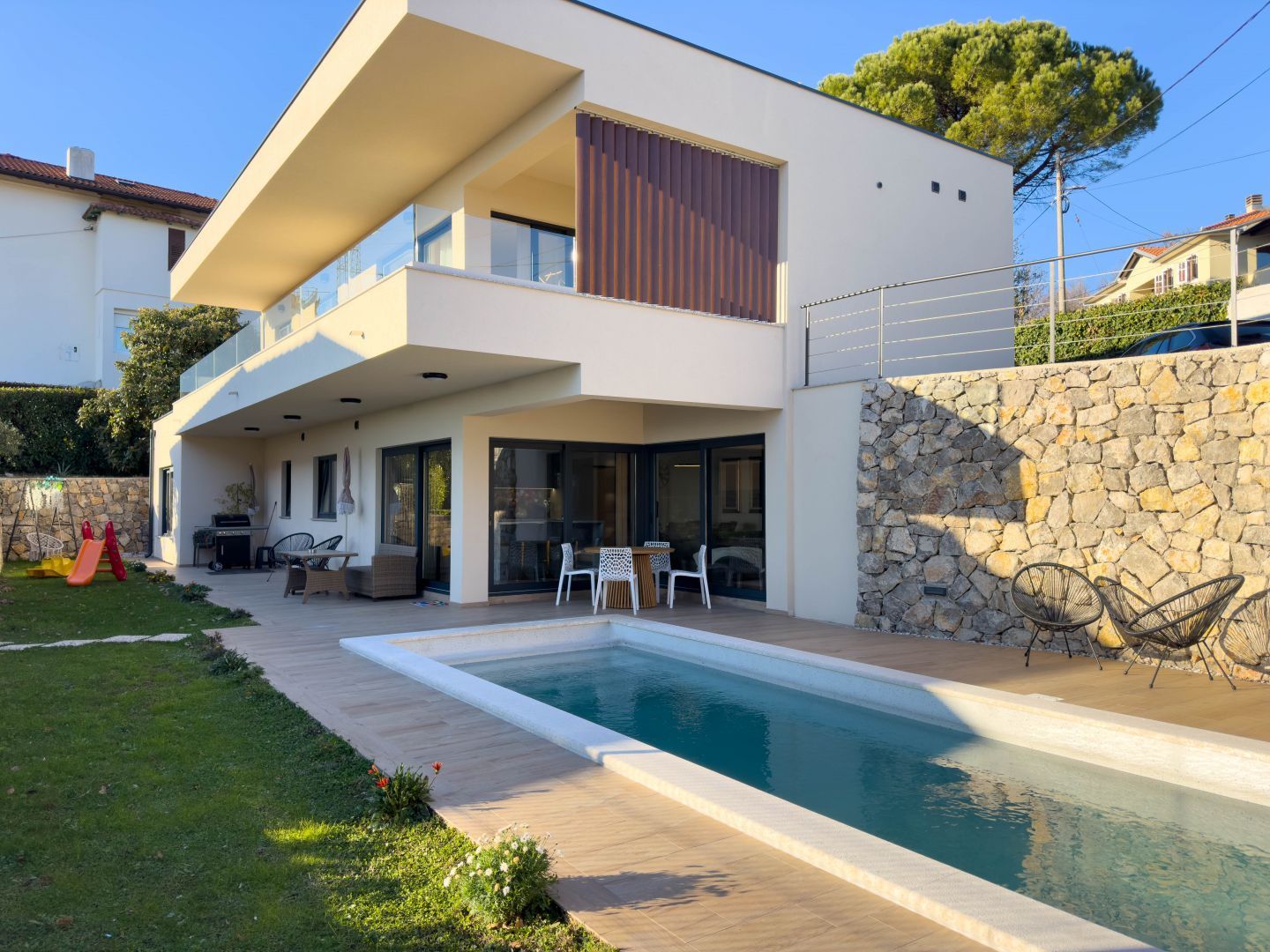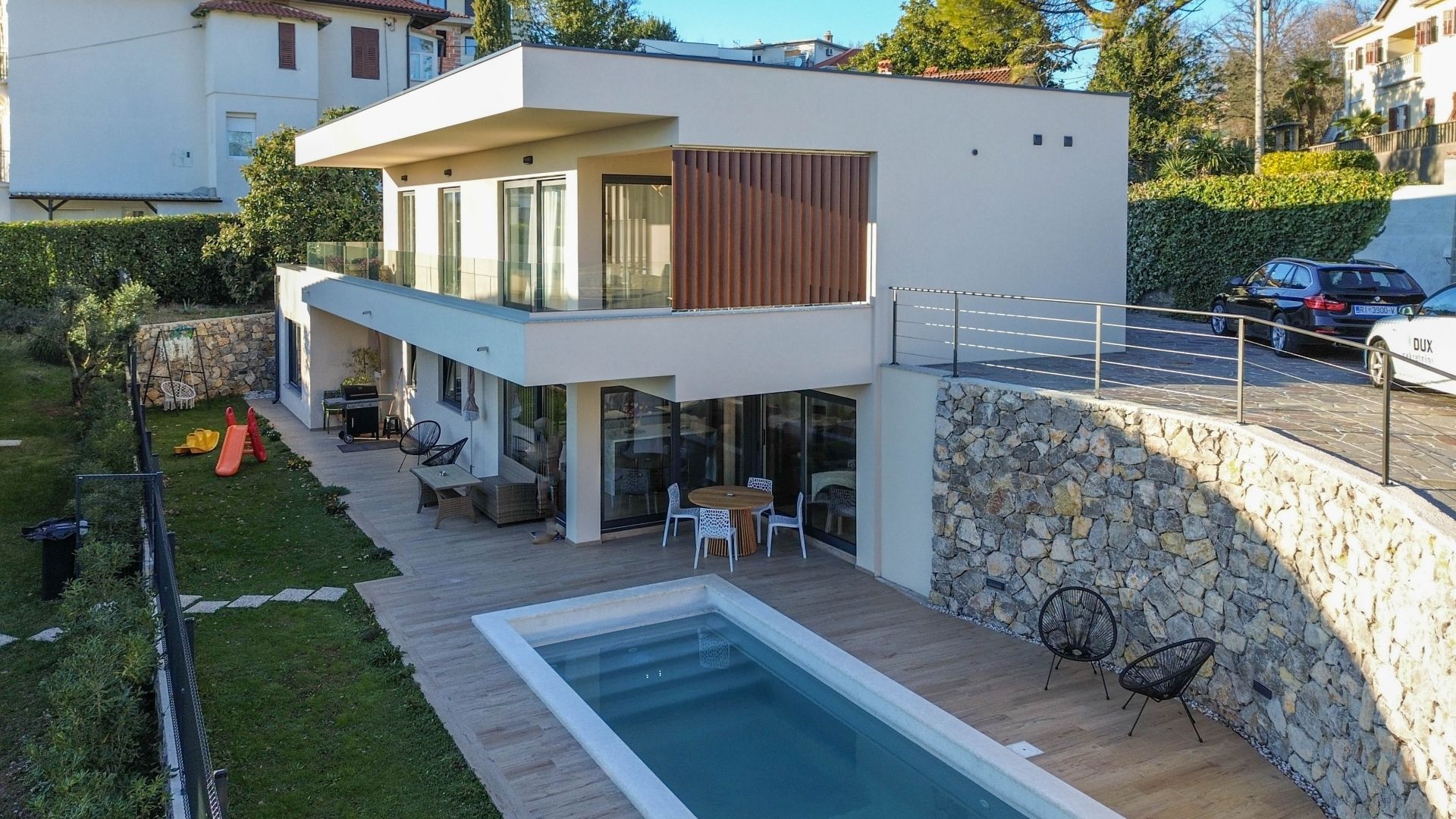 OPATIJA, UMGEBUNG - Hochwertiger Neubau mit zwei Pools Weniger als vier Kilometer vom Zentrum von Opatija entfernt, einer exklusiven Küstenstadt, die für ihre eleganten Villen, wunderschönen Parks und die Promenade am Meer bekannt ist, bieten wir Ihnen eine wunderschöne Villa zur Miete an. Die ausgezeichnete Lage dieser Immobilie, weniger als zehn Minuten Fahrt zu den Stränden und dem Zentrum von Opatija, 1,5 km zur Autobahn sowie die Nähe zu allen Annehmlichkeiten, sind zusätzliche Vorzüge dieser Villa. Im Erdgeschoss befindet sich ein großzügiger, offener Raum, der ein Wohnzimmer, ein Esszimmer und eine Küche umfasst, mit Zugang zur Außenterrasse mit Pool, einem SPA-Bereich mit Innenpool, Sauna, Abstellraum und Badezimmer. Im Obergeschoss befinden sich drei Schlafzimmer, eines davon mit eigenem Bad und Ankleideraum, ein weiteres Badezimmer sowie eine überdachte Terrasse. Die Villa ist hochwertig gebaut und luxuriös ausgestattet, wobei alle verwendeten Materialien, Boden- und Wandbeläge nach höchsten Standards ausgewählt wurden. Auf dem umzäunten Grundstück gibt es Platz für mehrere Autos. Diese luxuriöse Immobilie bietet die perfekte Kombination aus Komfort, Privatsphäre und erstklassigem Design. Sehr geehrte potenzielle Mieter, Wir freuen uns, dass Sie Interesse an den von uns angebotenen Immobilien zeigen. Für weitere Informationen und eine Besichtigung der Immobilie können Sie uns gerne kontaktieren. Die Besichtigung der Immobilie ist ausschließlich nach Unterzeichnung eines Maklervertrags gemäß dem Datenschutzgesetz und dem Gesetz über die Immobilienvermittlung möglich, um die Interessen der Eigentümer zu schützen.