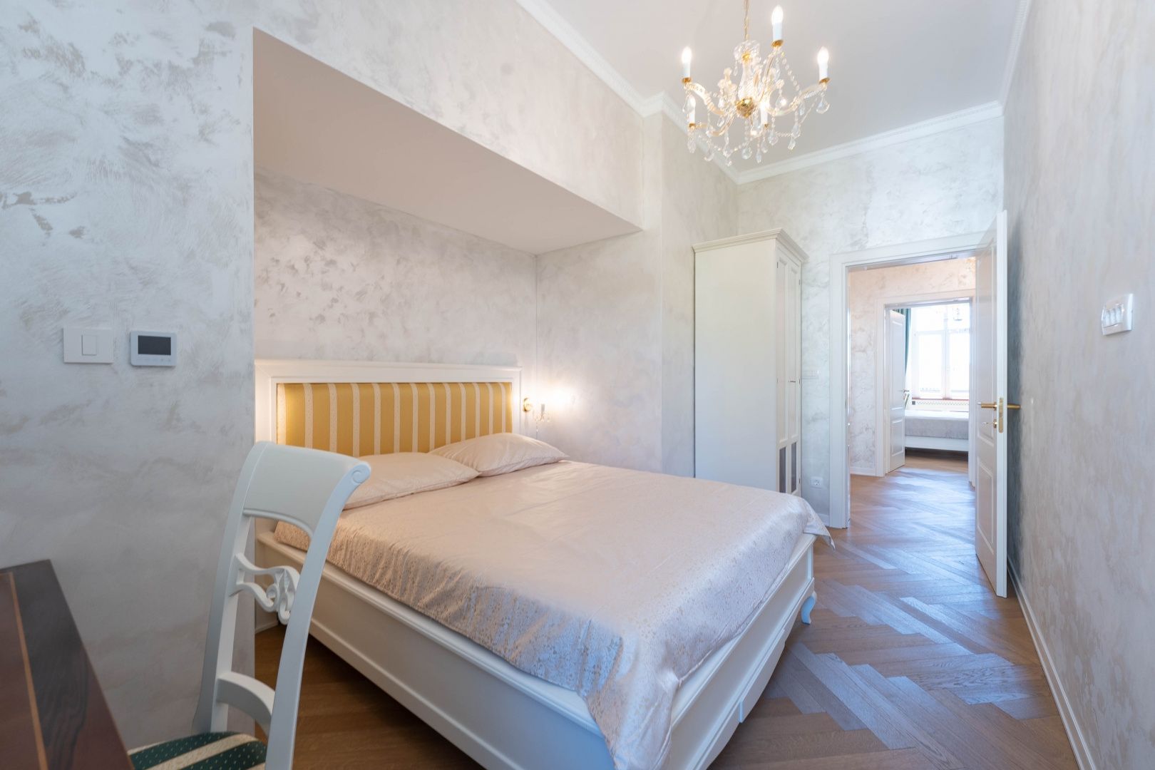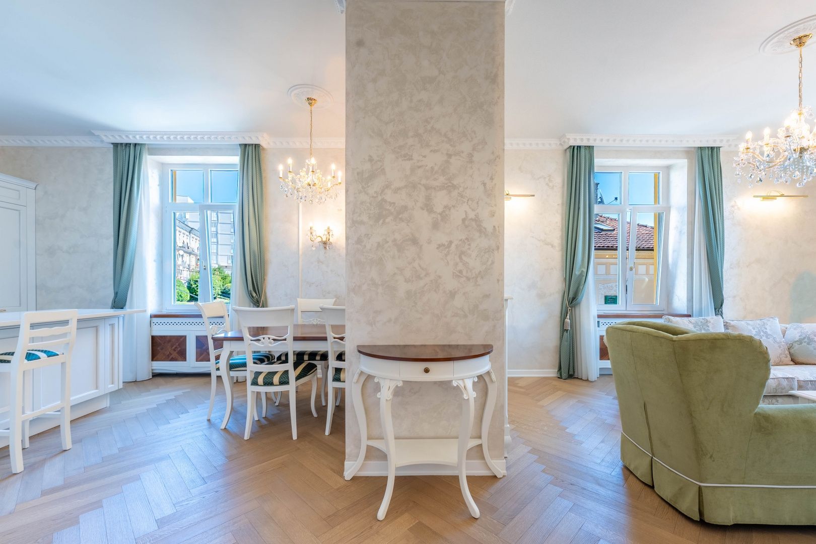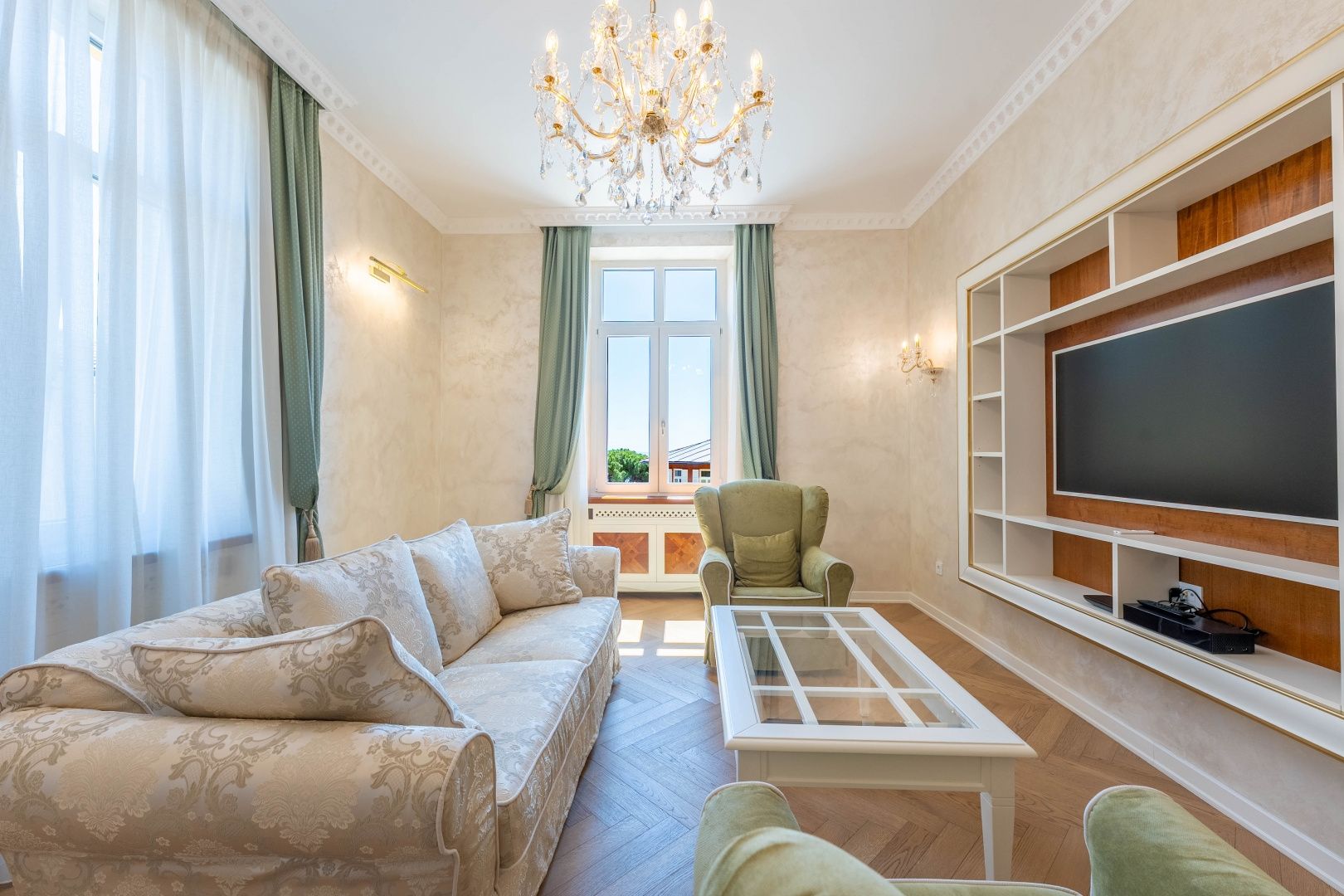 OPATIJA, ZENTRUM – Luxus und Authentizität vereint: Ein Apartment in einer renovierten historischen Villa im Herzen von Opatija mit Panoramablick Wir präsentieren Ihnen eine einzigartige Gelegenheit, im Herzen von Opatija zu wohnen – in einem Apartment in einer 130 Jahre alten historischen Villa, die Charme und Authentizität ausstrahlt. Dieses außergewöhnlich gut renovierte Apartment bietet eine Wohnfläche von ca. 96 m², einen Anteil am umliegenden Gelände sowie das Recht zur Nutzung eines Parkplatzes (derzeit nicht im Eigentum). Das Apartment wurde mit viel Liebe zum Detail und höchster Funktionalität komplett renoviert. Jedes Zimmer ist mit einer Mitsubishi-Wärmepumpe ausgestattet, die Fußbodenheizung und -kühlung über Fußbodenklimaanlagen ermöglicht und so ganzjährig für optimalen Komfort sorgt. Die Möbel sind handgefertigt und stammen aus einer renommierten Tischlerei in Verona. Kristalllüster unterstreichen die luxuriöse Atmosphäre der Räume. Jedes Detail wurde sorgfältig durchdacht und gestaltet, um dieses Apartment zu einer perfekten Oase der Eleganz und des Komforts zu machen. Die Lage der Wohnung ist ideal – sie befindet sich mitten im Stadtzentrum, nur 130 Meter vom Meer entfernt. Volosko erreichen Sie bequem zu Fuß über die berühmte Strandpromenade Lungomare oder in 3 Minuten mit dem Auto. Ičići ist nur 7 Fahrminuten entfernt. Um einen Besichtigungstermin zu vereinbaren, wenden Sie sich bitte an einen vertrauenswürdigen Makler – eine Beratung auf Deutsch ist möglich.