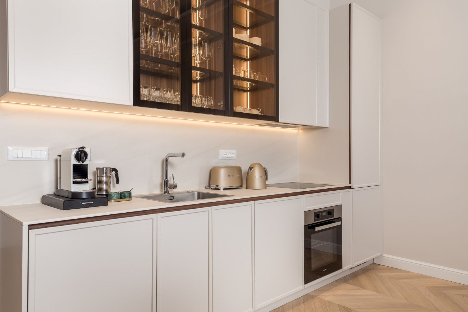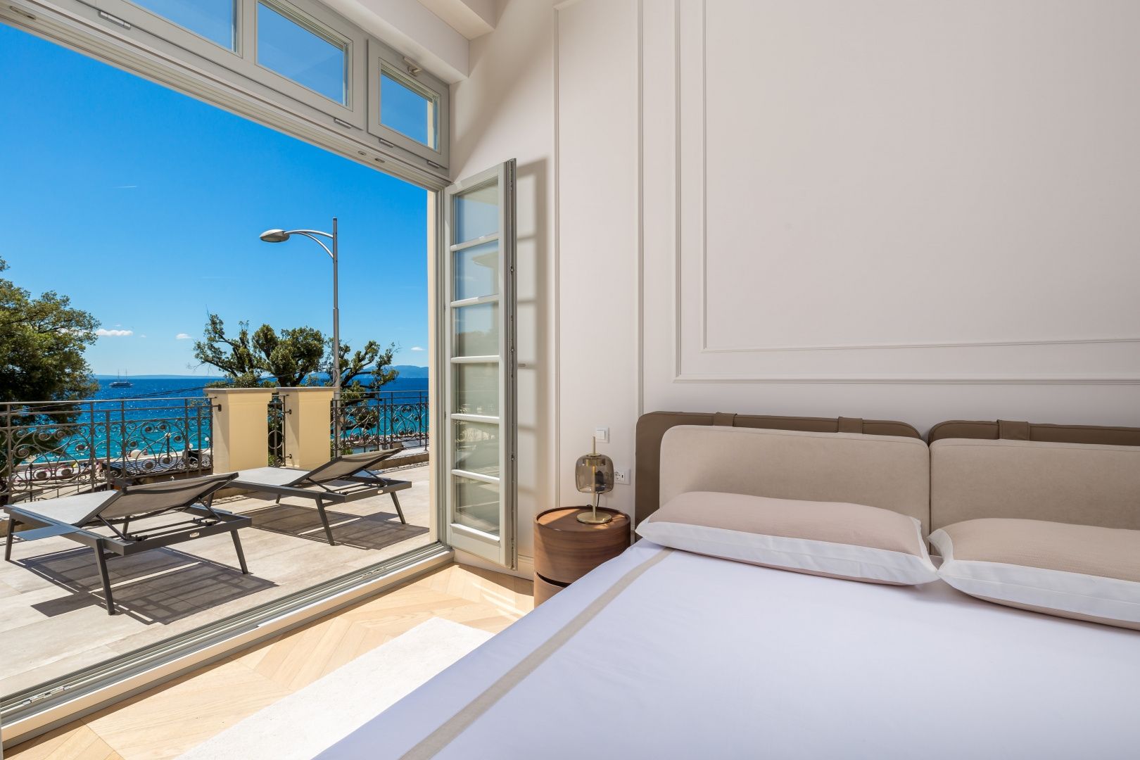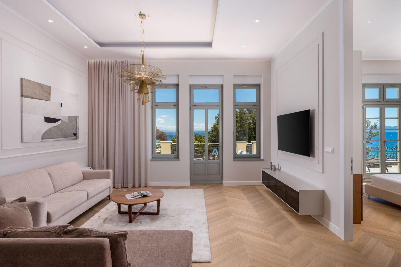 OPATIJA, ZENTRUM – Einzigartiges Anwesen mit 114 m², ein Meisterwerk österreichisch-ungarischer Architektur im Zentrum von Opatija Im Zentrum von Opatija, in einem repräsentativen österreichisch-ungarischen Gebäude, befindet sich dieses elegante und komplett renovierte Anwesen mit 114 m². Die Wohnung im 1. Stock besteht aus einem geräumigen Wohnzimmer, einer modernen Küche mit Esszimmer, einem Schlafzimmer und zwei Bädern. Hohe Decken, hochwertige Materialien und viel Tageslicht schaffen eine anspruchsvolle und zugleich komfortable Atmosphäre. Das Interieur der Wohnung ist sorgfältig im modernen Stil gestaltet und verbindet Ästhetik mit Funktionalität. Das Highlight dieser Immobilie ist die 35 m² große Terrasse mit wunderschönem Panoramablick auf die Kvarner Bucht – ideal für einen Morgenkaffee, eine abendliche Pause oder ein geselliges Beisammensein mit Gästen. Das Meer ist nur 50 Meter entfernt, und alle wichtigen Annehmlichkeiten – die Promenade Lungomare, Restaurants, Geschäfte und kulturelle Sehenswürdigkeiten – sind nur wenige Schritte entfernt. Das Apartment S9 befindet sich in einer außergewöhnlichen Lage mit hervorragender Verkehrsanbindung. Volosko ist nur zwei Autominuten entfernt, Lovran weniger als 10 Autominuten. Diese Immobilie ist ideal für alle, die eine Kombination aus historischer Eleganz und modernem Leben an der Adriaküste suchen. Um einen Besichtigungstermin zu vereinbaren, rufen Sie bitte den Makler an – eine Beratung auf Deutsch ist möglich.