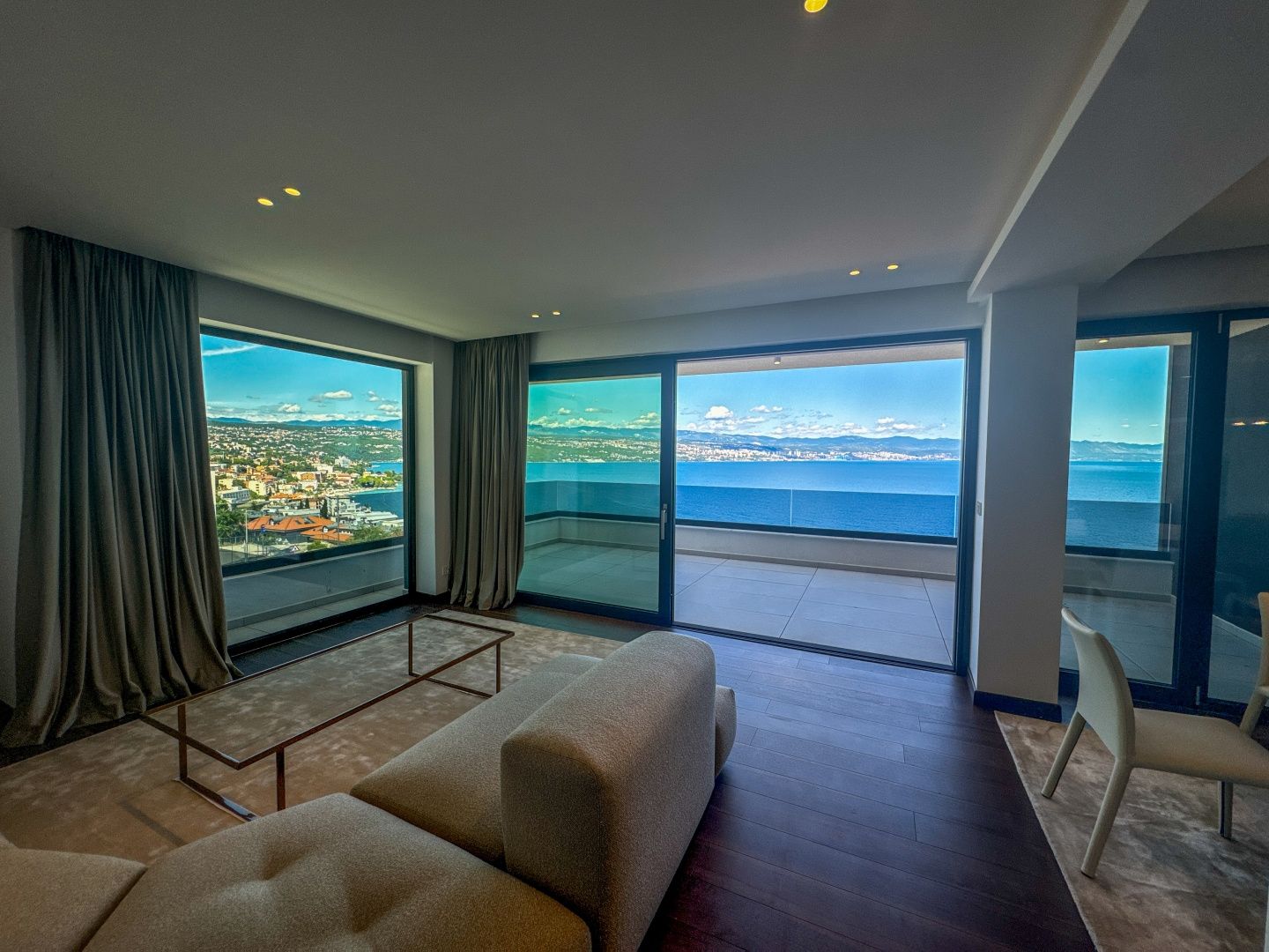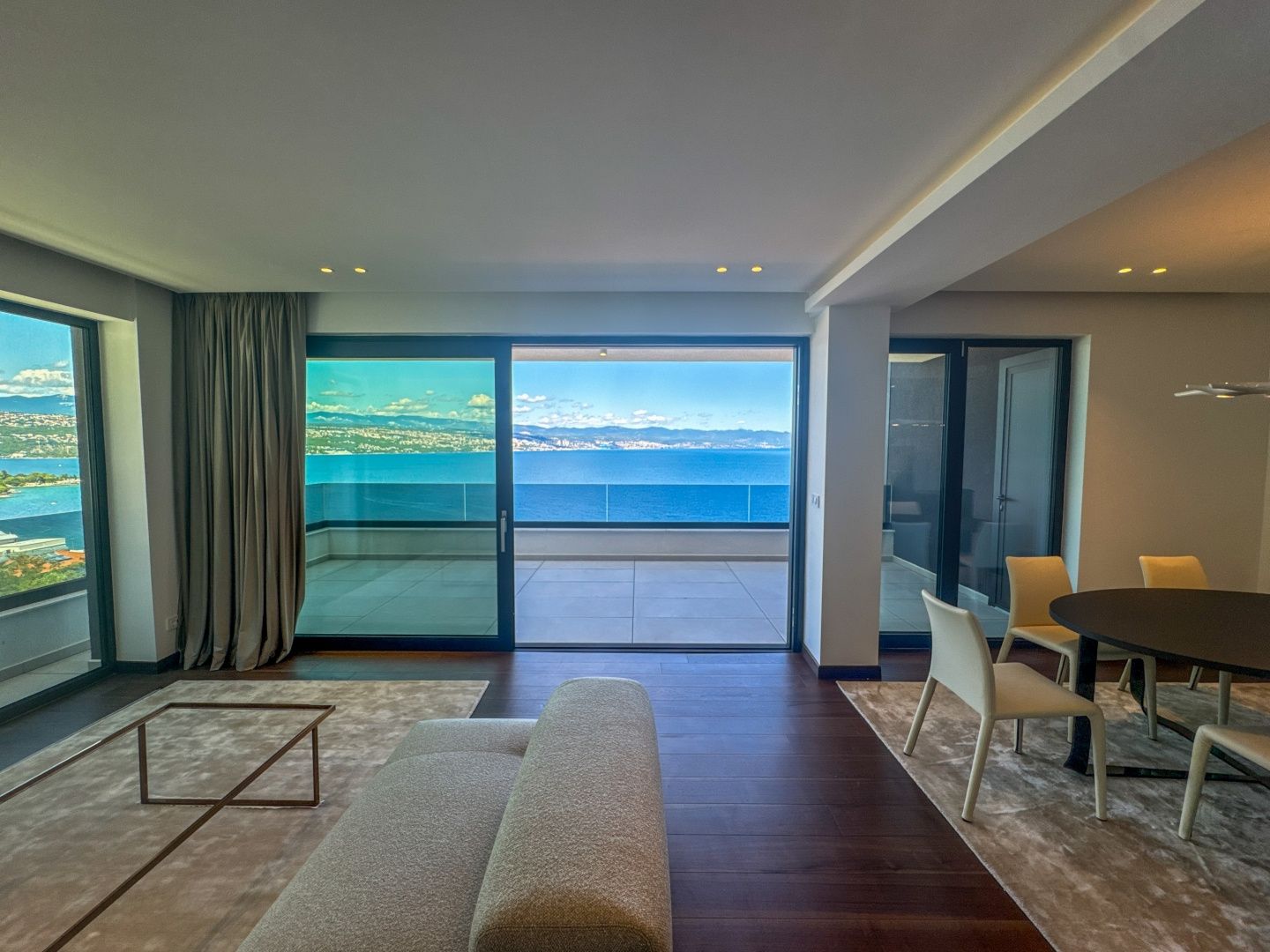 OPATIJA, ZENTRUM – Großzügige Wohnung zur Langzeitmiete in einem hochwertigen Neubau mit Garage und Panoramablick aufs Meer Wir präsentieren Ihnen eine exklusive Gelegenheit zur Langzeitmiete in Opatija! Ein exklusiver Neubau in unmittelbarer Nähe des Stadtzentrums von Opatija befindet sich in einer begehrten Straße, nur 250 Meter vom Meer entfernt. Dank dieser Lage genießen Sie hier absolute Ruhe und Privatsphäre mit Panoramablick aufs Meer. Dieses Gebäude besticht durch seine besondere Bauqualität und hebt sich in Bauweise und -art von anderen Gebäuden an der Riviera ab. Besonders hervorzuheben sind die hochwertigen Materialien im Innenbereich sowie die erstklassige Ausstattung. Die Wohnung S2 im zweiten Obergeschoss dieses einzigartigen Neubaus bietet eine Bruttogeschossfläche von 140 m². Die Nettowohnfläche beträgt 120 m². Die Aufteilung ist wie folgt: Die Wohnung besteht aus einem Eingangsbereich mit Bad und Hauswirtschaftsraum, einem großen, offenen Wohn-/Essbereich mit Küche sowie drei geräumigen Schlafzimmern, jeweils mit eigenem Bad. Die hauseigene Garage bietet mit zwei Stellplätzen Sicherheit und Privatsphäre und ermöglicht den direkten Zugang zur Wohnung über einen Aufzug. Diese Immobilie zeichnet sich durch folgende Besonderheiten aus: - Direkter Aufzug von der Garage - Videoüberwachung rund um das Gebäude - VAILLANT Wärmepumpe mit Fußbodenheizung im gesamten Wohnbereich und Gebläsekonvektor-Klimaanlage in jedem Zimmer - Markenküche mit hochwertigen MIELE-Geräten - Hochwertige Sanitärausstattung von CATALANO - Armaturen der renommierten italienischen Marke FIMA - CARLO FRATTINI - Eingangstüren der renommierten italienischen Marke BARAUSSE bieten hervorragende Wärme- und Schalldämmung - Alle Innentüren sind ebenfalls von BARAUSSE - Hochwertiges, mehrschichtiges Walnussparkett der Marke FOGLIE D'ORO im gesamten Wohnbereich - Keramikfliesen im Innen- und Außenbereich einer renommierten italienischen Marke Die Wohnung ist mit Möbeln der renommierten italienischen Marke PIANCA ausgestattet. Tatsächlich wurde jedes einzelne Möbelstück, vom Stuhl bis zum Bett, sorgfältig nach den Vorgaben des genannten Designhauses ausgewählt. Das Gebäude befindet sich in einer ruhigen, exklusiven Straße, nur 250 m Luftlinie vom Meer entfernt. Das Meer ist in 5 Minuten zu Fuß erreichbar, und die Fahrt ins Zentrum von Opatija dauert nur 2 Minuten. Dieses luxuriöse Gebäude in beneidenswerter Lage zeichnet sich durch hochwertige Materialien und exklusive Ausstattung aus. Es bietet die perfekte Kombination aus modernem Stil, Eleganz und modernster Haustechnik und stellt eine fantastische Investitionsmöglichkeit im märchenhaften Opatija dar.