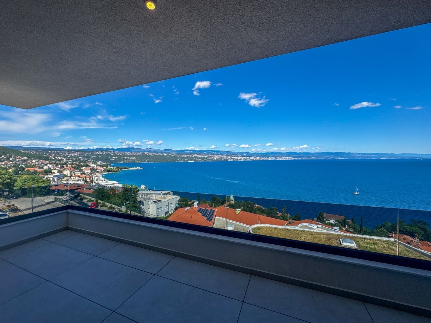 OPATIJA, ZENTRUM – Große Wohnung zur Langzeitmiete in einem hochwertigen Neubau mit Garage und Panoramablick aufs Meer zu vermieten
