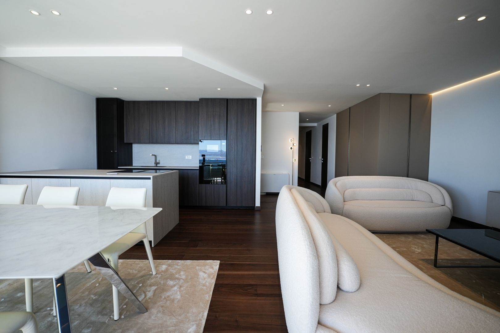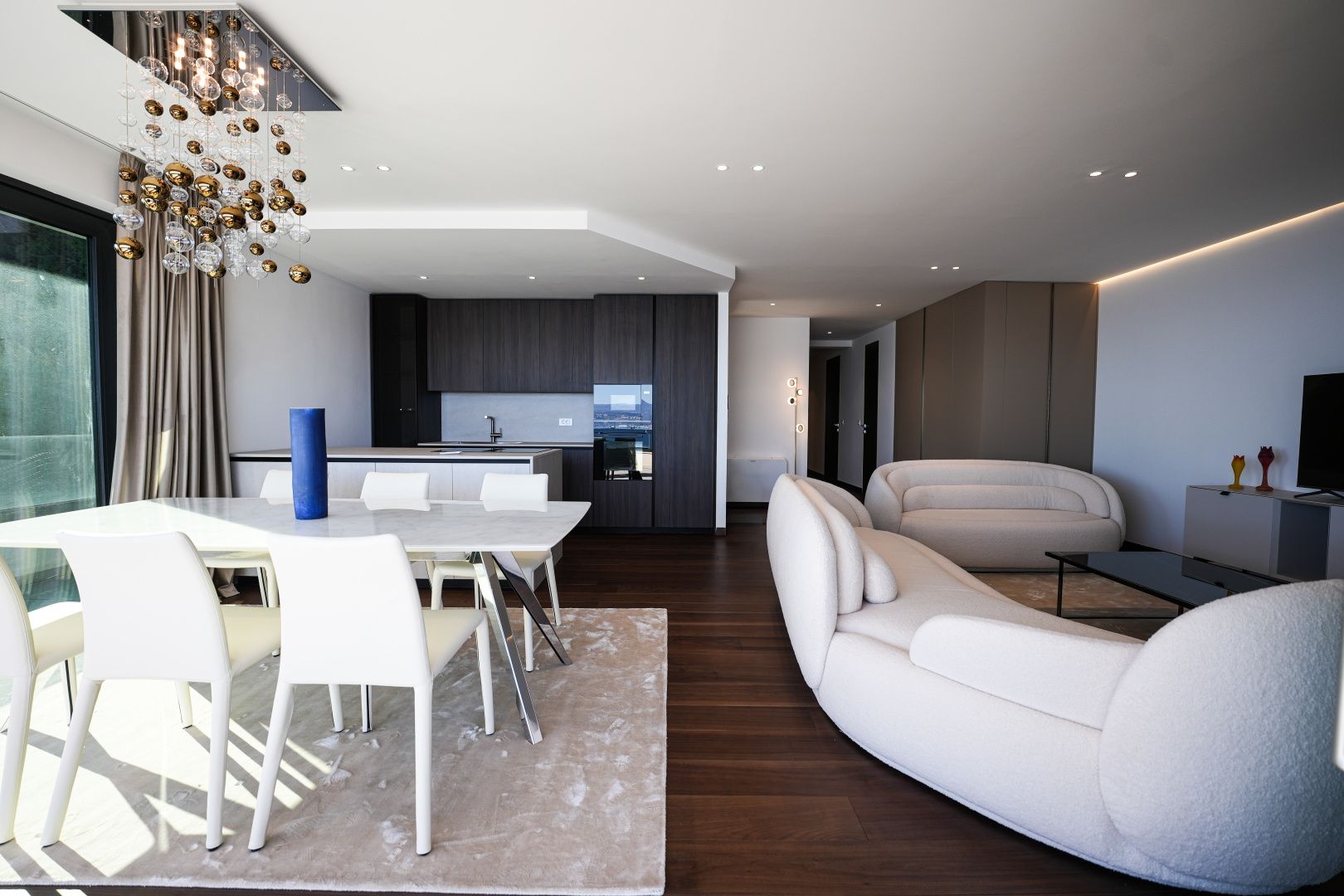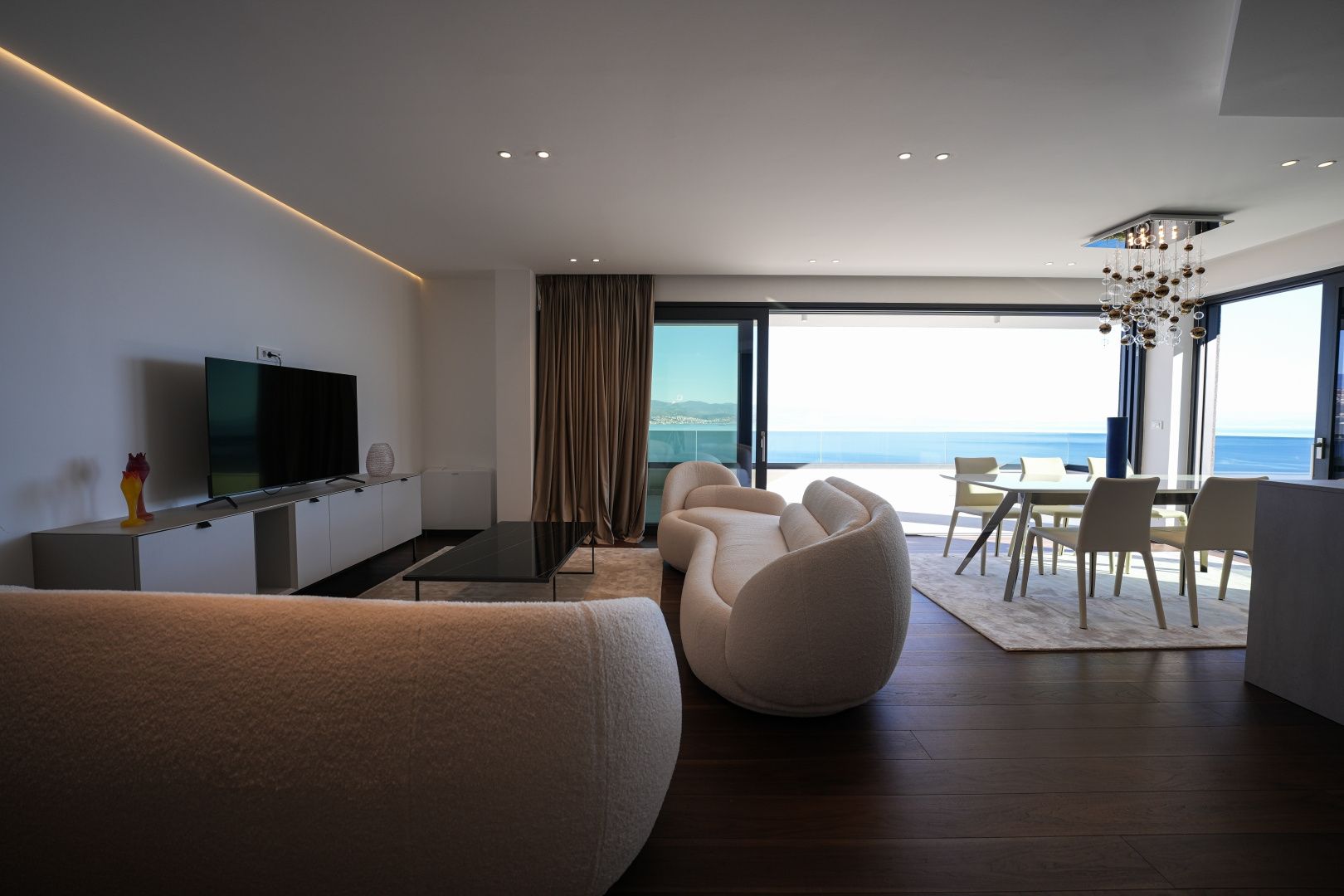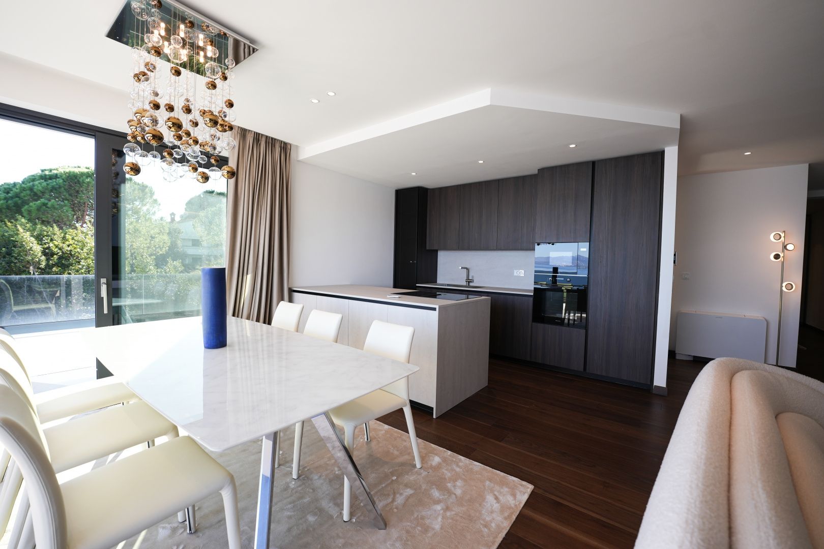 OPATIJA, ZENTRUM – Großzügige Wohnung in einem hochwertigen Neubau mit Garage und Panoramablick aufs Meer Dieser exklusive Neubau in unmittelbarer Nähe des Zentrums von Opatija befindet sich in einer begehrten Straße, nur 250 Meter vom Meer entfernt. Dank seiner Lage bietet die Straße Ruhe und Privatsphäre mit Panoramablick auf das Meer. Das Gebäude zeichnet sich durch seine besondere Bauqualität und die für die Riviera typische Bauweise aus. Hervorzuheben sind die hochwertigen Materialien im Inneren sowie die erstklassige Ausstattung. Die Wohnung S2 im zweiten Obergeschoss dieses einzigartigen Neubaus bietet eine Bruttofläche von 140 m². Die Nettowohnfläche beträgt 113 m². Die Aufteilung ist wie folgt: Die Wohnung besteht aus Eingangsbereich, Bad und Hauswirtschaftsraum, einem großen offenen Wohn-/Essbereich mit Küche sowie drei geräumigen Schlafzimmern, jeweils mit eigenem Bad. Die hauseigene Garage mit zwei Stellplätzen garantiert Sicherheit und Privatsphäre. Ein Aufzug führt direkt zur Wohnung. Diese Immobilie zeichnet sich durch folgende Besonderheiten aus: - Direkter Aufzug von der Garage - Videoüberwachung rund um das Gebäude - VAILLANT Wärmepumpe mit Fußbodenheizung im gesamten Haus und Gebläsekonvektor-Klimaanlage in jedem Zimmer - Markenküche mit hochwertigen MIELE-Geräten - Hochwertige Sanitärausstattung von CATALANO - Armaturen der renommierten italienischen Marke FIMA - CARLO FRATTINI - Eingangstüren der renommierten italienischen Marke BARAUSSE bieten hervorragende Wärme- und Schalldämmung - Alle Innentüren stammen ebenfalls von BARAUSSE - Hochwertiges, mehrschichtiges Walnussparkett der Marke FOGLIE D'ORO im gesamten Haus - Keramikfliesen im Innen- und Außenbereich einer renommierten italienischen Marke Besonders hervorzuheben ist die Einrichtung der Immobilie mit Möbeln der renommierten italienischen Marke PIANCA. Jedes einzelne Möbelstück, vom Stuhl bis zum Bett, wurde sorgfältig nach den Vorgaben des genannten Designstudios ausgewählt. Dieses Gebäude befindet sich in einer ruhigen, exklusiven Straße, nur 250 m Luftlinie vom Meer entfernt. Das Meer erreichen Sie in 5 Minuten zu Fuß, und mit dem Auto sind Sie in nur 2 Minuten im Zentrum von Opatija. Dieses luxuriöse Gebäude in beneidenswerter Lage zeichnet sich durch hochwertige Materialien und exklusive Ausstattung aus. Es bietet die perfekte Kombination aus modernem Stil, Eleganz und modernster Haustechnik und stellt eine fantastische Investitionsmöglichkeit im märchenhaften Opatija dar.