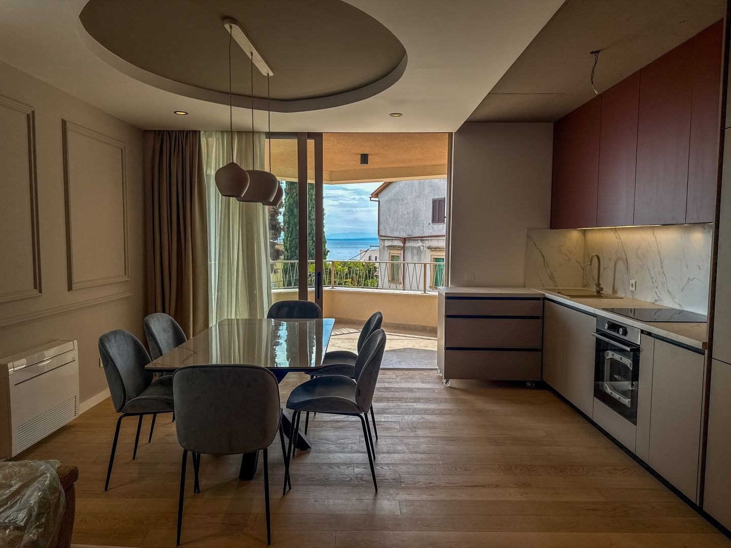 OPATIJA, ZENTRUM – größere Wohnung in einem luxuriösen Neubau mit Aussicht und Garage, nur 200 m vom Lungomare entfernt. Wir präsentieren eine einzigartige Wohnung im Zentrum von Opatija, mit zwei Balkonen, nur 150 m Luftlinie vom Meer entfernt. Dieses Luxus-Satn ist mit Luxus und Funktionalität verbunden und besteht aus einem offenen Wohnzimmer mit einer eleganten Küche und einem Esszimmer – der perfekte Ort, um sich mit Familie und Freunden zu treffen. Zwei Schlafzimmer mit eigenem Bad und Ankleidezimmer sind ebenfalls ein außergewöhnlicher Vorzug dieser luxuriösen Wohnung, und beide Schlafzimmer haben Zugang zu einem bezaubernden 5 m2 großen Balkon. Genießen Sie die frische Luft und den wunderschönen Blick auf das Meer und die Kvarner-Bucht auf der überdachten Terrasse von 6,42 m2, die vom Wohnzimmer aus zugänglich ist. Darüber hinaus bietet diese Immobilie höchsten Komfort mit Fußbodenheizung und Daikin-Wärmepumpe, hochwertiger Schuco ALU-Zimmerei, Fliesen namhafter italienischer Hersteller sowie erstklassigem Parkett. Der Raum ist mit einbruchhemmenden Türen, einer Alarmanlage und einer Video-Gegensprechanlage gesichert. Mit zwei großen Garagenstellplätzen steht Ihr Auto immer sicher da. Dieses exklusive Anwesen befindet sich in einer fantastischen Lage unter Nova Cesta, nur 150 Meter vom Meeresufer entfernt und gewährleistet die perfekte Balance zwischen Ruhe und Nähe zu allen Annehmlichkeiten. Das Zentrum von Opatija ist nur wenige Gehminuten entfernt und der Strand Slatina und Lido liegen in der Nähe der Wohnung, während alle dazugehörigen Einrichtungen wie die Lungomare-Promenade, die Opatija-Sommerbühne und das Gervais-Kulturzentrum ebenfalls nur wenige entfernt sind Minuten zu Fuß entfernt, sodass Sie nicht mit dem Auto fahren müssen. Verpassen Sie nicht die Gelegenheit, diese unglaubliche Immobilie im Zentrum von Opatija zu kaufen.