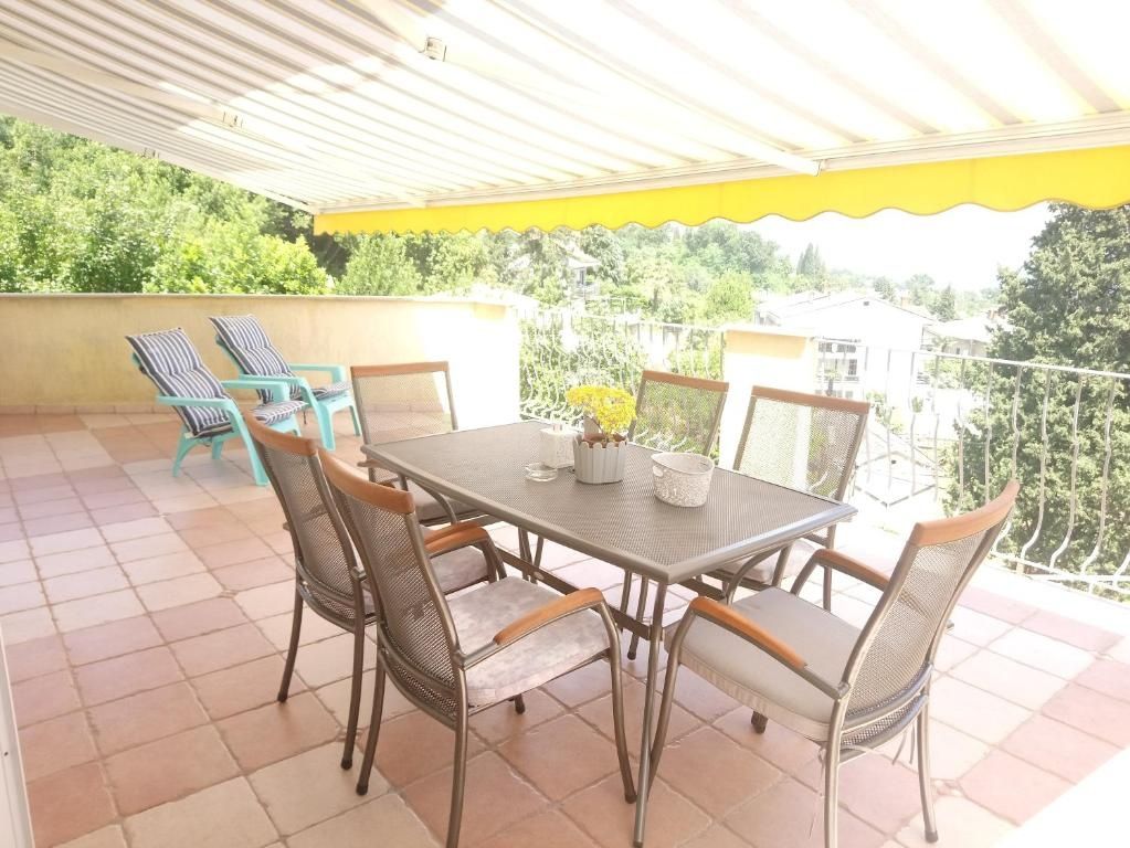 OPATIJA, ZENTRUM – Langzeitmiete mit Meerblick, Parkplatz, Zentrum von Opatija Eine exklusive Wohnung zur Miete im Zentrum von Opatija, 75 m² mit einer zusätzlichen großen Terrasse von 30 m², gelegen im Hochparterre mit wunderschönem, freiem Blick auf das Meer und die gesamte Kvarner Bucht. Die Wohnung ist wunderschön eingerichtet und voll möbliert und besteht aus einem geräumigen Wohnzimmer, das mit der Küche und dem Esszimmer verbunden ist, einem Flur, zwei Schlafzimmern, einem Badezimmer und einer zusätzlichen kleinen Toilette. Ein besonderer Wert dieser Wohnung ist die große Terrasse, von der sich ein beeindruckender Blick auf die Kvarner Bucht bietet. Schöne Schiebewände sorgen für viel Licht und die Atmosphäre eines mediterranen Lebensstils. Das nach Süden ausgerichtete Schlafzimmer bietet ebenfalls Meerblick und direkten Zugang zur Terrasse. Die Wohnung ist mit Klimaanlage in jedem Zimmer und norwegischen Heizkörpern in Bad und Toilette ausgestattet. Ein privater Parkplatz und eine Garage stehen zur Verfügung. Der Preis für die Langzeitmiete beträgt 2000 EUR pro Monat. Die Wohnung ist ab dem 01.10.2025 verfügbar. Diese Immobilie ist ein ideales Zuhause für diejenigen, die Ruhe, Komfort und tägliches Vergnügen mit Meerblick suchen. Um einen Besichtigungstermin zu vereinbaren, rufen Sie den Makler an.
