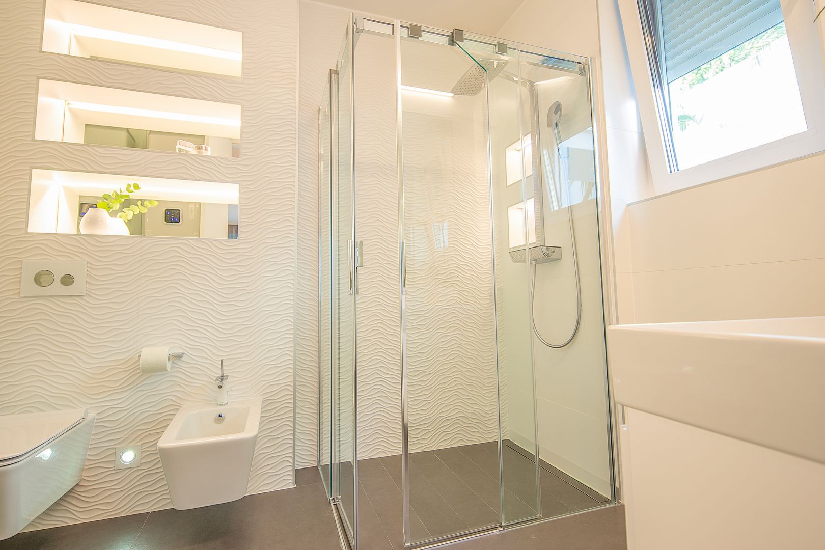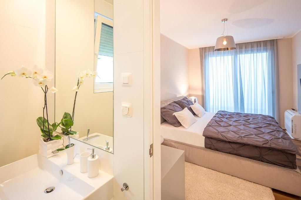 OPATIJA, ZENTRUM – Langfristige Miete einer luxuriösen Wohnung in einem Neubau mit Pool, Meerblick und in der Nähe von Opatija Eine luxuriös möblierte 2-Zimmer-Wohnung in Opatija mit 105 m² Wohnfläche steht zur Vermietung. Sie verfügt über einen Garten und eine wunderschöne Terrasse mit spektakulärem Meerblick. Die Wohnung ist wie folgt aufgeteilt: Flur, 2 geräumige Schlafzimmer, 2 elegante Badezimmer, ein Ankleidezimmer, ein Wohnzimmer mit moderner Küche aus hochwertigen Materialien und ein Esszimmer. Das Besondere an dieser Wohnung ist die traumhaft große Terrasse mit Panoramablick auf das Meer und die Kvarner-Bucht. Hier können Sie wunderbar Ihren Kaffee genießen oder einfach entspannen. Zur Wohnung gehören außerdem zwei Garagenstellplätze sowie ein Abstellraum, was für praktische und ordentliche Wohnverhältnisse sorgt. Die Wohnung wird mit einer Wärmepumpe beheizt und verfügt über Klimaanlagen. Sie befindet sich in einem Wohngebäude mit einem gepflegten, umzäunten Garten und einem Gemeinschaftspool für die Bewohner. Die Wohnung wird inklusive Designermöbeln verkauft. Diese neu gebaute Wohnung bietet großzügigen Wohnraum mit hochwertiger Ausstattung und atemberaubendem Meerblick und liegt nur 150 Meter vom Meer entfernt. Die monatliche Miete beträgt 2.800 € zzgl. Nebenkosten.