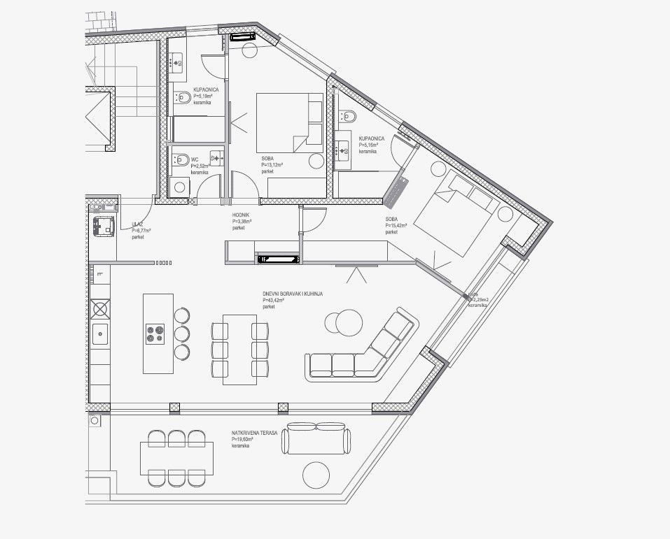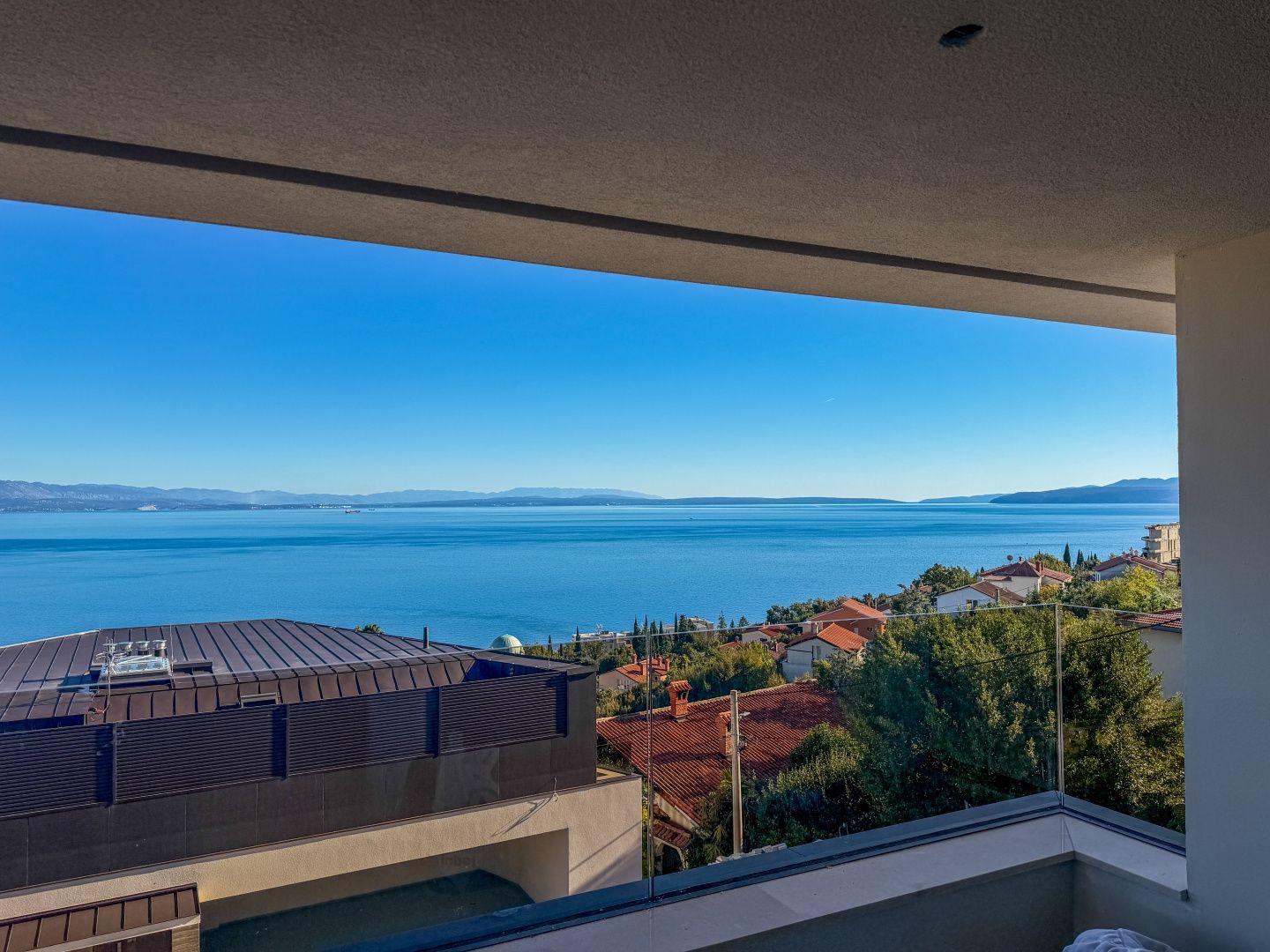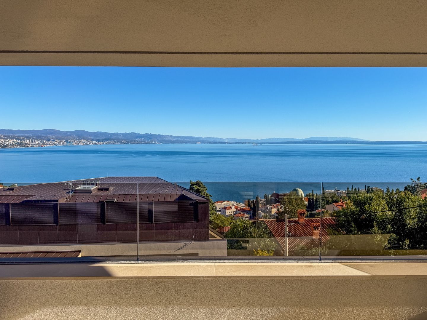 OPATIJA, ZENTRUM – Luxusapartment in einem Neubau mit Wellnessbereich, Fitnessstudio und Garage Exklusive Gelegenheit bei Real Estate: Wohnung Nr. 4 mit einer Wohnfläche von 101,39 m² und einer 9,78 m² großen Terrasse mit herrlichem Meerblick steht zum Verkauf. Die Wohnung ist bequem mit dem Aufzug erreichbar. Von dort gelangen Sie in einen großzügigen, offenen Wohnbereich mit Küche, Essbereich und Zugang zur Terrasse. Im Untergeschoss befinden sich zwei Schlafzimmer mit jeweils eigenem Bad. Beide Zimmer bieten Zugang zu einer geräumigen Terrasse mit traumhaftem Ausblick – ideal zum Entspannen und geselligen Beisammensein. Zur Wohnung gehören zwei Parkplätze, die gemäß Preisliste zusätzlich berechnet werden. Optional können weitere Parkplätze erworben werden. Dieses moderne Neubaugebäude bietet erstklassige Bauqualität und Ausstattung: - Luftrückgewinnung mit Pollen- und Allergenfilter - Fußbodenheizung in allen Räumen und energieeffiziente Heizung über Wärmepumpen - Fenster und Türen aus braunem Aluminium mit dreifach verglastem IZO-Glas - Smart-Home-System mit Zugangskontrolle (ABB Free@home) - Sanitäreinrichtungen von Hansgrohe, Eichenparkett und Sicherheitstüren - elektrische Aluminium-Jalousien, LED-Beleuchtung und Videoüberwachung der Gemeinschaftsbereiche - gemeinschaftlicher Fitness- und Wellnessbereich - 260 cm Deckenhöhe und ein leiser OTIS-Aufzug mit luxuriöser Kabine Eine perfekte Gelegenheit, eine Luxuswohnung im Herzen von Opatija zu erwerben – in einem Neubau, der Komfort, Technologie und eleganten mediterranen Stil mit einem atemberaubenden Ausblick vereint. Für eine Besichtigung kontaktieren Sie bitte einen unserer vertrauenswürdigen Makler – Beratung auf Deutsch möglich.