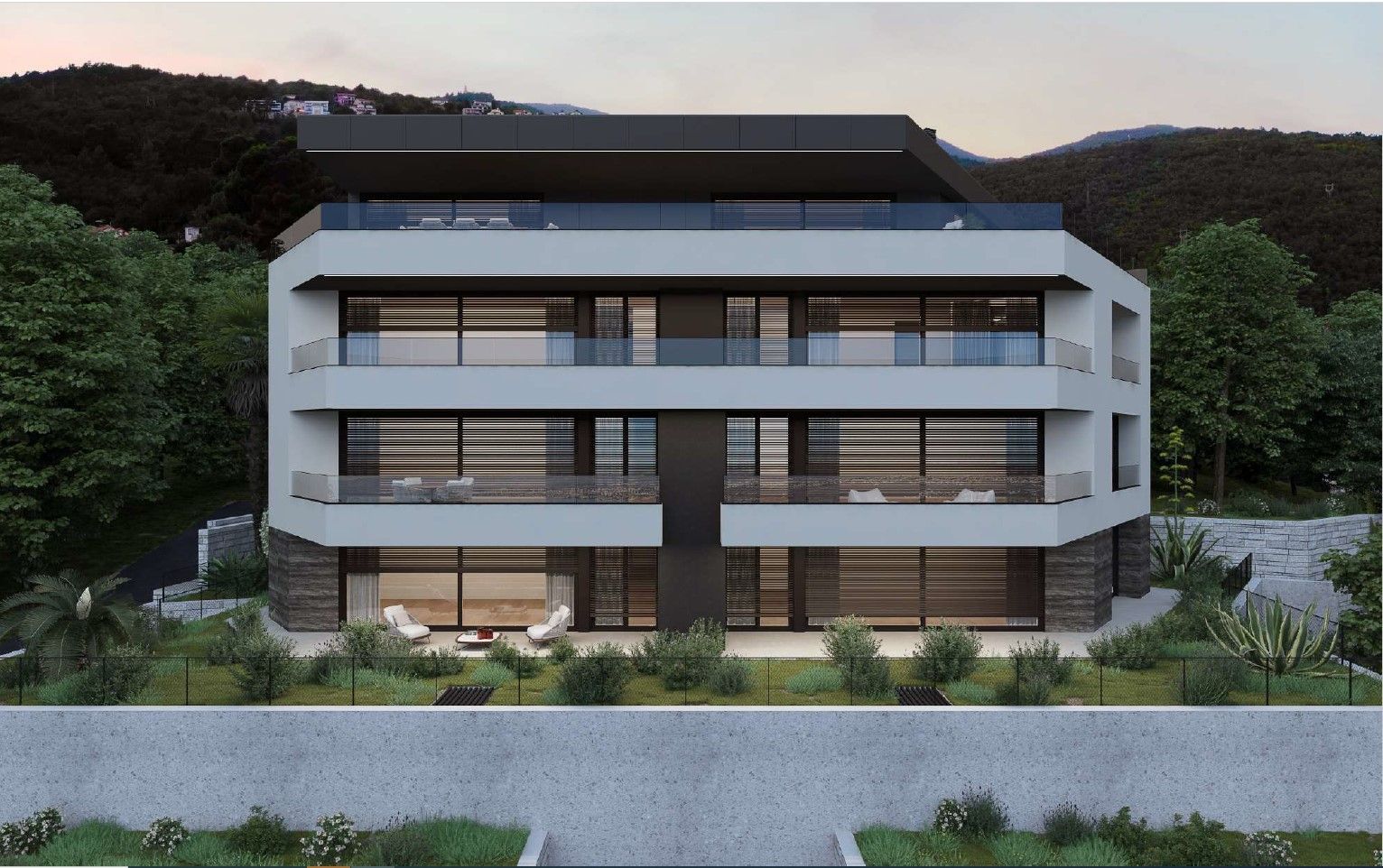 OPATIJA, ZENTRUM – Neubauwohnung in Opatija mit Garage, privatem Garten und hochwertiger Ausstattung Exklusive Gelegenheit bei Dux Real Estate: Wohnung A1 mit 123 m² Wohnfläche zu verkaufen. Davon entfallen 11 m² auf eine überdachte Terrasse, 7 m² auf eine nicht überdachte Terrasse und 9 m² auf einen Garten. Die Wohnung besteht aus: Eingangsbereich, Flur, Wohnzimmer mit Küche, 2 Schlafzimmern, 2 Badezimmern und einem separaten WC. Vom Wohnzimmer und der Küche gelangt man auf eine großzügige Terrasse und in den Garten. Zur Wohnung gehören 2 Parkplätze, die auf Anfrage zusätzlich berechnet werden können. Es besteht die Möglichkeit, weitere Parkplätze zu erwerben. Eine perfekte Gelegenheit, eine Wohnung in Opatija zu kaufen, insbesondere eine so luxuriöse Wohnung in einem Neubau mit herrlichem Meerblick.