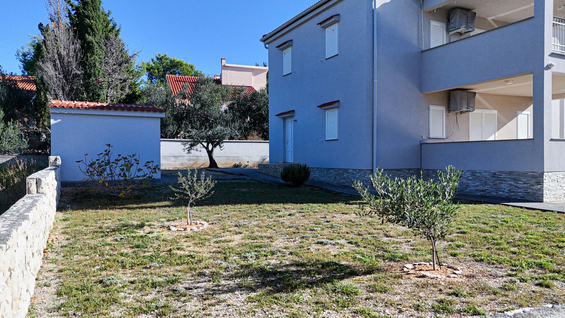 INSEL RAB, BARBAT – Haus in Toplage, 100 m vom Meer entfernt Nur 100 Meter vom Meer entfernt, in einem ruhigen Teil von Barbat, befindet sich dieses freistehende Haus mit Zugang zum Meer und eigener Boje für ein Boot, perfekt für den mediterranen Lebensstil. Das Haus mit einer Nettofläche von 143 m² befindet sich auf einem 700 m² großen Grundstück und erstreckt sich über zwei Etagen. Die Wohnfläche im Erdgeschoss beträgt 63 m² und besteht aus einem geräumigen Wohnzimmer, verbunden mit Küche und Esszimmer, von wo aus man auf eine große, überdachte Terrasse von 22 m² gelangt. Im Erdgeschoss befinden sich außerdem ein Schlafzimmer, ein Badezimmer und ein Technikraum, der ebenfalls von außen zugänglich ist. Im ersten Stock mit einer Fläche von 68 m² befinden sich drei Schlafzimmer, jedes mit viel Tageslicht, warmen Holzböden, hochwertigem Laminat und einer geräumigen, 22 m² großen Terrasse mit atemberaubendem Meerblick. Zwei der Schlafzimmer haben ein eigenes Badezimmer, während das dritte Schlafzimmer das zweite Badezimmer nutzt. Alle Zimmer haben Zugang zu einer überdachten Terrasse. Der Hof bietet mit seinem angelegten Garten und mehreren Parkplätzen einen idealen Ort zum Entspannen und für geselliges Beisammensein. Es besteht die Möglichkeit, einen Swimmingpool zu bauen. Im Hof befindet sich außerdem ein legalisiertes Nebengebäude, das sich ideal als Abstellraum oder kleine Taverne eignet. Das Haus ist komplett möbliert und ausgestattet – Klimaanlagen in jedem Zimmer, Solaranlage für den Eigenbedarf bis zu 6 kW, Waschmaschine, Stadtwasseranschluss und Strom. Baujahr 2004, Renovierung 2024. Das Anwesen verfügt über alle notwendigen Unterlagen – Bau- und Nutzungsgenehmigungen sowie einen ordnungsgemäßen Eigentumstitel. Zur Immobilie gehört außerdem eine Boje für ein Boot. Es gibt eine Zufahrtsstraße zum Meer, die nur von benachbarten Grundstücken genutzt wird und deren Durchfahrt erlaubt ist. In der Nähe aller Annehmlichkeiten: Geschäfte, Schulen, Kindergärten, Postämter, Banken und Sportanlagen. EMPFEHLUNG für einen Aufenthalt am Meer! *** Liebe
