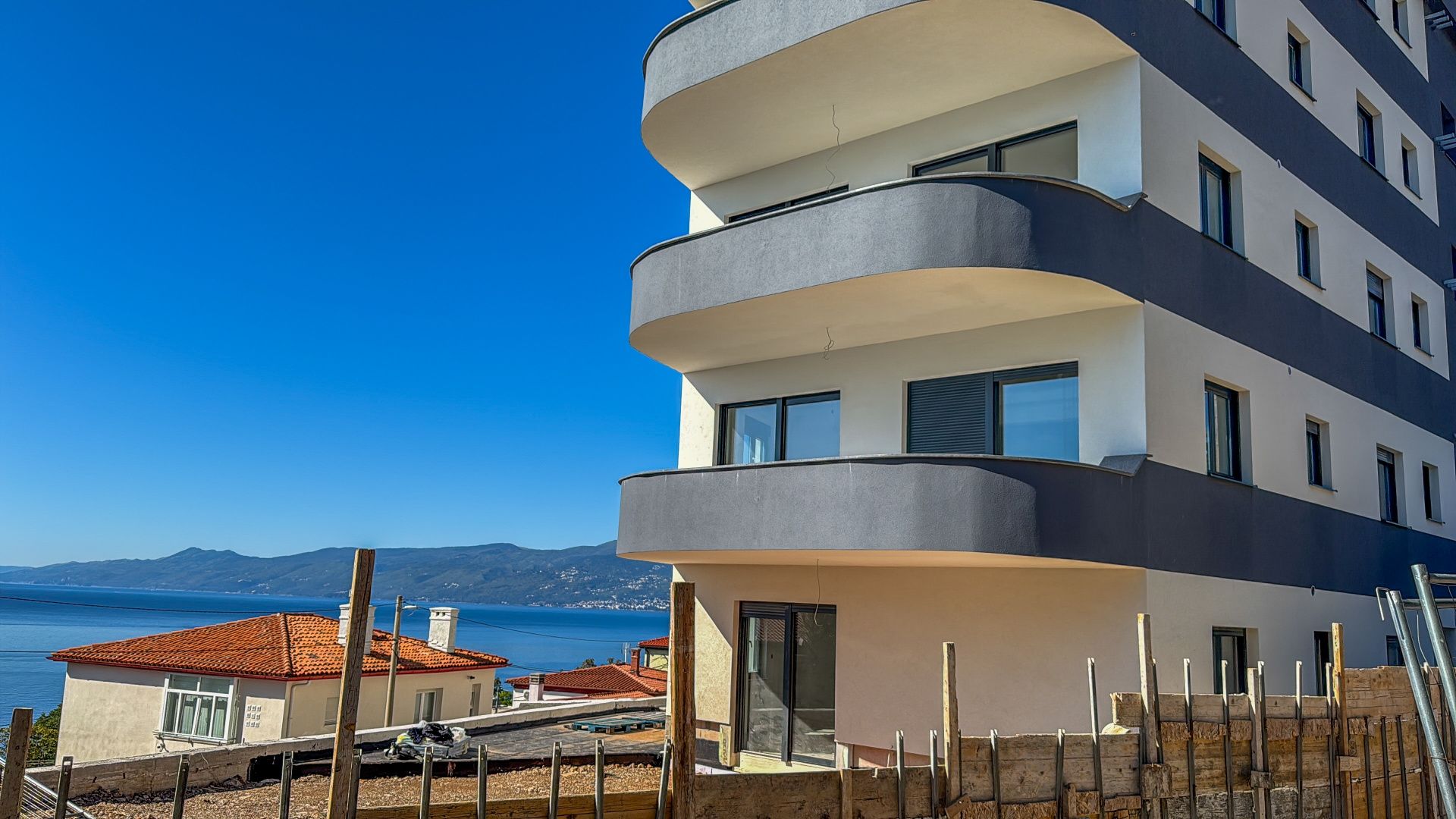 RIJEKA, KANTRIDA – 140 m² große Wohnung in einem luxuriösen Neubau, nur 250 Meter vom Meer entfernt, mit Garage und Panoramablick auf das Meer