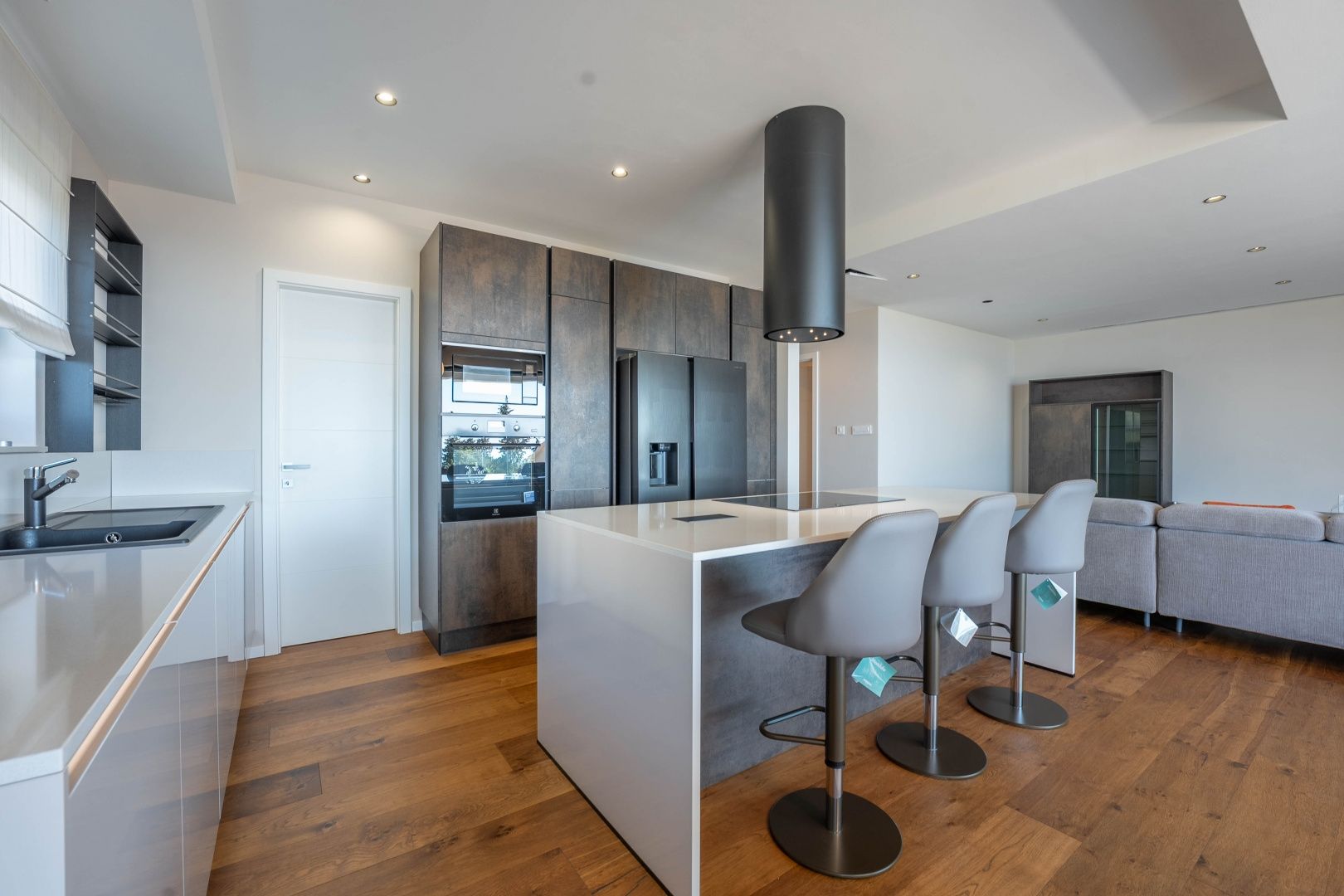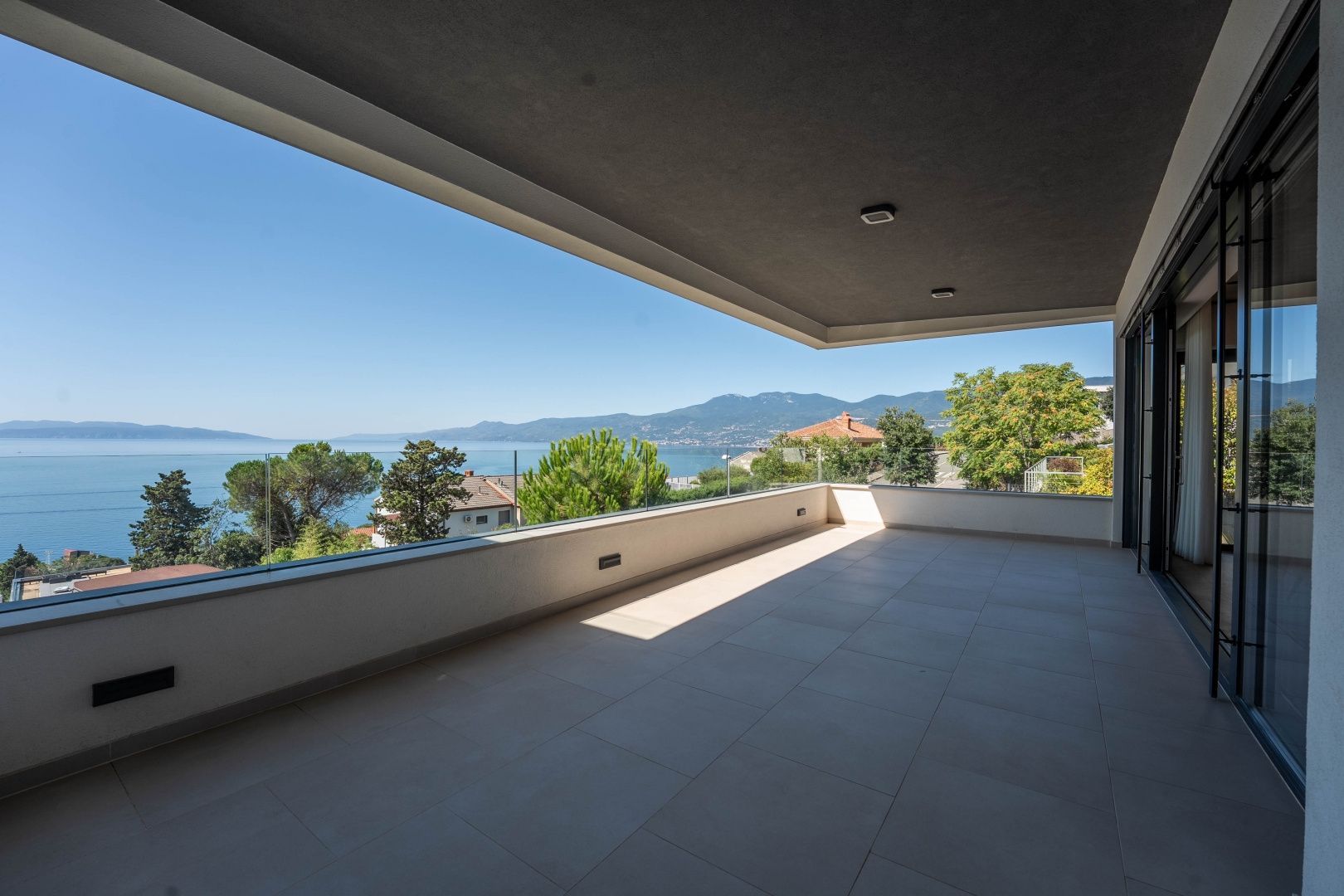 RIJEKA, KANTRIDA – Luxusetage in einem Neubau, Panoramablick aufs Meer, exklusiv möblierte Wohnung mit Terrasse Im DUX-Angebot präsentieren wir Ihnen eine hervorragende Gelegenheit zur Langzeitmiete. Es handelt sich um eine luxuriöse Etage in einem hochwertigen Neubau in begehrter Lage von Rijeka und Opatija – Marčeljeva Draga. Das kleinere Gebäude verfügt über drei großzügige Wohnungen mit gemeinsamem Eingang, Garten, überdachtem Parkplatz und Aufzug. Die 160 m² große Wohnung im ersten Stock bietet drei geräumige Schlafzimmer und drei modern ausgestattete Badezimmer. Zur Wohnung gehören ein 60 m² großer Privatgarten, eine 25 m² große Terrasse und zwei Parkplätze. Ein eigener Wellnessbereich mit Dusche, Whirlpool und finnischer Sauna lädt zum Entspannen ein. Wohnung und Terrassen bieten einen atemberaubenden Meerblick und vereinen Luxus und Komfort auf perfekte Weise. Besonders hervorzuheben sind die offene Raumgestaltung, die großen Schiebewände in den Zimmern und im Wohnzimmer sowie der atemberaubende, unvergleichliche Meerblick. Dieses Haus besticht durch folgende Ausstattungsmerkmale: - Fußbodenheizung und Wärmepumpe - Deckenventilator (nicht raumhoch) - Aluminiumfenster und -türen - Sauna und Whirlpool im Badezimmer - Designermöbel (unbenutzt) - Aufzug - Überdachter Parkplatz Die Immobilie befindet sich im Besitz eines Unternehmens und die Mehrwertsteuer ist im Mietpreis enthalten. Sie wird mit neuen Möbeln wie abgebildet vermietet. Der Mieter muss eine juristische Person oder ein umsatzsteuerpflichtiges Unternehmen sein. Die Miete beträgt 3.000 € zzgl. MwSt. und Nebenkosten. Die Mindestmietdauer beträgt zwei Jahre. Die Lage ist ideal: Das Haus liegt in einer ruhigen Sackgasse, die ausschließlich den Anwohnern vorbehalten ist. Vor dem Gebäude bietet sich ein unverbaubarer Blick durch bewohnte Häuser und Bäume – ein Ausblick, der für immer erhalten bleibt. Das nächste Geschäft ist fußläufig auf ebener Strecke erreichbar, und das Meer ist in weniger als 10 Minuten über einen leichten Abstieg zu erreichen. Diese Lage ist bei vielen Menschen aus Rijeka und Opatija sehr begehrt. Um eine Besichtigung zu vereinbaren, wenden Sie sich bitte an einen vertrauenswürdigen Makler – eine Beratung auf Deutsch ist möglich.