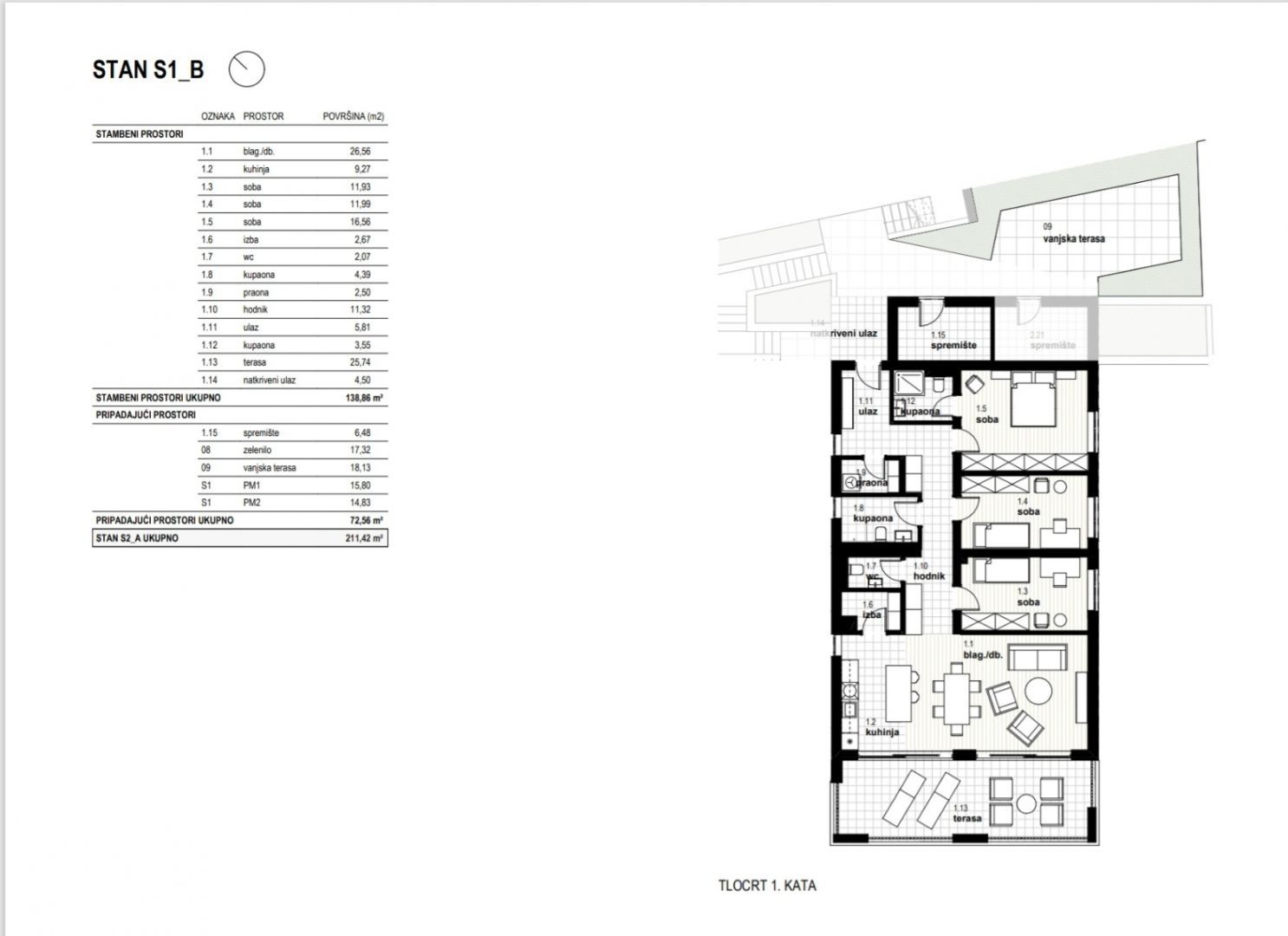 RIJEKA, KOSTRENA – exklusive Wohnung 138,86 m2, Neubau mit wunderschönem Meerblick + Garten 72,56 m2 – S1-B Wir bieten Ihnen eine Immobilie, die Ihnen modernes Design und Eleganz, Komfort und erstklassige Ausstattung bietet und sich in einer schönen, ruhigen Lage in der Nähe von öffentlichen Verkehrsmitteln, Schulen, Kindergärten, Einkaufszentren und zehn Autominuten von Rijeka befindet. Der Komplex aus 4 Wohnhäusern mit insgesamt 8 Wohnungen liegt nördlich der Adria-Autobahn im Gebiet „Zelena Kostrena“ von wo aus sich ein wunderschöner Ausblick auf die gesamte Kvarner Bucht bietet. In unmittelbarer Nähe gibt es 10 Kilometer gepflegte Wander-, Rad- und Fitnesswege, die durch die höchsten Teile von Kostrena vom Gipfel Solin bis zum Gipfel Sopalj führen. Die Zufahrt zu den Häusern erfolgt über die obere Straße, wobei eine Verbesserung und Erweiterung der bestehenden Straße geplant ist. Zu jedem Haus gehören vier Außenstellplätze, das heißt zwei Stellplätze pro Wohneinheit. Jedes Haus besteht aus zwei Wohnungen. Dabei liegen die Wohnungen der oberen beiden Grundstücke übereinander, während die Wohnungen der unteren beiden Grundstücke nebeneinander liegen. Zu jeder Wohnung gehört ein Gartenanteil. HAUS B Wohnung S1 - B: WOHNFLÄCHEN: - Wohnzimmer / Esszimmer 26,56 - Küche 9,27 - Schlafzimmer 11,93 - Schlafzimmer 11,99 - Schlafzimmer 16,56 - Schrank 2,67 - Toilette 2,07 - Badezimmer 4,39 - Waschküche 2,50 - Flur 11,32 - Eingang 5,81 - Badezimmer 3,55 - Terrasse 25,74 - überdachter Eingang 4,50 WOHNFLÄCHEN GESAMT: 138,86 m² SOZIALE FLÄCHEN: - Abstellraum 6,48 - Begrünung 17,32 - Außenterrasse 18,13 - Stellplatz 1 15,80 - Stellplatz 2 14,83 SOZIALE FLÄCHEN GESAMT: 72,56 m² WOHNUNG S1-B GESAMT: 211,42 m² Dieses luxuriöse Apartment ist auf maximalen Komfort ausgelegt. AUSSTATTUNG: Das Haus, in dem sich die Wohnung befindet, ist gut gebaut und luxuriös ausgestattet, alle eingebauten Materialien, Boden- und Wandbeläge entsprechen den höchsten Standards. - 10 cm starke Fassadendämmung - Fußbodenheizung - Wärmepumpen - hochwertige Aluminium-Tischlerei. Zur Wohnung gehört ein eigener Garten und 2 PKW-Stellplätze. PREIS: Der angegebene Preis bezieht sich auf eine komplett fertiggestellte schlüsselfertige Anlage, ohne Möblierung. Der Preis beinhaltet die gesetzliche Mehrwertsteuer, der Käufer ist von der Zahlung der Grundsteuer befreit. Bei einem Kauf von einem in Kroatien registrierten Unternehmen ist nach dem Verkauf eine volle Mehrwertsteuerrückerstattung möglich. Sauberes und ordentliches Anwesen. Sicherlich eine wunderschöne Immobilie für luxuriöses Familienleben, aber auch als Investition in Form von Elitetourismus geeignet. EINZIGARTIGES ANWESEN, DAS IHRE AUFMERKSAMKEIT UNBEDINGT WERT IST UND IN EINER TOLLEN LAGE LIEGT!!! KOSTRENA Kostrena ist eine alte, beliebte Küstenstadt, die erstmals zu Beginn des 15. Jahrhunderts erwähnt wurde. Im Jahr 1874 erlangte die Stadt erstmals ihre kommunale Unabhängigkeit, die sie jedoch nur für sehr kurze Zeit, nämlich nur zwei Jahre, behielt. Es ist in zwei Teile gegliedert, St. Lucia und St. Barbara, nach den Namen zweier Kirchen, die es in dieser Gegend gibt. Kostrena liegt in unmittelbarer Nähe der Stadt Rijeka, eingerahmt von der Bucht Martinšćica und der Bucht von Bakar. Die Halbinsel Kostrena ist etwa 10 Kilometer lang und fällt sanft zur Küste hin ab. Auf seiner gesamten Länge gibt es wunderschöne Strände, die im Sommer von Tausenden von Badegästen besucht werden. Die bekanntesten und am meisten besuchten sind jene in der Bucht von Žurkovo, gefolgt von Smokvinovo, Svežanj, Spužvina, Podražica, Nova voda und Perilo. Kostrena besteht aus etwa zwanzig Siedlungen, von denen viele nach Familien benannt wurden. Die bevölkerungsreichsten Orte sind heute Vrh Martinšćice, Glavani und Sv. Lucija, Rožmanići, Doričići und Paveki. Ein charakteristisches Karstgebiet mit mediterraner Vegetation und der berühmten Kostrena-Grotte sowie ein mildes Klima, das manchmal starken Bora-Böen weicht, sind die Merkmale dieser Region.