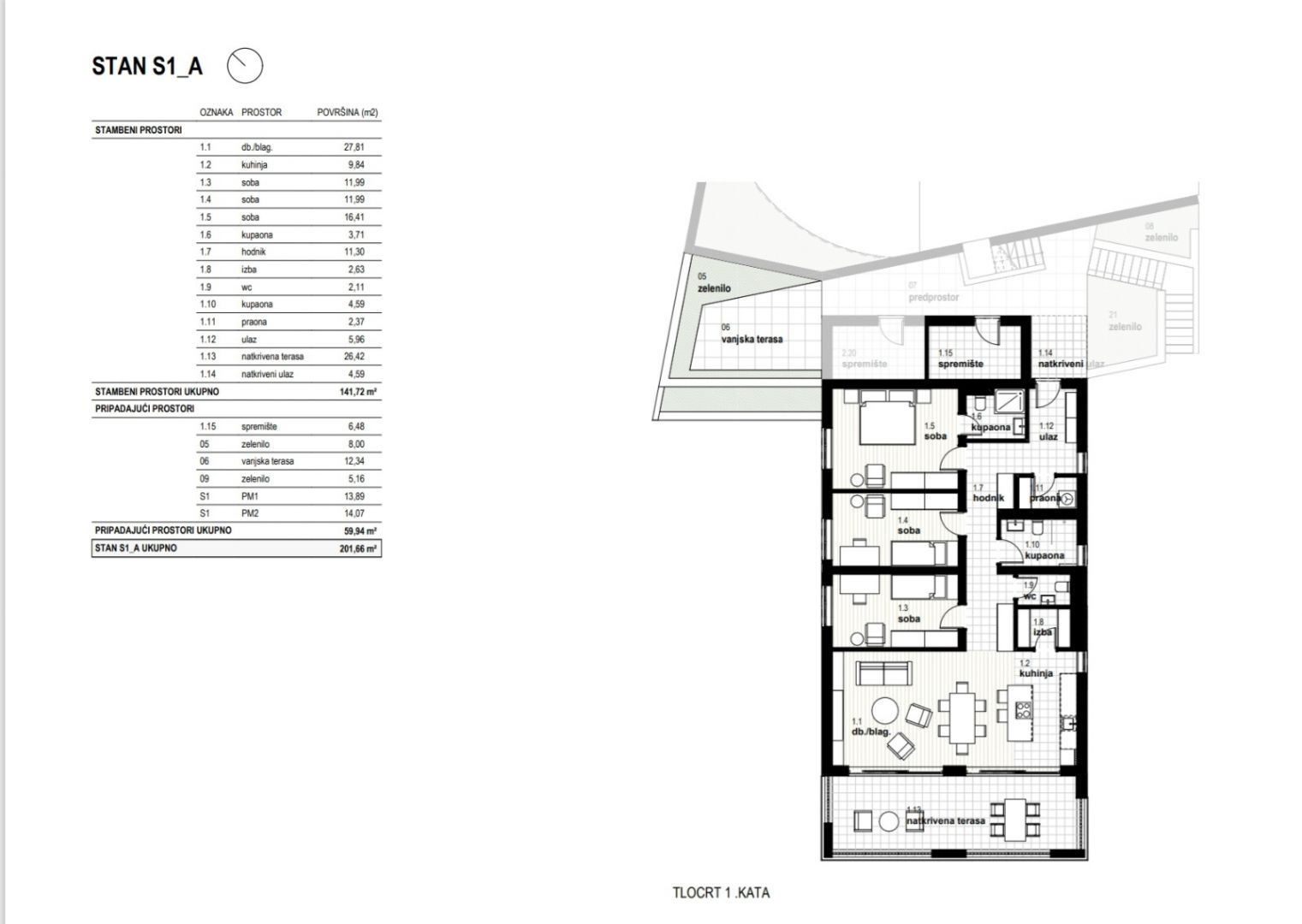 RIJEKA, KOSTRENA – exklusive Wohnung 141,72 m², Neubau mit wunderschönem Meerblick + Garten 59,94 m² – S1-A Wir bieten Ihnen eine Immobilie, die Ihnen modernes Design und Eleganz, Komfort und erstklassige Ausstattung bietet und sich in einer schönen, ruhigen Lage in der Nähe von öffentlichen Verkehrsmitteln, Schulen, Kindergärten, Einkaufszentren und zehn Autominuten von Rijeka befindet. Der Komplex aus 4 Wohnhäusern mit insgesamt 8 Wohnungen liegt nördlich der Adria-Autobahn im Gebiet „Zelena Kostrena“ von wo aus sich ein wunderschöner Ausblick auf die gesamte Kvarner Bucht bietet. In unmittelbarer Nähe gibt es 10 Kilometer gepflegte Wander-, Rad- und Fitnesswege, die durch die höchsten Teile von Kostrena vom Gipfel Solin bis zum Gipfel Sopalj führen. Die Zufahrt zu den Häusern erfolgt über die obere Straße, wobei eine Verbesserung und Erweiterung der bestehenden Straße geplant ist. Zu jedem Haus gehören vier Außenstellplätze, das heißt zwei Stellplätze pro Wohneinheit. Jedes Haus besteht aus zwei Wohnungen. Dabei liegen die Wohnungen der oberen beiden Grundstücke übereinander, während die Wohnungen der unteren beiden Grundstücke nebeneinander liegen. Zu jeder Wohnung gehört ein Gartenanteil. HAUS A Wohnung S1 - A: WOHNFLÄCHEN: - Wohnzimmer / Esszimmer 27,81 - Küche 9,84 - Zimmer 11,99 - Zimmer 11,99 - Zimmer 16,41 - Badezimmer 3,71 - Flur 11,30 - Schrank 2,63 - Toilette 2,11 - Badezimmer 4,59 - Waschküche 2,37 - Eingang 5,96 - überdachte Terrasse 26,42 - überdachter Eingang 4,59 WOHNFLÄCHEN GESAMT: 141,72 m² PARTNERFLÄCHEN: - Abstellraum 6,48 - Begrünung 8,00 - Außenterrasse 12,34 - Begrünung 5,16 - Stellplatz 1 13,89 - Stellplatz 2 14,07 PARTNERFLÄCHEN GESAMT: 59,94 m² WOHNUNG S1- A GESAMTFLÄCHE (m2): 201,66 m² Diese luxuriöse Wohnung ist auf maximalen Komfort ausgelegt. AUSSTATTUNG: Das Haus, in dem sich die Wohnung befindet, ist gut gebaut und luxuriös ausgestattet, alle eingebauten Materialien, Boden- und Wandbeläge entsprechen den höchsten Standards. - 10 cm dicke Fassadendämmung - Fußbodenheizung - Wärmepumpen - hochwertige Aluminium-Tischlerei. Zur Wohnung gehört ein eigener Garten und 2 PKW-Stellplätze. PREIS: Der angegebene Preis bezieht sich auf eine komplett fertiggestellte schlüsselfertige Anlage, ohne Möblierung. Der Preis beinhaltet die gesetzliche Mehrwertsteuer, der Käufer ist von der Zahlung der Grundsteuer befreit. Bei einem Kauf von einem in Kroatien registrierten Unternehmen ist nach dem Verkauf eine volle Mehrwertsteuerrückerstattung möglich. Sauberes und ordentliches Anwesen. Sicherlich eine wunderschöne Immobilie für luxuriöses Familienleben, aber auch als Investition in Form von Elitetourismus geeignet. EINZIGARTIGES ANWESEN, DAS IHRE AUFMERKSAMKEIT UNBEDINGT WERT IST UND IN EINER TOLLEN LAGE LIEGT!!! KOSTRENA Kostrena ist eine alte, beliebte Küstenstadt, die erstmals zu Beginn des 15. Jahrhunderts erwähnt wurde. Im Jahr 1874 erlangte die Stadt erstmals ihre kommunale Unabhängigkeit, die sie jedoch nur für sehr kurze Zeit, nämlich nur zwei Jahre, behielt. Es ist in zwei Teile gegliedert, St. Lucia und St. Barbara, nach den Namen zweier Kirchen, die es in dieser Gegend gibt. Kostrena liegt in unmittelbarer Nähe der Stadt Rijeka, eingerahmt von der Bucht Martinšćica und der Bucht von Bakar. Die Halbinsel Kostrena ist etwa 10 Kilometer lang und fällt sanft zur Küste hin ab. Auf seiner gesamten Länge gibt es wunderschöne Strände, die im Sommer von Tausenden von Badegästen besucht werden. Die bekanntesten und am meisten besuchten sind jene in der Bucht von Žurkovo, gefolgt von Smokvinovo, Svežanj, Spužvina, Podražica, Nova voda und Perilo. Kostrena besteht aus etwa zwanzig Siedlungen, von denen viele nach Familien benannt wurden. Die bevölkerungsreichsten Orte sind heute Vrh Martinšćice, Glavani und Sv. Lucija, Rožmanići, Doričići und Paveki. Ein charakteristisches Karstgebiet mit mediterraner Vegetation und der berühmten Kostrena-Grotte sowie ein mildes Klima, das manchmal starken Bora-Böen weicht, sind die Merkmale dieser Region.