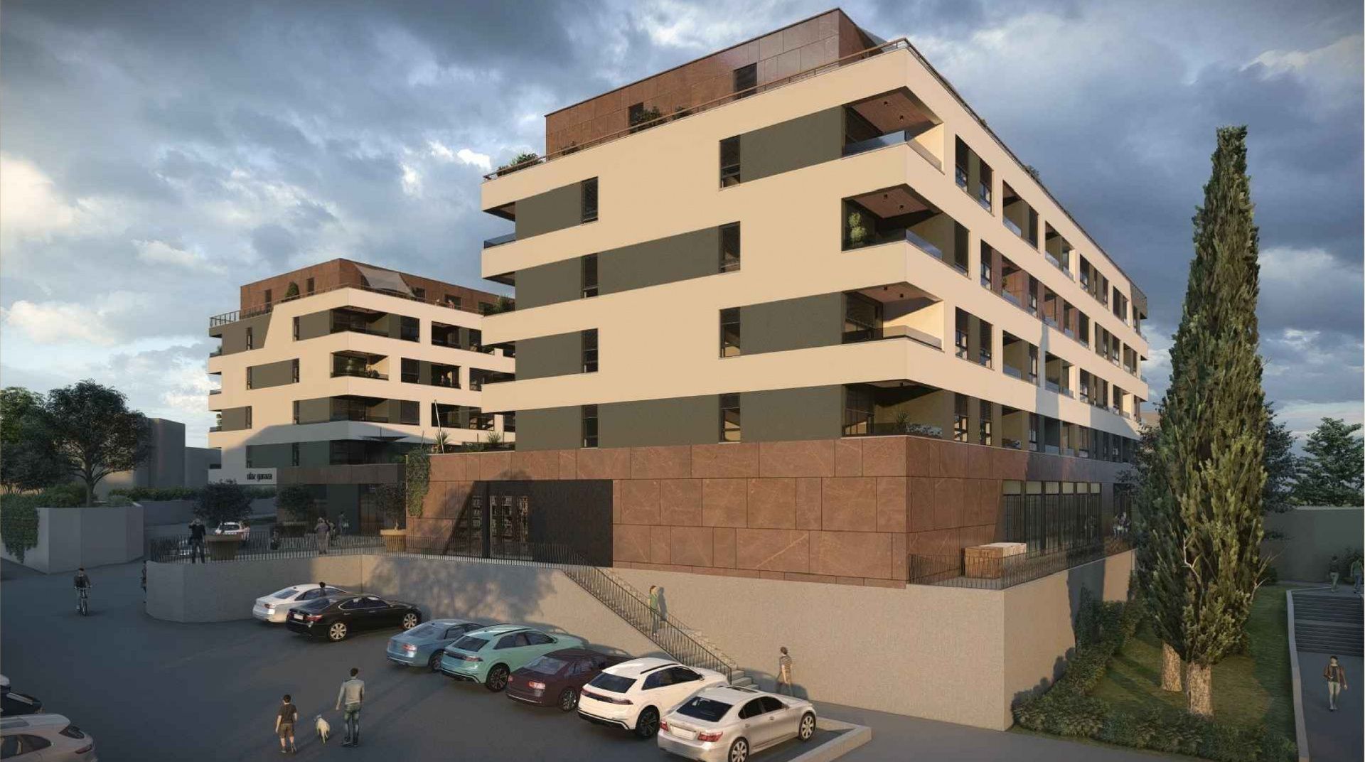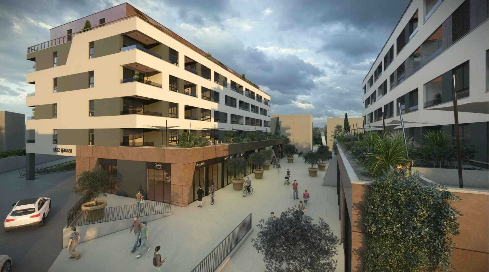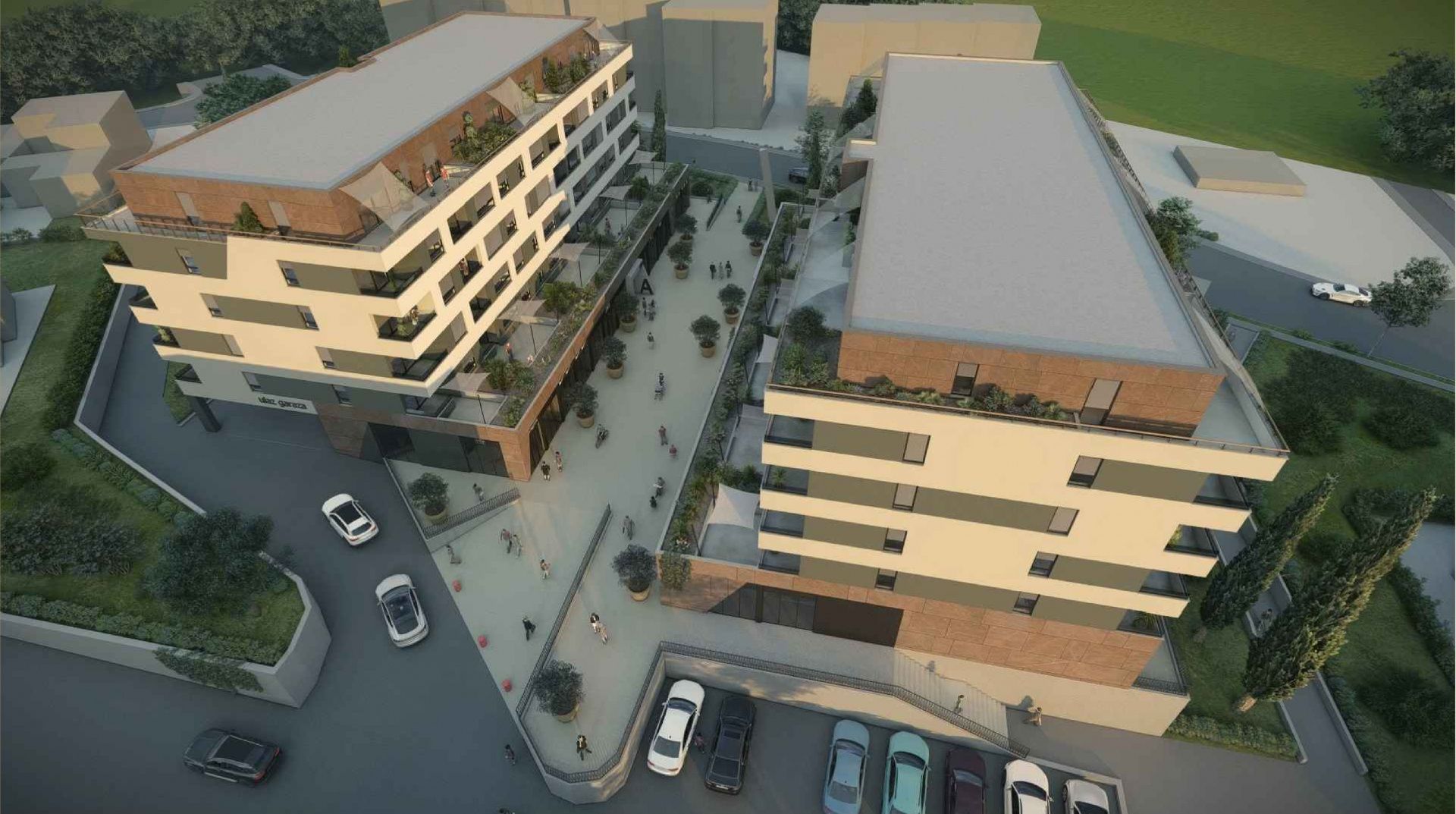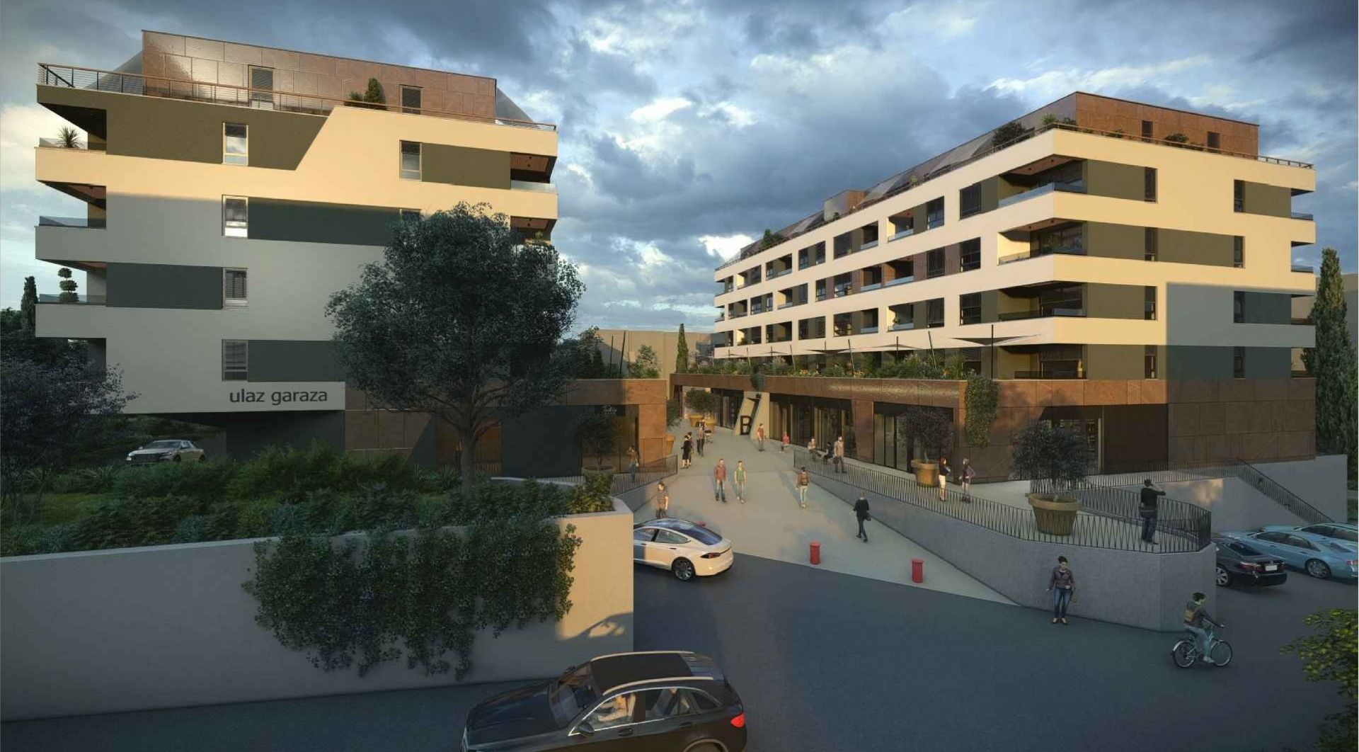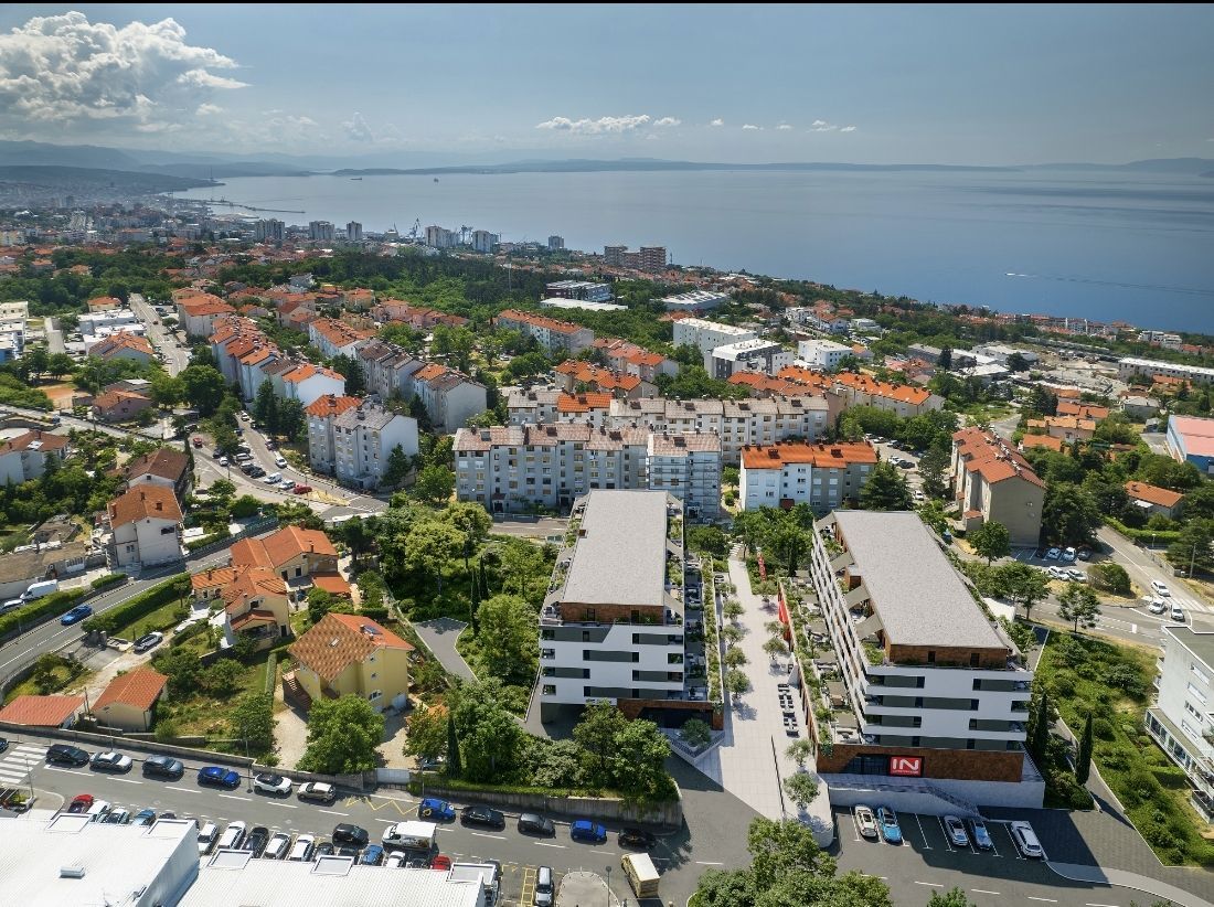 RIJEKA, SRDOČI – 1-Zimmer-Wohnung mit Wohnzimmer und 31 m² großer Terrasse in einem Neubau mit Garage Wir präsentieren einen modernen Wohn- und Geschäftskomplex in Srdoči. Das funktionale und zeitgemäße Gebäude umfasst drei Tiefgaragenetagen, ein Erdgeschoss mit Geschäftsräumen und fünf Wohnetagen. Der Komplex besteht aus zwei Gebäuden, die durch einen begrünten Fußgängerplatz miteinander verbunden sind. Dieser bietet den Bewohnern einen angenehmen Ort zum Verweilen und Austauschen. Im Erdgeschoss befinden sich Geschäftsräume, die die Lebensqualität durch Komfort und Serviceleistungen in unmittelbarer Nähe weiter verbessern. Wohnung B5 besteht aus einem Flur mit Garderobe, einem Badezimmer, einem Schlafzimmer und einem offenen Wohn-, Ess- und Küchenbereich. Sowohl das Schlafzimmer als auch das Wohnzimmer haben Zugang zur Loggia. Die Wohnung hat eine Bruttogeschossfläche von 72,14 m² und eine Nettogeschossfläche von 47,53 m². Zusätzlich verfügt das Gebäude über eine 5,37 m² große Loggia (berechnet: 4,03 m²) und eine unüberdachte Terrasse von 31,03 m² (berechnet: 7,76 m²). Insgesamt 104 Wohneinheiten verschiedener Typen verteilen sich auf die Etagen eins bis fünf. Garagenstellplätze, Abstellräume und Technikräume befinden sich auf drei Untergeschossen. Die Wohnungen sind in den Varianten 1S+DB, 2S+DB und 3S+DB verfügbar – von kompakten Apartments für Singles und Paare bis hin zu geräumigen Familienwohnungen. Der Grundriss jeder einzelnen Wohnung ist auf Anfrage erhältlich! Dieses Projekt liegt im Herzen von Srdoč, in einer der begehrtesten Lagen im Westen der Stadt. In unmittelbarer Nähe befinden sich zwei Grundschulen, Kindergärten, Sporthallen und -plätze, Geschäfte, Cafés, Restaurants, ein Einkaufszentrum, Spielplätze und die Bushaltestelle. Die Lage zeichnet sich außerdem durch die Nähe zu Opatija und die hervorragende Verkehrsanbindung aus. Die Wohnungen sind funktional und komfortabel gestaltet und zeichnen sich durch hochwertige Verarbeitung und langlebige Materialien aus. Sie verfügen über elektrische Fußbodenheizung mit Thermostaten in Wohn- und Badezimmern, Inverter-Klimaanlagen zum Heizen und Kühlen, erstklassige Keramikfliesen, Laminatböden in den Schlafzimmern, PVC-Fenster und -Türen mit Dreifachverglasung sowie Aluminium-Rollläden. Die Badezimmer sind mit Armaturen namhafter Hersteller, begehbaren Duschen und Unterputzspülkästen ausgestattet. Einbruch- und feuerfeste Eingangstüren sorgen für zusätzliche Sicherheit. Das Projekt Srdoči ist ein moderner Neubau mit durchdachten Grundrissen, hochwertiger Verarbeitung und einer praktischen, verkehrsgünstigen Lage – eines der attraktivsten Neubauprojekte im Westen der Stadt. Bei einer Besichtigung ist ein Maklervertrag zu unterzeichnen! berechnet.