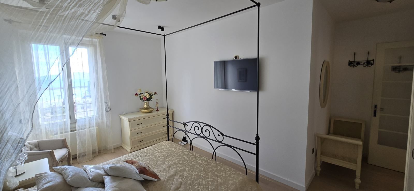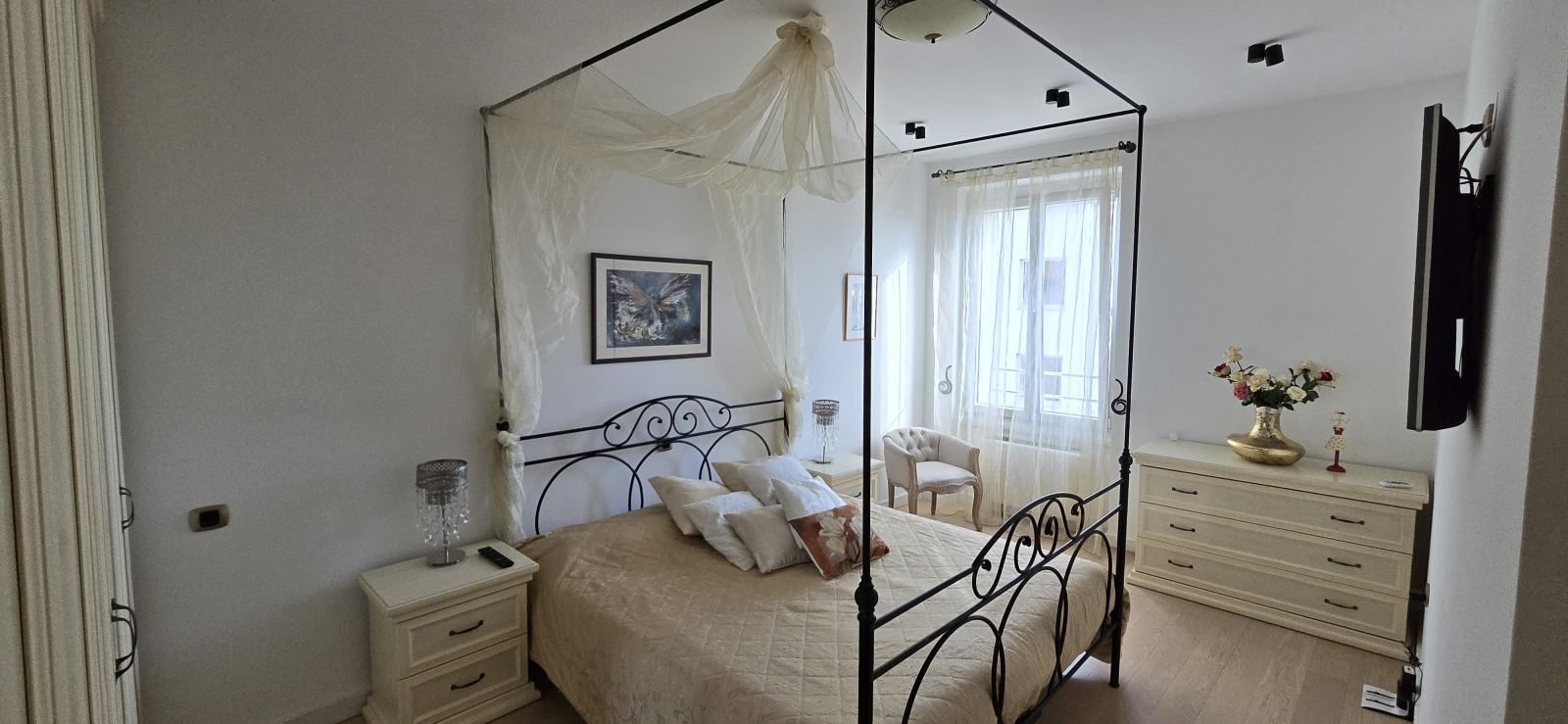 RIJEKA, ZENTRUM – Elegant eingerichtetes Familienapartment Im Herzen von Rijeka, in einer der begehrtesten Lagen der Stadt, befindet sich dieses elegante und komplett möblierte 98 m² große Apartment für Herren, das die ideale Kombination aus Komfort, Funktionalität und urbanem Lebensstil bietet. Das Apartment wurde von Grund auf renoviert – von der Installation bis zur Inneneinrichtung – wobei besonderer Wert auf hochwertige Materialien und eine durchdachte Raumaufteilung gelegt wurde. Hohe Decken und maßgefertigte Möbel verleihen den Räumen ein großzügiges und elegantes Ambiente, während die Südausrichtung den ganzen Tag über für viel Tageslicht sorgt. Das Apartment bietet einen wunderschönen Blick auf Molo Longo und die Kvarner-Bucht, und der Balkon ist der perfekte Ort für den Morgenkaffee oder zum Entspannen bei Sonnenuntergang. Die Wohnung besteht aus: - einem geräumigen Wohnzimmer in Südlage - einer voll ausgestatteten Küche mit modernen Geräten (Geschirrspüler, Waschmaschine und Trockner) - einem Esszimmer mit exklusiven Möbeln - einem großen Schlafzimmer mit handgefertigtem Himmelbett - einem Kinderzimmer mit Etagenbett - einem Badezimmer - einem Balkon Die Wohnung verfügt über eine moderne Heizungs- und Klimaanlage mit Fernbedienung. Für zusätzliche Sicherheit sorgen eine Alarmanlage, Überwachungskameras und ein ferngesteuertes Türverriegelungssystem. Die Lage bietet unmittelbare Nähe zu allen wichtigen Einrichtungen – Geschäften, Schulen, Supermärkten, Restaurants, öffentlichen Verkehrsmitteln und städtischen Institutionen – und macht die Wohnung somit ideal für ein angenehmes und praktisches Stadtleben. Internet ist im Mietpreis enthalten. Für weitere Informationen und zur Vereinbarung eines Besichtigungstermins kontaktieren Sie uns bitte. ***