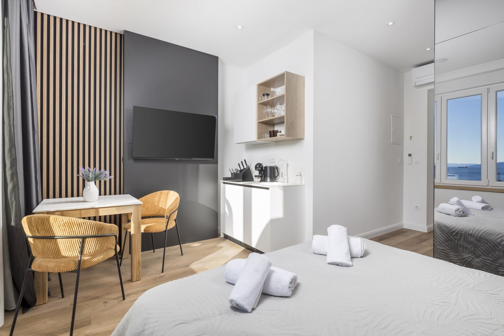 RIJEKA, ZENTRUM – Exklusiv möbliertes Anwesen mit drei separaten Wohneinheiten und Panoramablick über die gesamte Kvarner-Bucht Im Herzen von Rijeka erwartet Sie eine außergewöhnliche Immobilie, die alle Maßstäbe urbanen Luxus übertrifft. Der Panoramablick, der sich von der Krk-Brücke bis nach Opatija erstreckt, vermittelt Ihnen täglich das Gefühl, über der Stadt zu leben – Meer, Lichter und Architektur verschmelzen zu einem atemberaubenden Panorama. Das Interieur besticht durch ein raffiniertes Ambiente mit hochwertigen Materialien, modernster Technik, hoher Funktionalität und einer Reihe von Details, die diese Adresse einzigartig auf dem Markt machen. Das elegante Ensemble besteht aus drei separaten Wohneinheiten: einem luxuriösen Zwei-Zimmer-Apartment mit Wohnzimmer, einem stilvollen Ein-Zimmer-Apartment und einem gemütlichen Studio-Apartment. Dank des modularen Designs ist die Nutzung flexibel: Durch das Öffnen diskreter Schiebepaneele verwandeln sich das Zwei-Zimmer-Apartment und das Studio-Apartment im Handumdrehen in ein großzügiges Drei-Zimmer-Apartment, während das Ein-Zimmer-Apartment komplett separat oder integriert genutzt werden kann. Diese Architektur bietet die Möglichkeit, eine Einheit selbst zu bewohnen und die übrigen zu vermieten, sie zu zwei größeren Wohnungen zusammenzulegen oder einen einzigen, imposanten Luxusraum zu schaffen. Der nach Süden ausgerichtete Teil besticht durch Licht, Eleganz und einen Ausblick, der vom ersten Moment an fasziniert. Das großzügige, offene Wohnzimmer vereint Design und Komfort auf perfekte Weise und bietet eine Whirlpool-Badewanne, begehbare Duschen, hochwertige Ausstattung und makellose Verarbeitung. Die Schlafzimmer verfügen über eigene Badezimmer, während das Studio-Apartment Privatsphäre, Intimität und einen inspirierenden Ausblick bietet. Auf der Nordseite befindet sich ein ebenso attraktiver Bereich mit privatem Balkon – ideal für die Sommermonate, gesellige Treffen, Grillabende oder ruhige Morgenstunden mit Blick auf Susak, den Boulevard und die beeindruckenden alten Gebäude. Hohe Decken und große Fenster schaffen eine elegante Atmosphäre, und die hochwertige Verarbeitung zeigt sich in jedem Detail: moderne Klimaanlage in allen Räumen, erstklassige Haushaltsgeräte, maßgefertigte Möbel, per Bluetooth verbundene Deckenlautsprecher, separate Zähler, elektronische Türschlösser mit Self-Check-in-Funktion, erstklassige Isolierung und ein neu gebauter Aufzug für bequemen und stilvollen Zugang. Die Renovierung wurde – von den Installationen bis zu den Oberflächenmaterialien – mit außergewöhnlicher Sorgfalt durchgeführt, und die Dokumentation kann eingesehen werden. Das Gebäude verfügt über eine Gemeinschaftsterrasse im Stockwerk über der Wohnung, die kaum genutzt wird, und einen Abstellraum auf derselben Etage für zusätzlichen Komfort. Dank der Lage der Kreuzung vor dem Gebäude ist der Panoramablick dauerhaft gewährleistet, was diese Immobilie zu einer wertsteigernden Investition macht. Die Kategorisierung als Ferienimmobilie steigert das Potenzial zusätzlich – ideal für langfristige Mieteinnahmen, ein hochwertiges Kurzzeitvermietungsangebot oder die Kombination von Privatleben und Geschäftsmöglichkeiten unter einem Dach. Diese exklusive, stilvoll eingerichtete Wohnung bietet einen luxuriösen Lebensstil im Herzen von Rijeka. Strände, Restaurants, kulturelle Attraktionen und Promenaden sind nur wenige Gehminuten entfernt. Die Immobilie stellt eine seltene Gelegenheit für Käufer dar, die etwas Besonderes suchen, insbesondere mit viel Entwicklungspotenzial. Für weitere Informationen oder zur Vereinbarung eines Besichtigungstermins kontaktieren Sie mich bitte vertrauensvoll. Ich freue mich darauf, Ihnen bei der Verwirklichung Ihrer Wohnträume behilflich zu sein! *** !