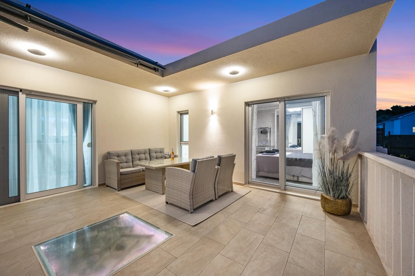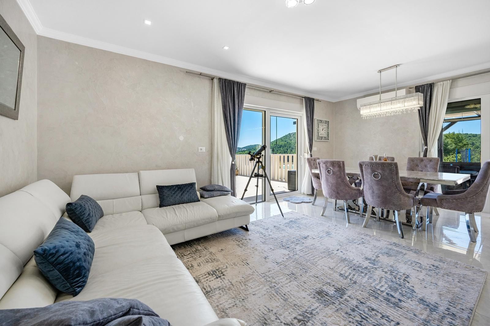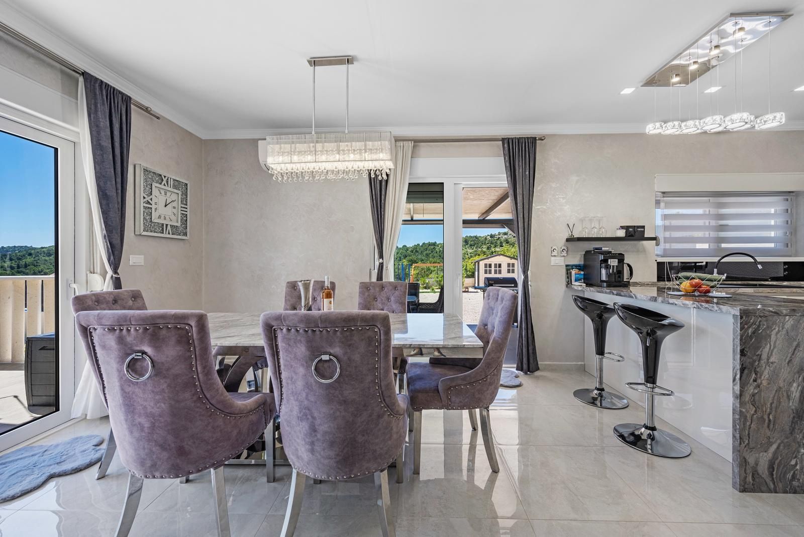ŠIBENIK, BILICE – Modernes Haus mit 2 Terrassen und einem schön angelegten Garten Dieses Haus ist nicht für diejenigen geeignet, die ein dicht bebautes Gebiet und eine enge Nachbarschaft suchen. Es richtet sich an Käufer, die einen Neubau, Ruhe und viel Platz wünschen und dennoch nur wenige Minuten von der Stadt entfernt wohnen möchten. Das möblierte Haus (Baujahr 2025) mit einer Wohnfläche von 142 m² liegt auf einem sanft abfallenden Grundstück, abseits der Straße und in sonniger Lage in einer neuen, naturnahen Siedlung. Die Lage zeichnet sich durch ein offenes, privates und lichtdurchflutetes Ambiente aus, ohne den Eindruck von Überbauung – eine immer seltener werdende Kombination in Stadtnähe. Šibenik ist in nur ca. 5 Autominuten erreichbar, das Meer und der Prokljansko-See sind weniger als 3 km Luftlinie entfernt. Die Autobahnausfahrt A1 ist ca. 10 Minuten entfernt, und auch der Nationalpark Krka befindet sich in unmittelbarer Nähe. Die Flughäfen Zadar und Split sind ca. 72 km bzw. 55 km entfernt, was für sehr gute Verkehrsanbindungen sorgt. Šibenik ist bekannt für seinen authentischen Steinkern, die UNESCO-geschützte Kathedrale des Heiligen Jakobus und eine einzigartige Mischung aus mediterranem Lebensstil und reichem kulturellem Erbe. Nationalparks und Inseln sind in unmittelbarer Nähe. AUFTEILUNG UND AUSRICHTUNG Das Haus ist nach Süden ausgerichtet und erhält den ganzen Tag über viel Tageslicht. Es besteht aus: • drei Schlafzimmer • Badezimmer • separatem WC mit Waschküche • offenem Wohn-, Küchen- und Essbereich Das Wohnzimmer öffnet sich zu einer großzügigen Terrasse von ca. 32 m² mit Blick auf die Natur und die Umgebung. Neben der Hauptterrasse verfügt das Haus über eine weitere Terrasse, die zusätzlichen Raum zum Entspannen und Genießen im Freien in ruhiger Umgebung bietet. AUSSTATTUNG UND QUALITÄT Das Haus ist komfortabel und energieeffizient ausgestattet: • Fußbodenheizung in zwei Schlafzimmern, Küche, Wohnzimmer, Esszimmer und Badezimmer • Klimaanlage in allen Schlafzimmern und im Wohnbereich • Solarkollektoren für Warmwasser • Hochwertige PVC-Fenster und -Türen • Abgehängte Decken und durchdachte Beleuchtung • Vorbereitung für Videoüberwachung • Hochwertige Wandverkleidungen und luxuriös gestaltete Innenräume GARTEN UND AUSSENBEREICH Der Garten ist mit dalmatinischen Pflanzen, Sträuchern und Bäumen angelegt und bepflanzt, die das Gefühl von Privatsphäre und die Einbindung in die Natur unterstreichen. Der Grünstreifen entlang der Mauer zur Straße hin reduziert Sicht- und Lärmbelästigung und trägt so zur Ruhe des Ortes bei. Es stehen Parkplätze für mehrere Fahrzeuge zur Verfügung, und vor dem Haus befindet sich ein Carport für zwei Autos. Wenn Sie ein neues Gebäude suchen, das Privatsphäre, eine sonnige Lage und eine gute Anbindung an die Stadt vereint, ist dieses Haus eine ideale Wahl für den Alltag oder als ganzjähriger Wohnsitz. Das Haus eignet sich hervorragend für verschiedene Zwecke – sowohl für ein ruhiges Familienleben das ganze Jahr über als auch als Investition in die touristische Vermietung. Die Immobilie wurde bereits als Ferienhaus genutzt und generiert nachweisliche Mieteinnahmen, sodass der zukünftige Eigentümer die touristische Nutzung ohne zusätzliche Vermarktungsphase fortführen kann. Käufern, die zusätzliche finanzielle Unterstützung benötigen, bieten wir eine kostenlose Kreditberatung an. Für weitere Informationen und zur Vereinbarung eines Besichtigungstermins stehen wir Ihnen gerne zur Verfügung.