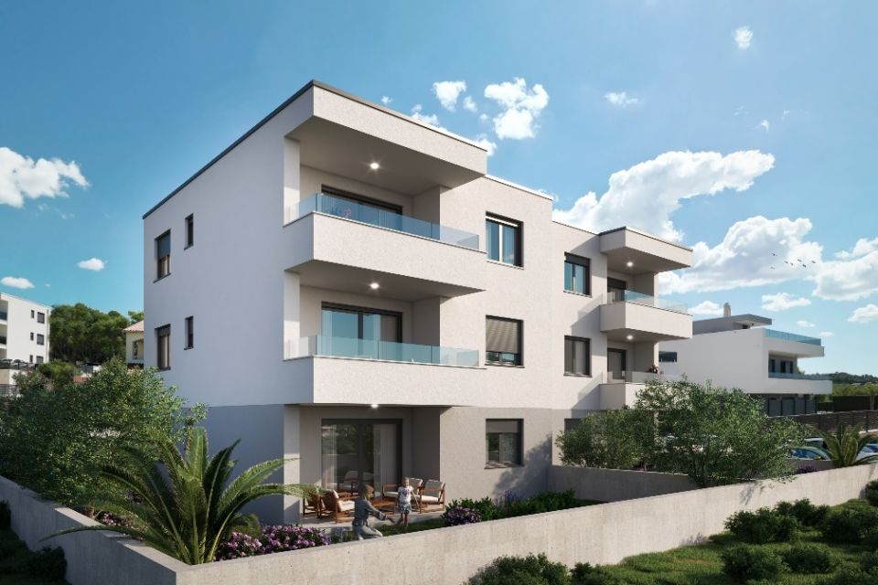 ŠIBENIK, BRODARICA – Neubau, 2 Schlafzimmer + Wohnzimmer, 2 Parkplätze, Garten, Terrasse In Brodarica bei Šibenik steht eine 2-Zimmer-Wohnung (A2) mit einer Wohnfläche von 78,31 m² zum Verkauf. Sie befindet sich in einem kleineren Wohngebäude mit insgesamt 6 Wohneinheiten (Erdgeschoss, 1. und 2. Obergeschoss – jeweils zwei Wohnungen). Die Wohnung liegt im Erdgeschoss und verfügt neben dem Wohnbereich über einen ca. 70 m² großen Garten, wodurch sie sich besonders für Familien eignet. Ausstattung: • 2-Zimmer-Wohnung • Wohnfläche: 78,31 m² • 2 private Parkplätze • überdachte Terrasse • privater Garten (ca. 70 m²) 70 m² AUFTEILUNG Die Wohnung besteht aus: • zwei Schlafzimmern • Badezimmer • offenem Wohn-, Ess- und Küchenbereich • überdachter Terrasse AUSSTATTUNG • Keramikfliesen in den Wohnbereichen • Laminat in den Schlafzimmern • Fußbodenheizung (Wohnzimmer und Badezimmer) • Klimaanlage in Wohnzimmer und Schlafzimmern • PVC-Fenster und -Türen mit elektrischen Rollläden und Insektenschutzgittern • 10 cm Wärmedämmung • TV-/SAT-Anschluss • Anschluss an die öffentliche Kanalisation LAGE • Grundschule ca. 250 m • Kindergarten ca. 650 m • Strand ca. 550 m Die ruhige Lage und die Nähe zu Schulen und Kindergärten machen diese Immobilie ideal für junge Familien. Für weitere Informationen oder zur Vereinbarung eines Besichtigungstermins kontaktieren Sie uns bitte. Brodarica ist ein ruhiger und angenehmer Ort, nur fünf Kilometer südlich von Šibenik. Die Küste ist mit dem bekannten Ferienort Solaris (Amadria Park) verbunden. Der Ort zeichnet sich durch seine Familienvillen und Privathäuser aus und ist daher ideal für einen Urlaub, aber auch zum ganzjährigen Wohnen. Entlang der Küste erstrecken sich malerische Sand- und Felsstrände, darunter der modern gestaltete Strand Rezalište. Von fast überall hat man einen Blick auf die bezaubernde Insel Krapanj, die für ihre Geschichte und Tradition bekannt ist. Der Nationalpark Krka ist nur 16 Kilometer entfernt, die Flughäfen Split und Zadar 50 bzw. 85 Kilometer.